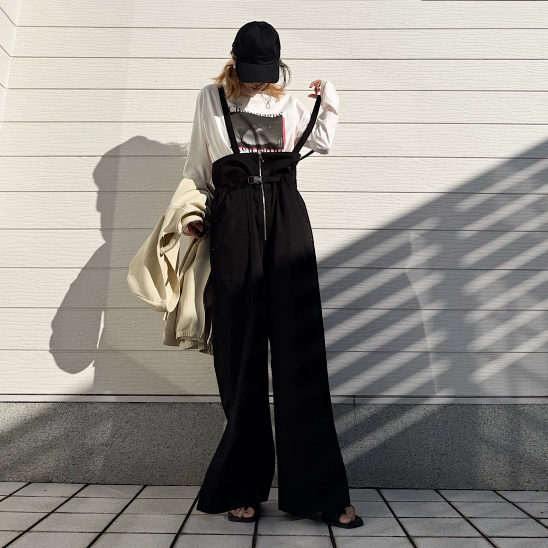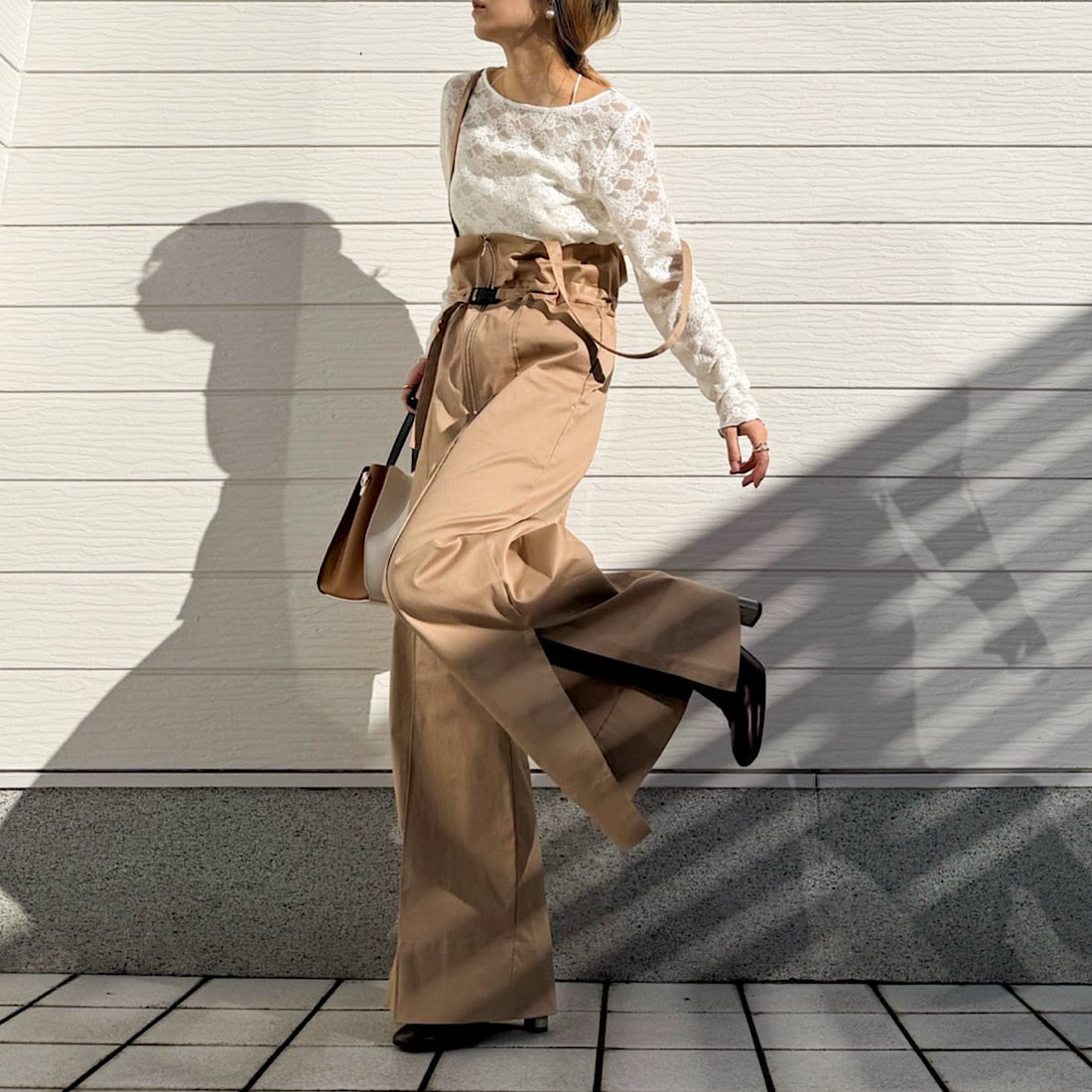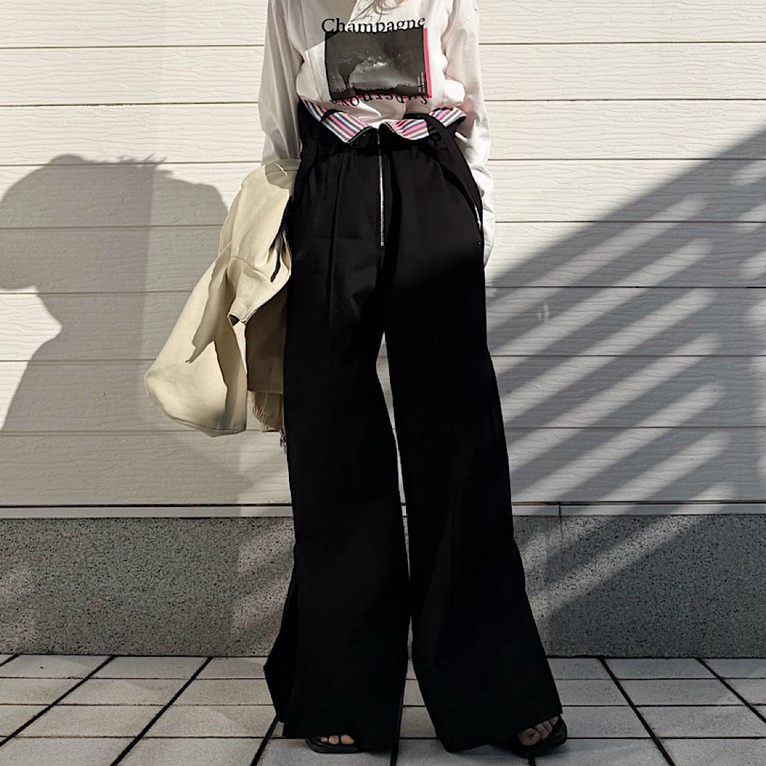程よいワイドシルエットでサイドスリットが歩くたびに軽く揺れるパンツです。