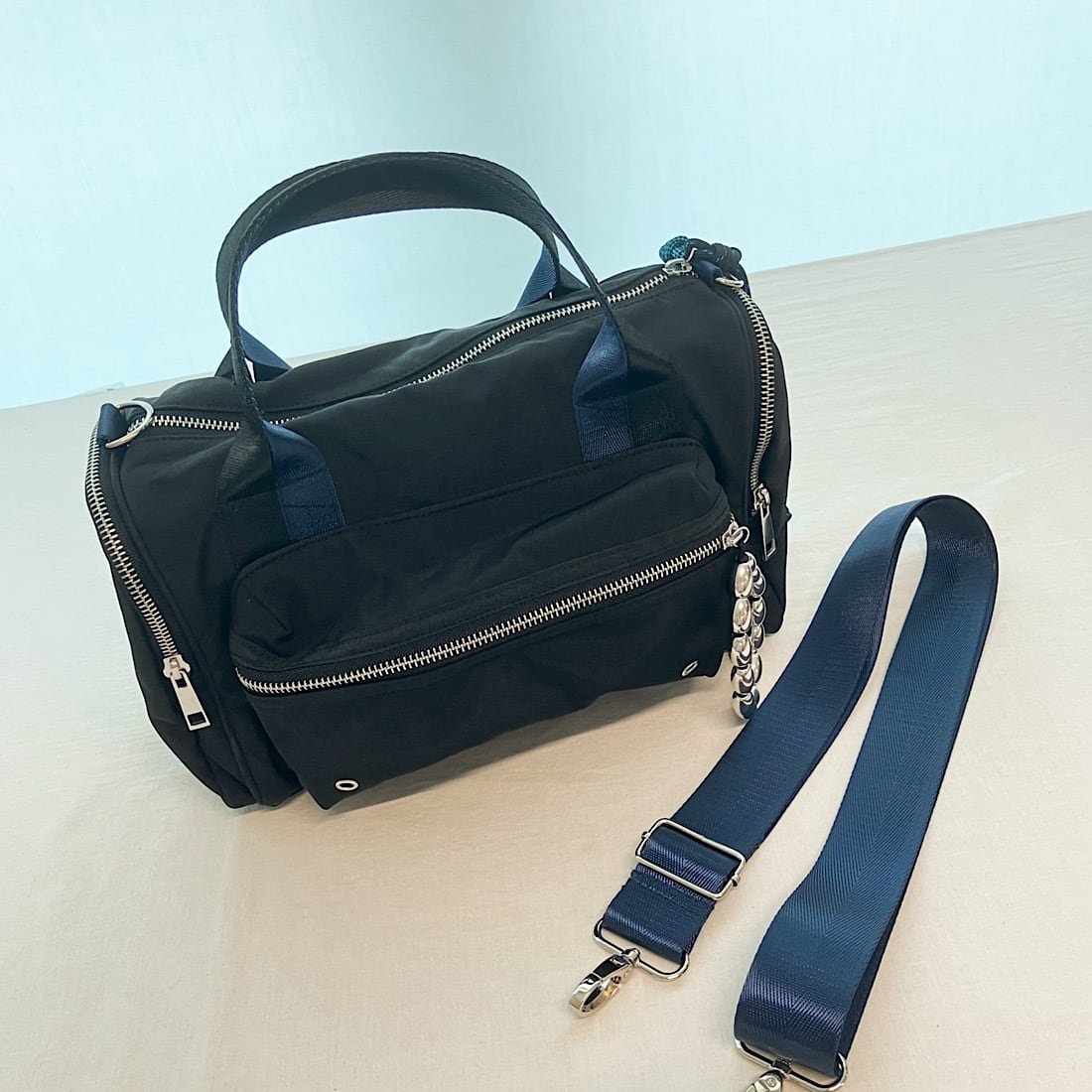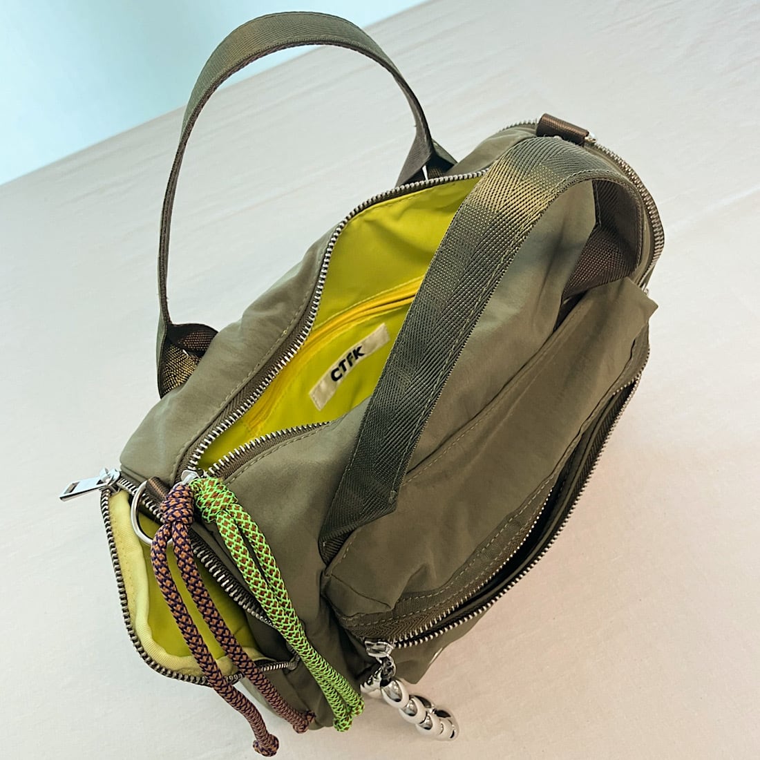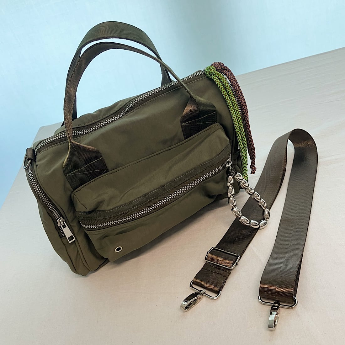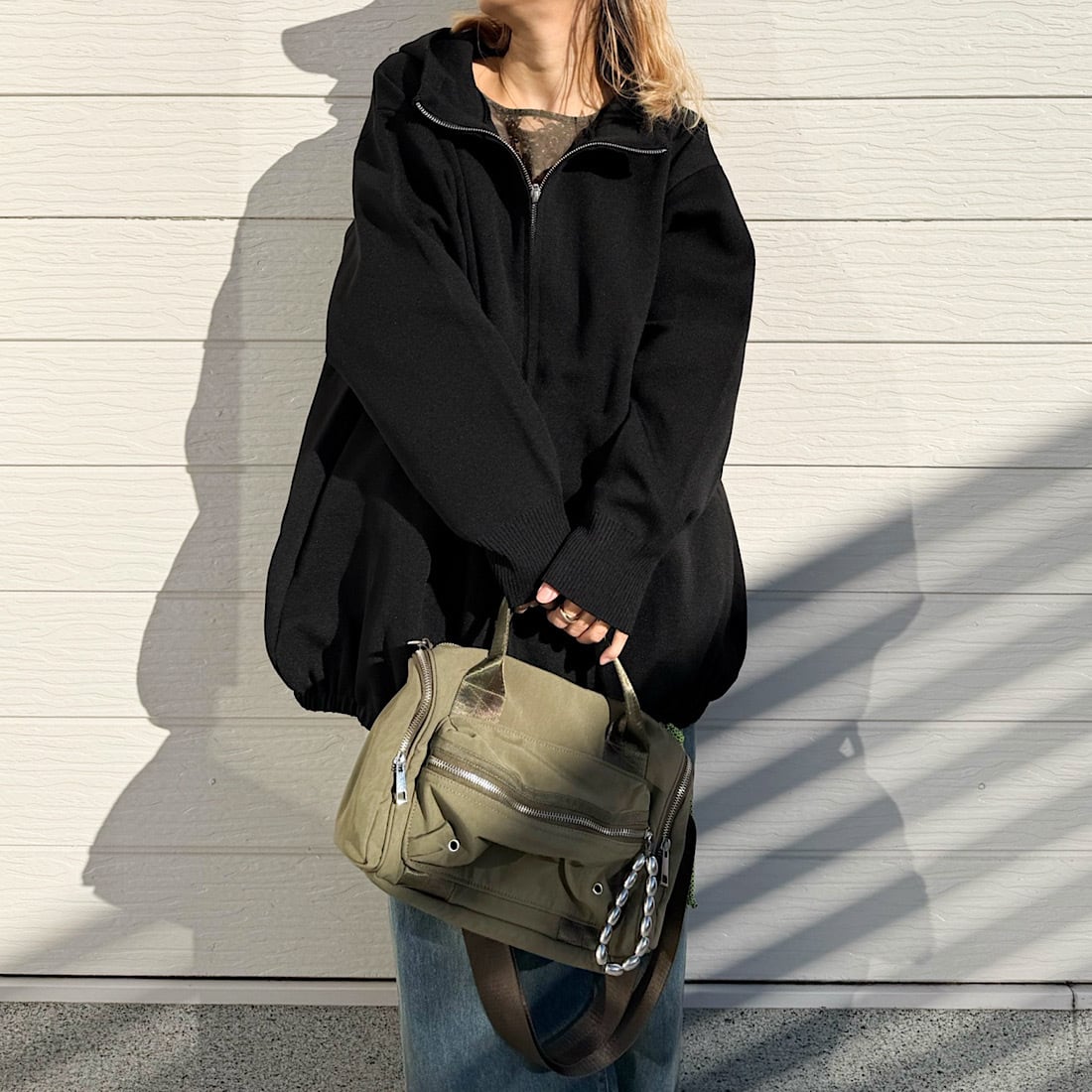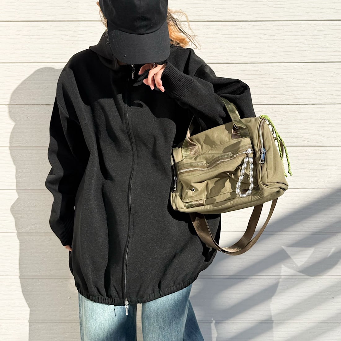 少しワッシャー感のあるナイロン生地を使用し、カジュアルながらも大人な雰囲気に仕上げました。
