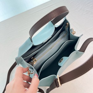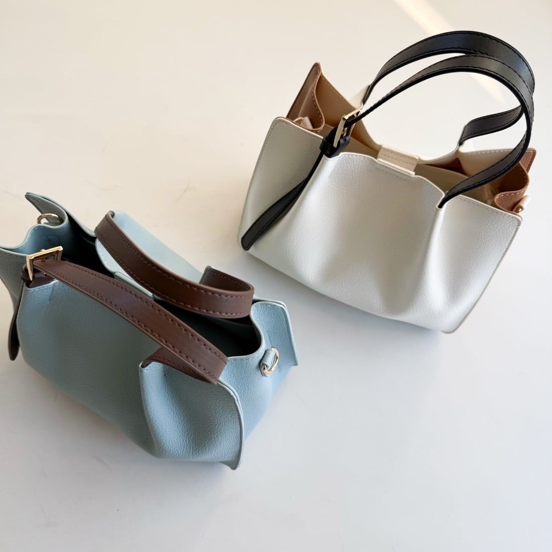 細めのハンドルとバックルがアクセントになったデザインでシンプルながら大人っぽさを演出。