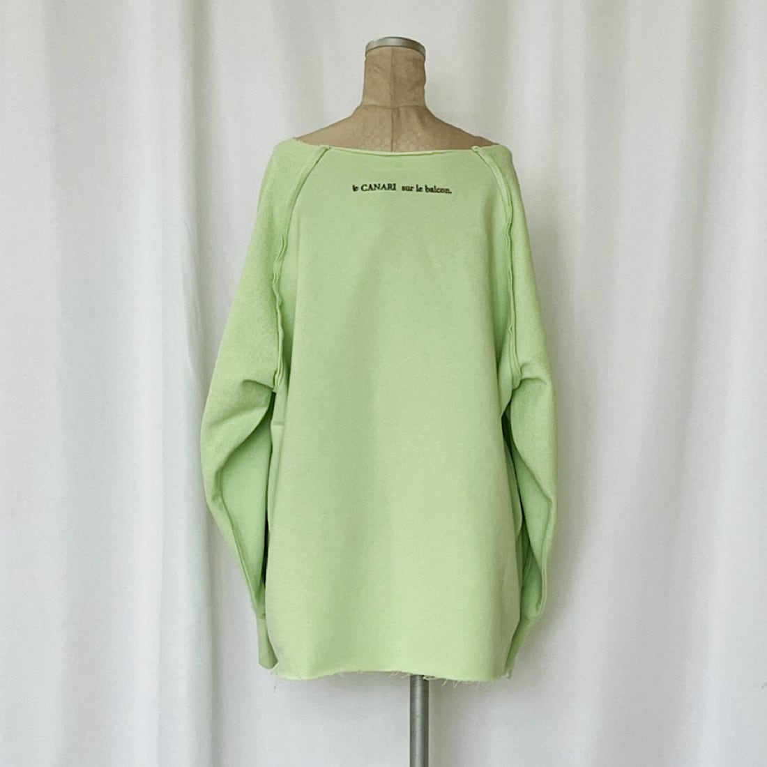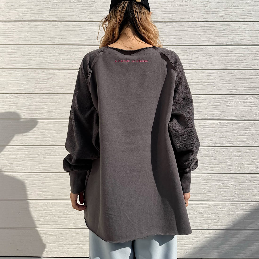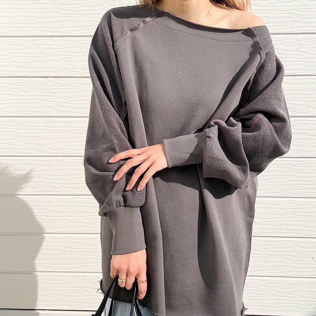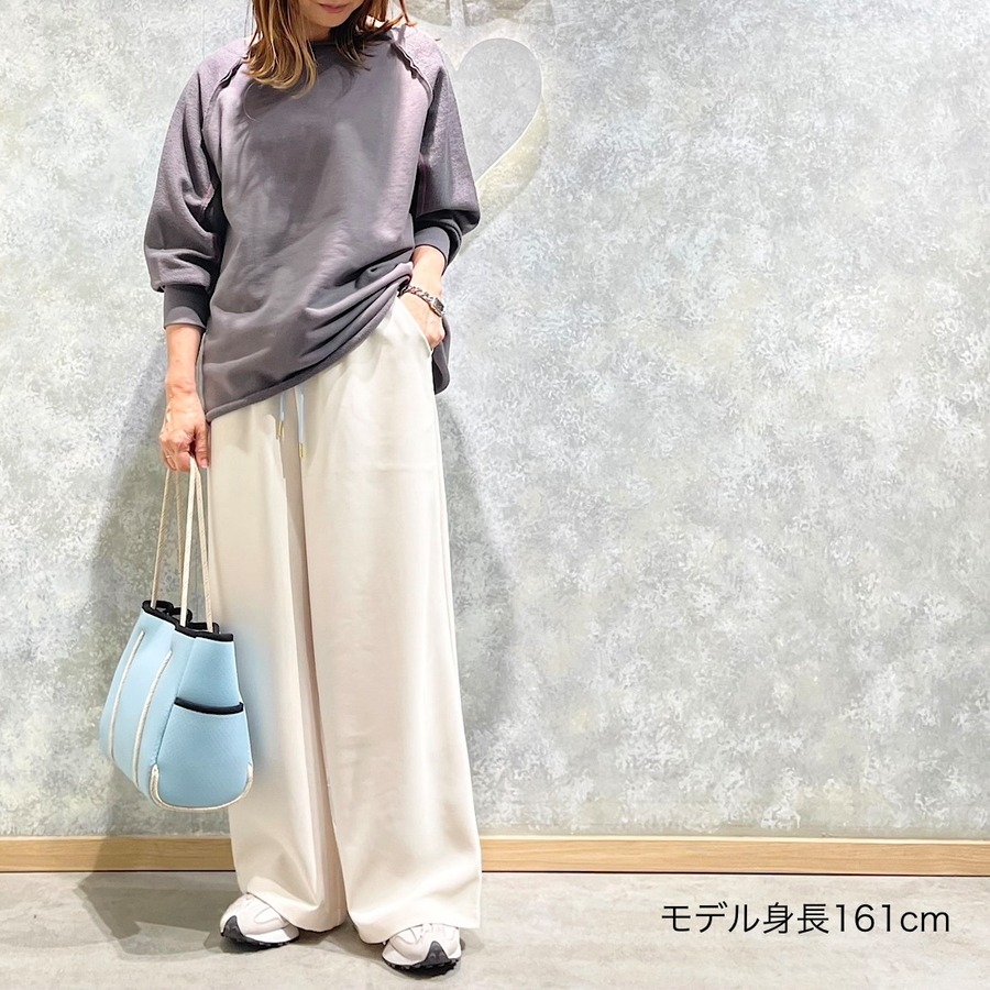ラグラン切り替えでお袖から下は裏の生地をテレコで使用している軽めの裏毛トップスです。