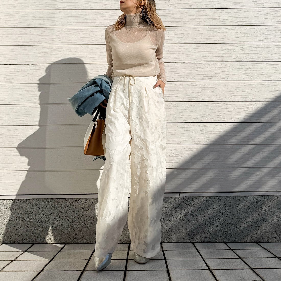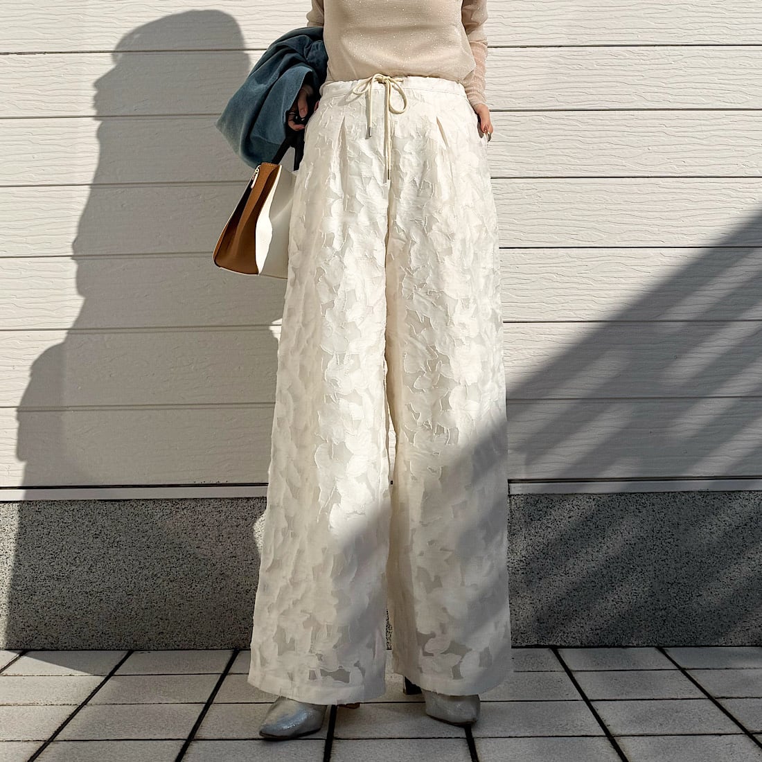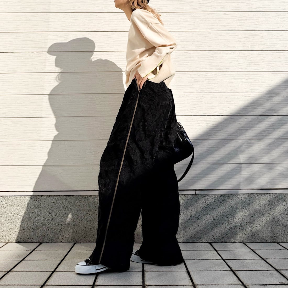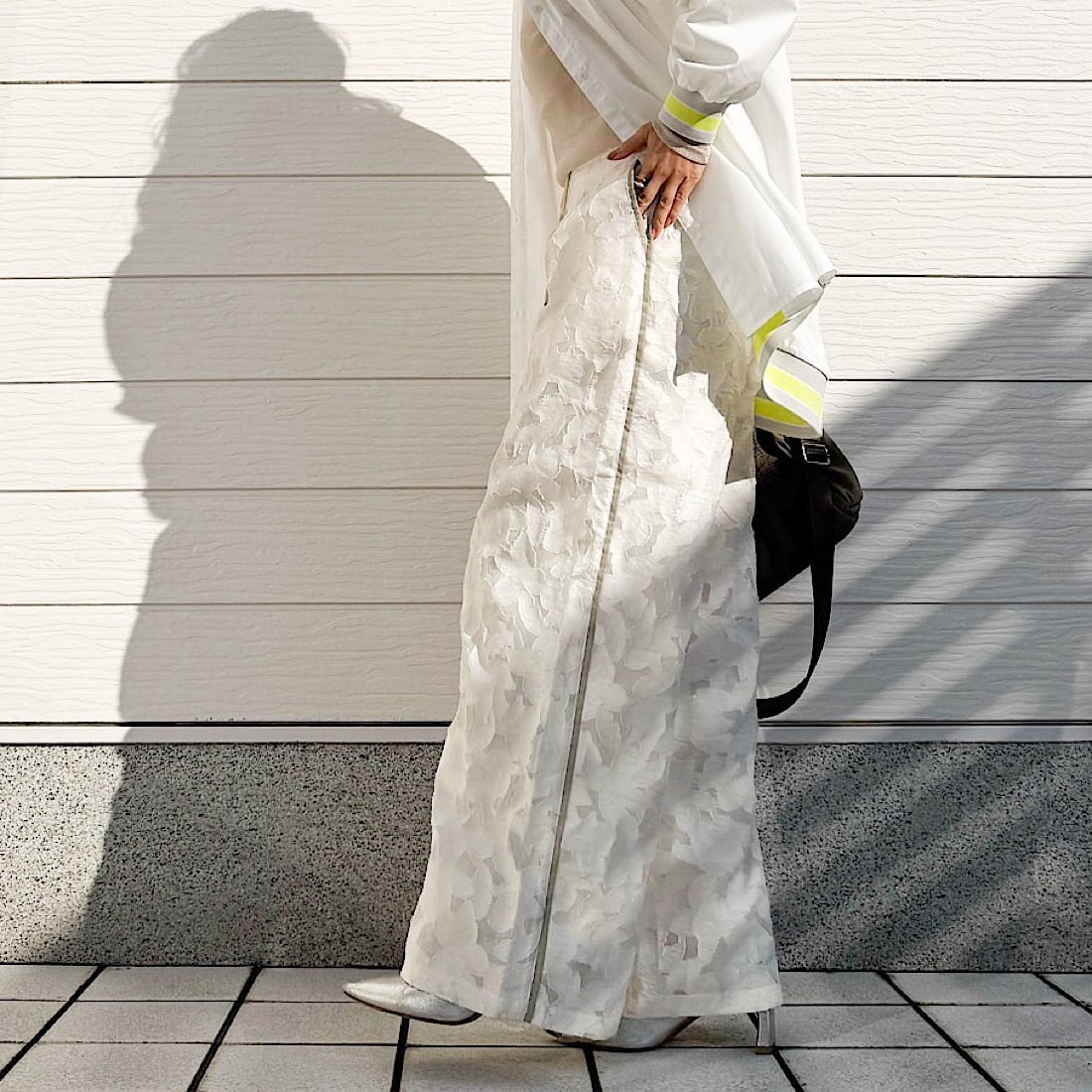 ジャガード地が程よい存在感を出してくれるのでシンプルなトップスと合わせるだけでもコーディネートが華やかに仕上がります。