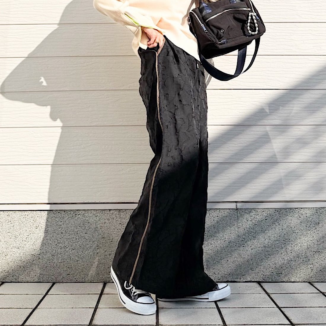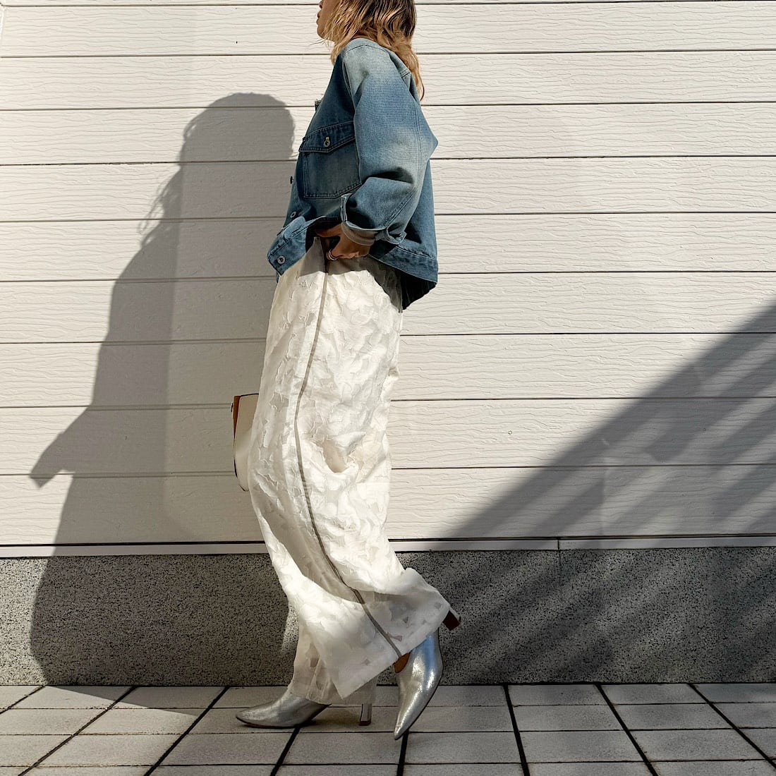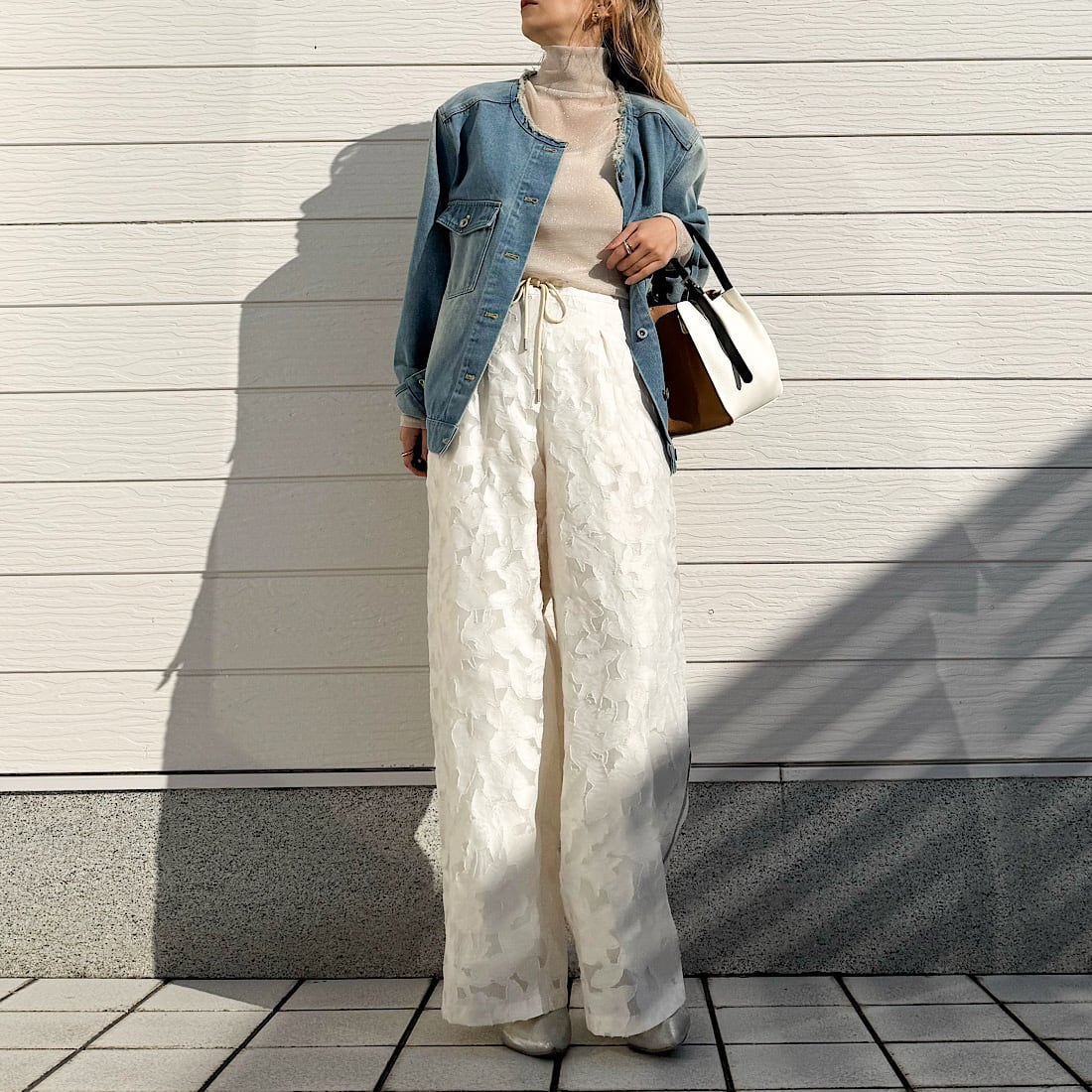 ジャガード地が程よい存在感を出してくれるのでシンプルなトップスと合わせるだけでもコーディネートが華やかに仕上がります。