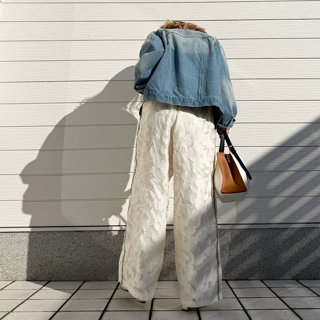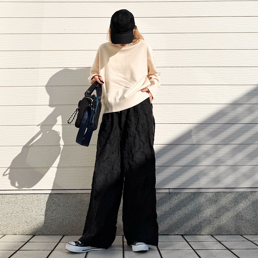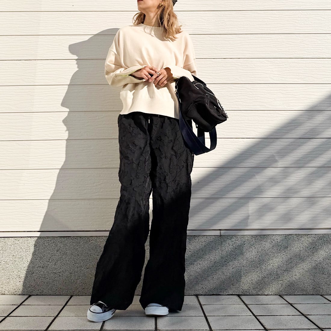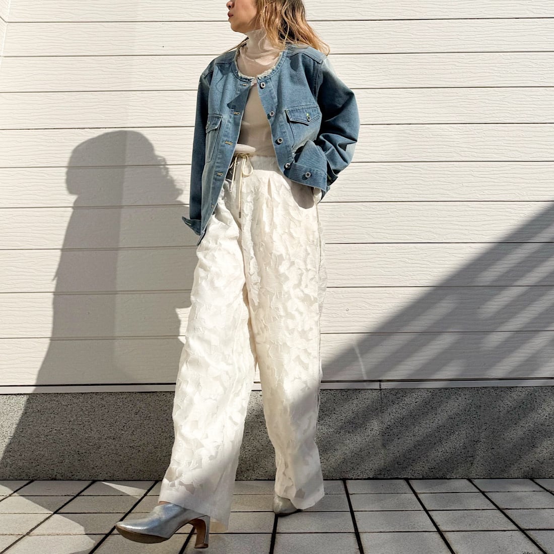 ジャガード地が程よい存在感を出してくれるのでシンプルなトップスと合わせるだけでもコーディネートが華やかに仕上がります。