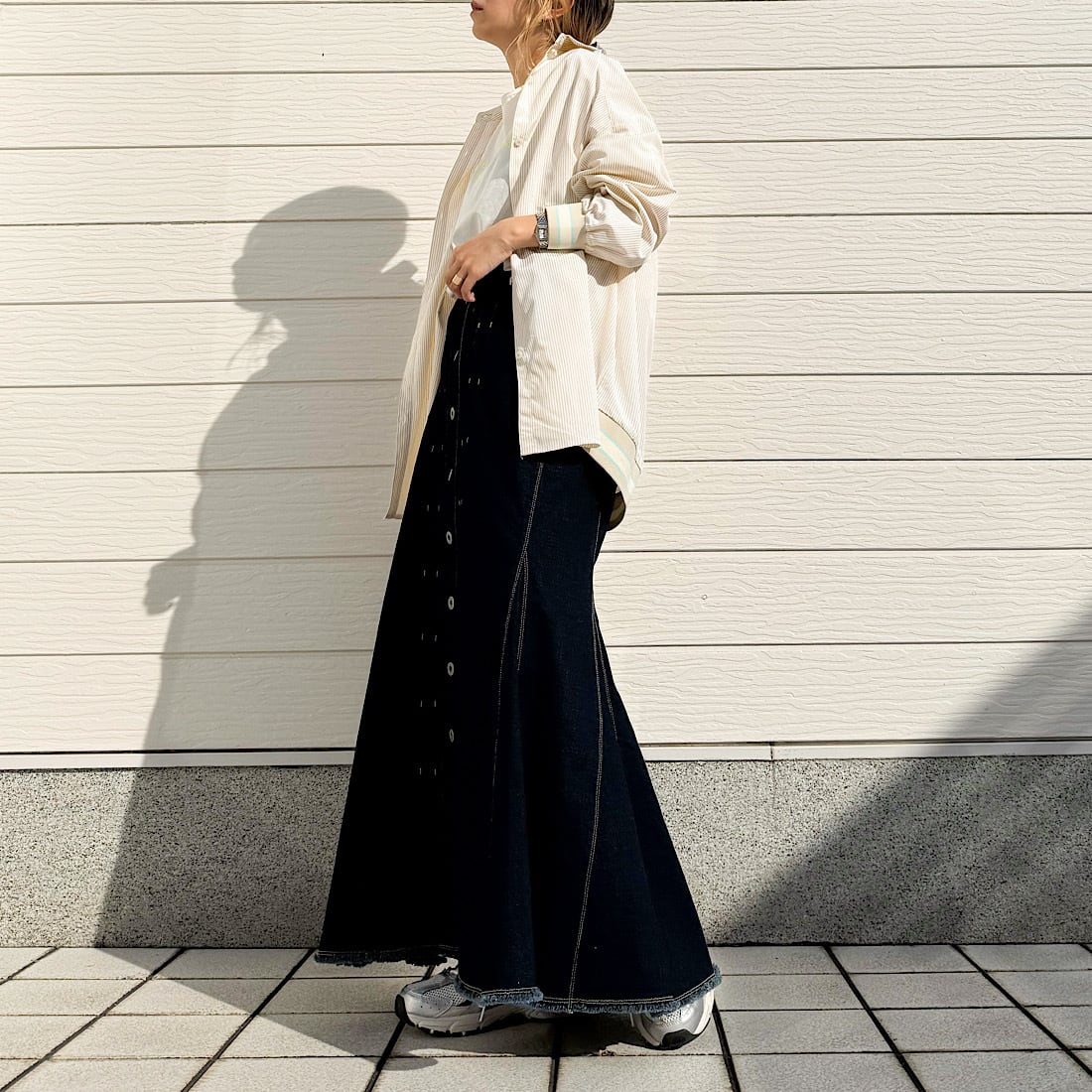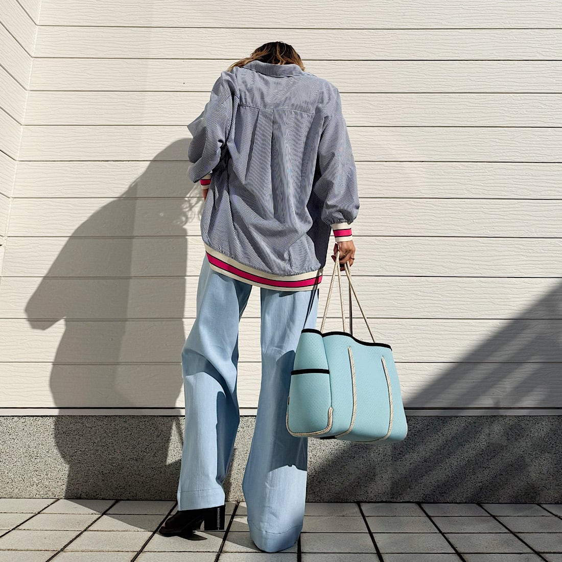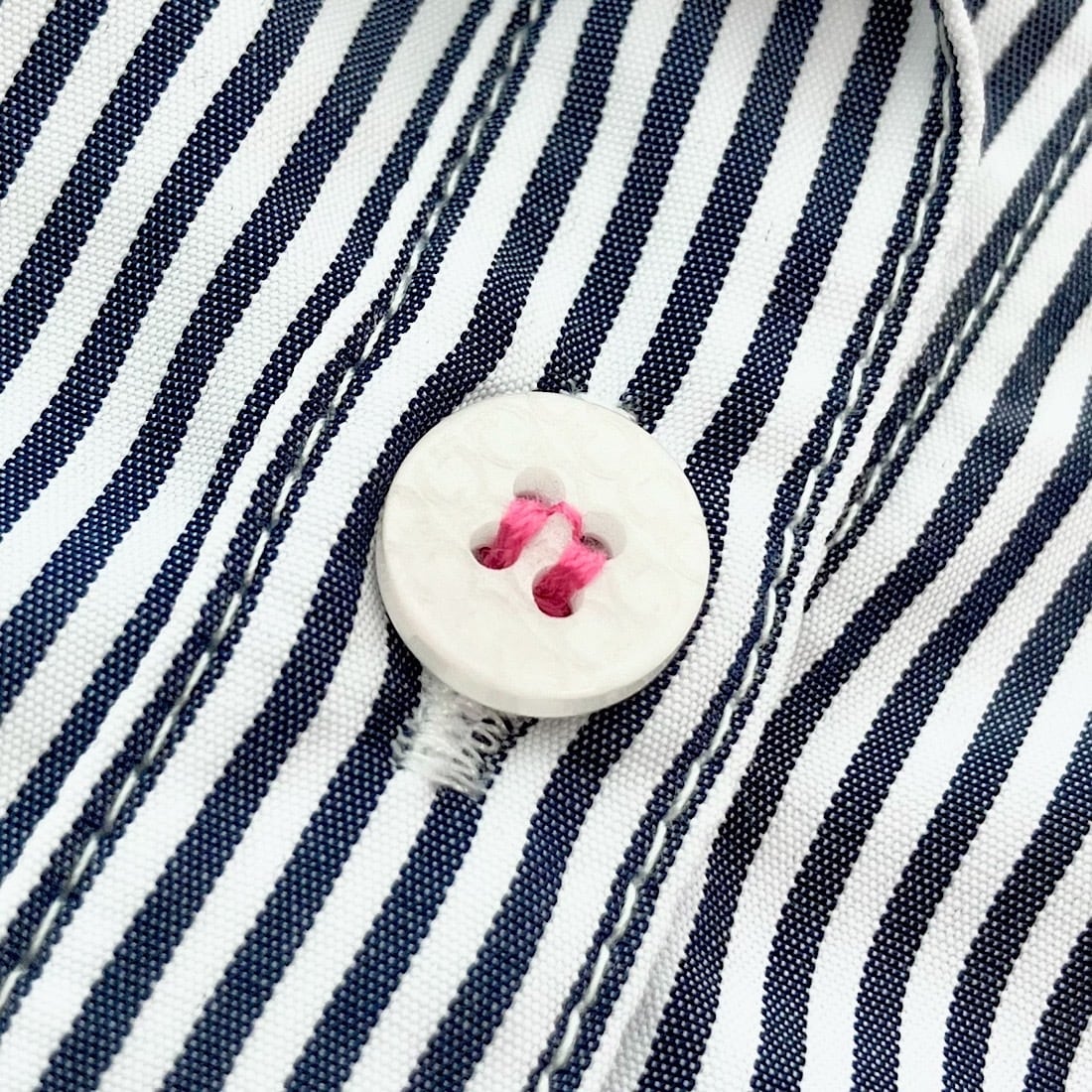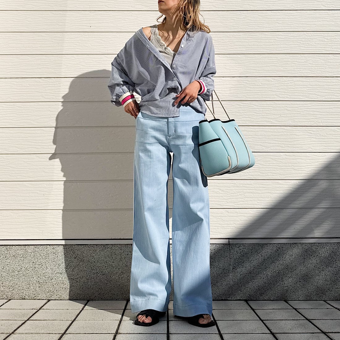 ストライプは細いピッチのものを使用しているので、カジュアルなポイントを入れながらも上品な雰囲気に仕上がっています。