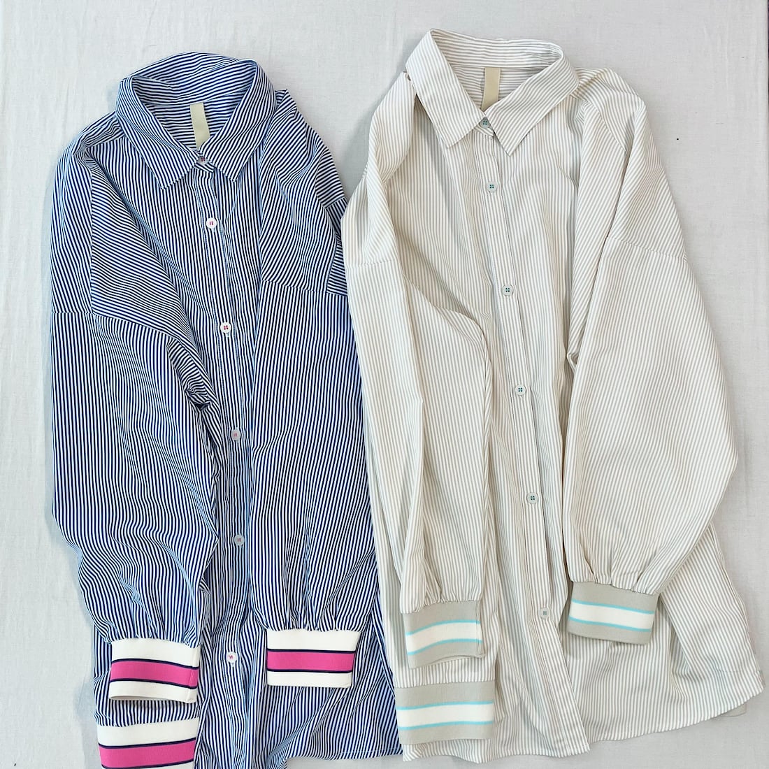 Qで定番大人気の袖と裾にリブがあしらわれている1枚でサマになるシャツが登場です。