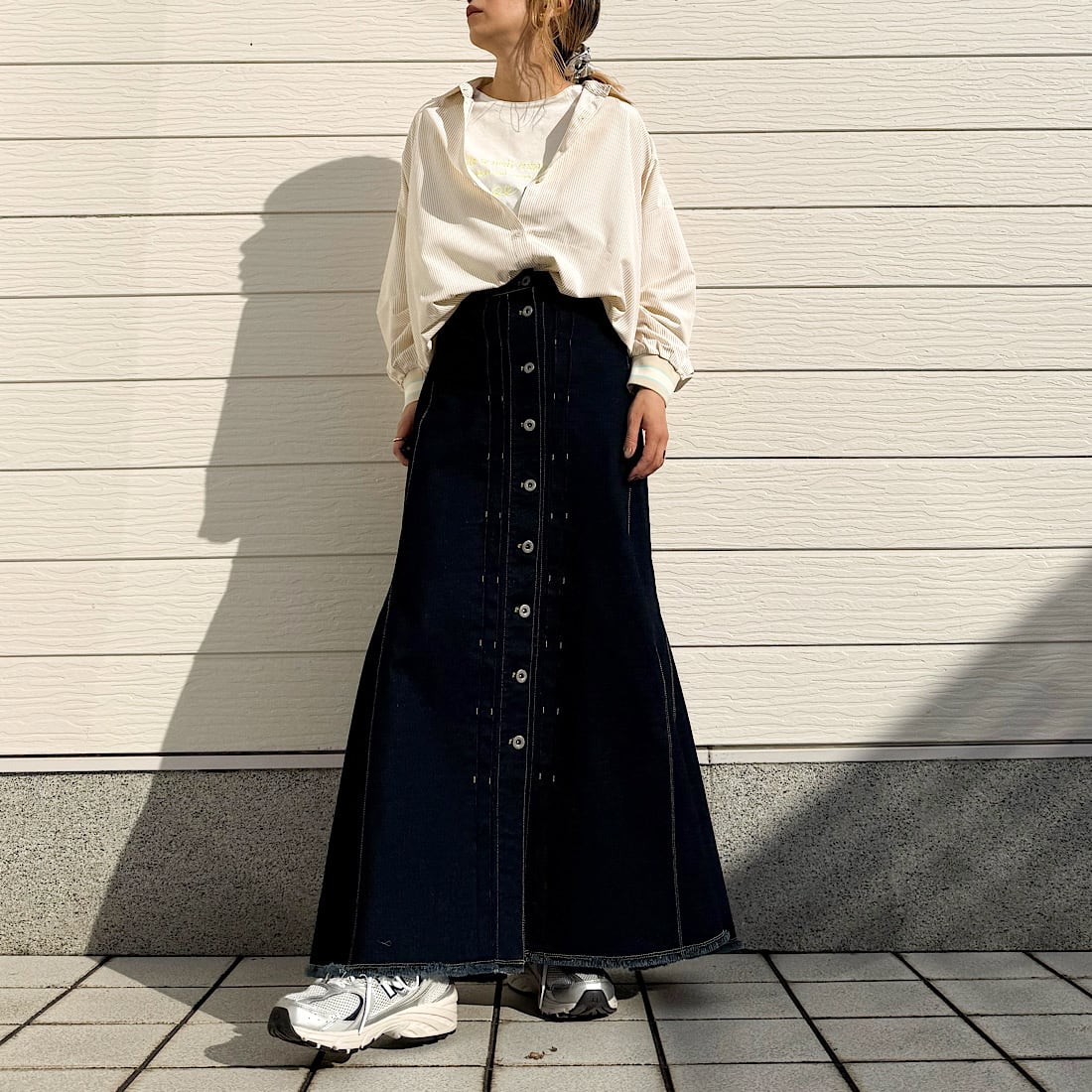 ボタンを止めて着ても、襟抜きでリラックス感を出すのもおすすめ。