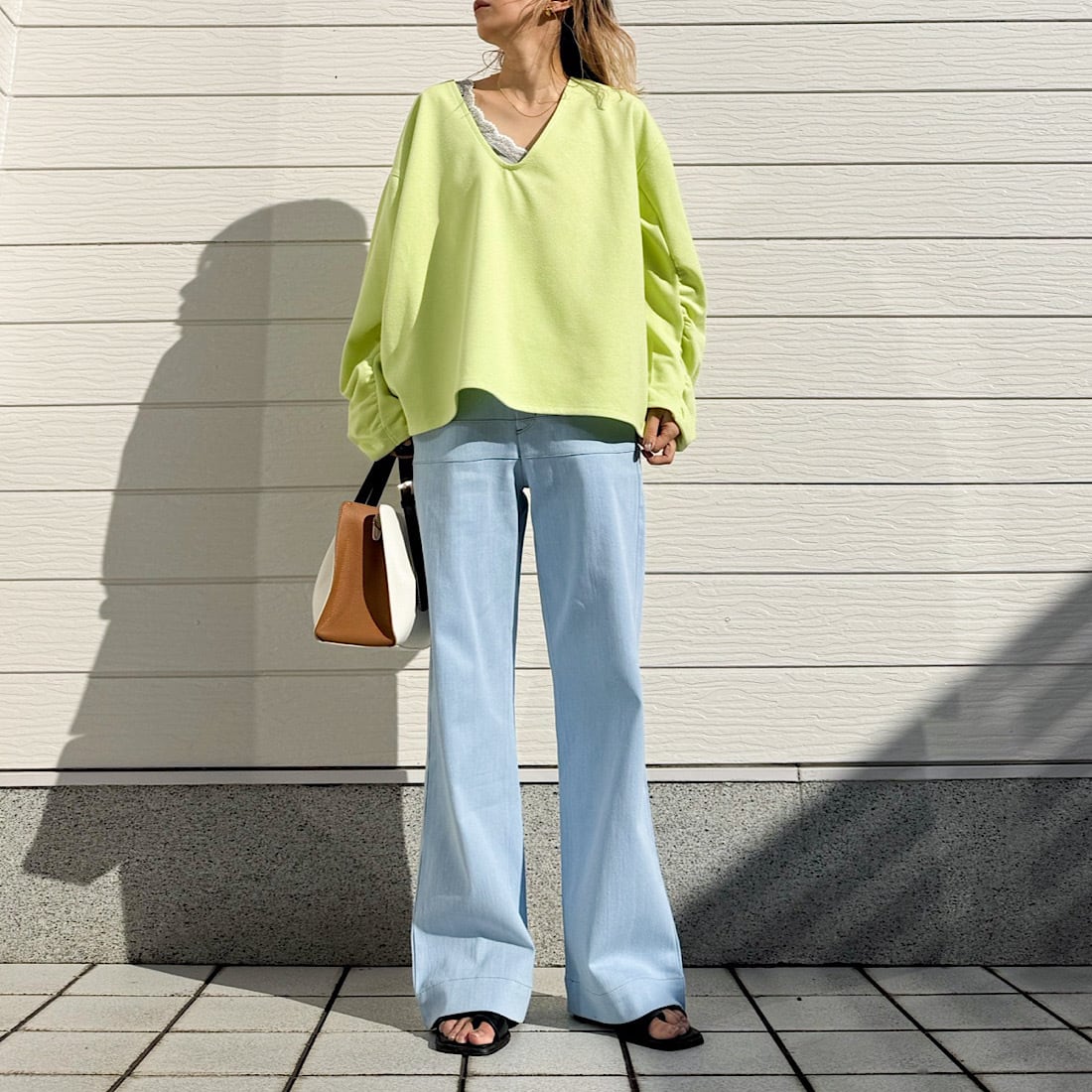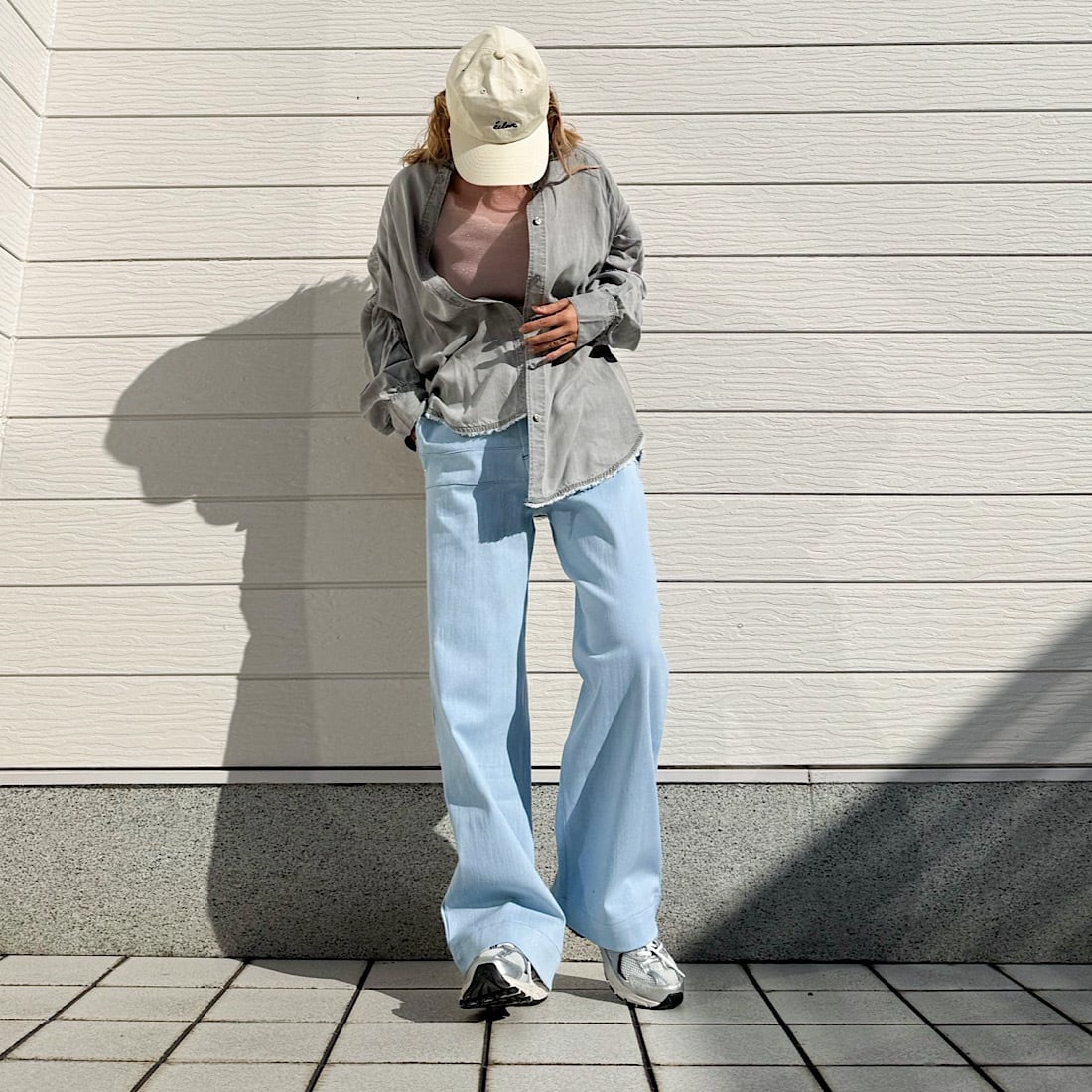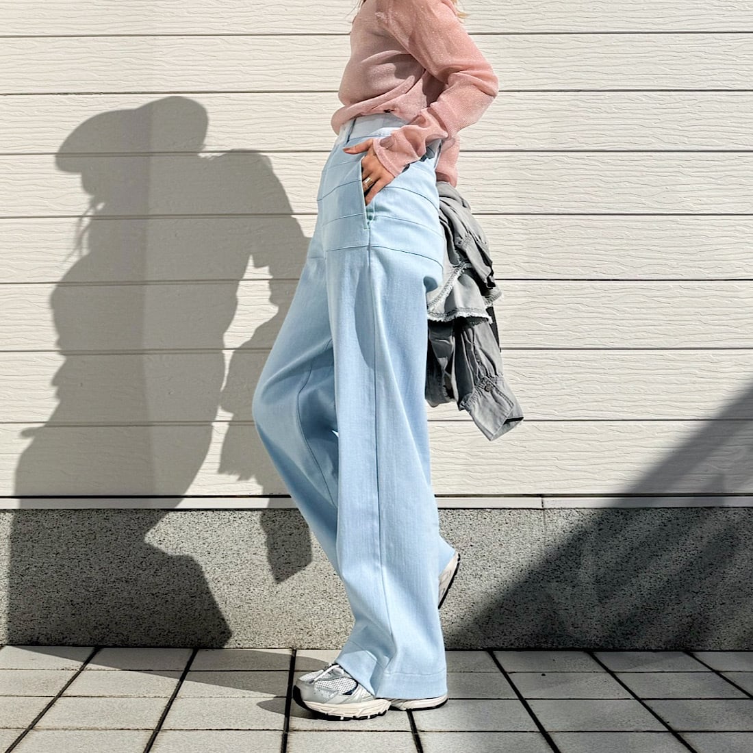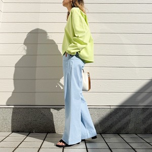 カラーも落ち着いた洗いをかけたライトブルーなので、シャツやブラウス合わせもきれい目でオシャレに着こなせます。