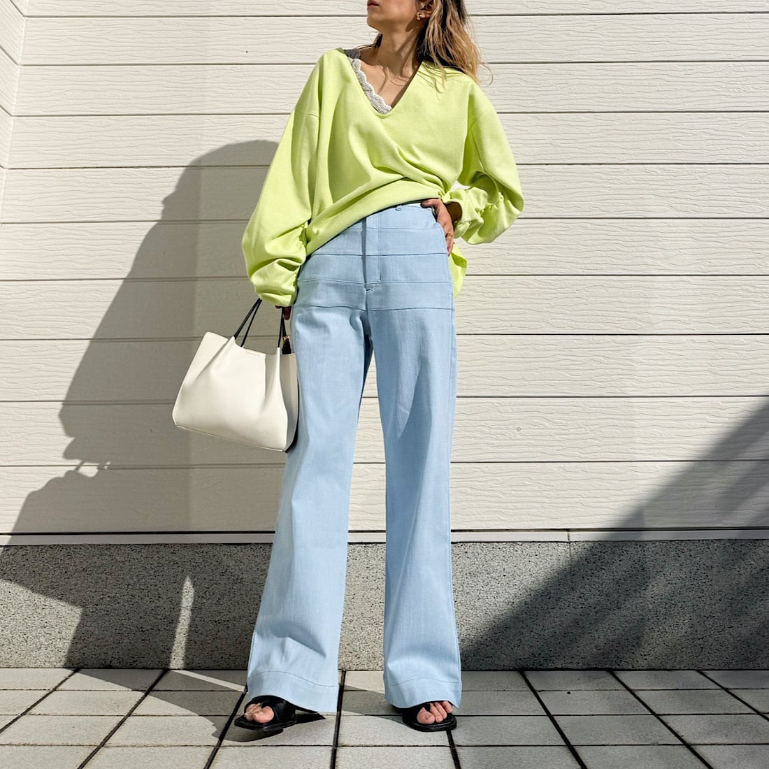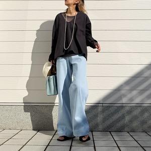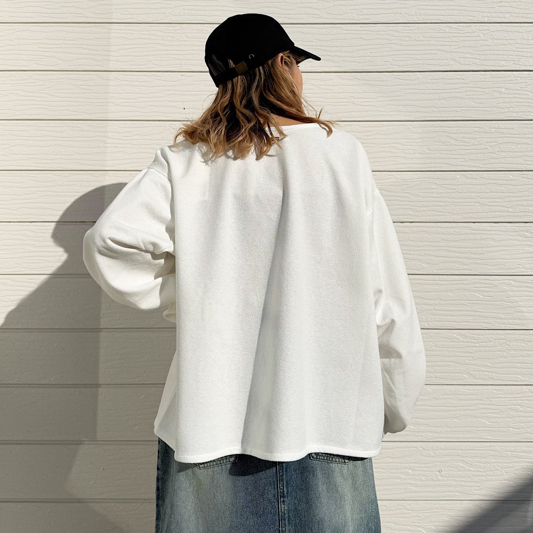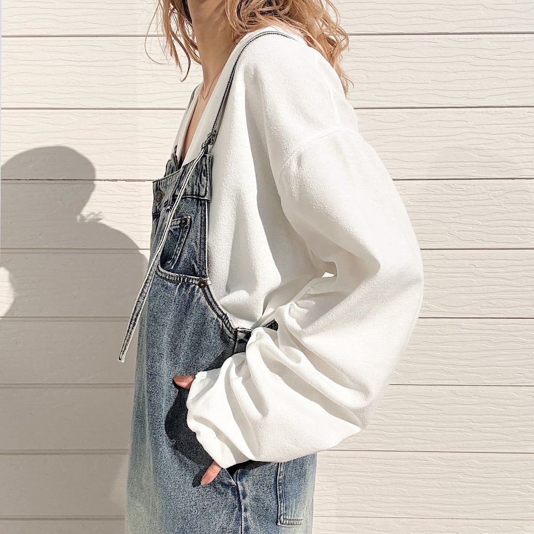 深めのVネックはシャツやインナーなどのレイヤードしていただいたりと様々な合わせをお楽しみください。