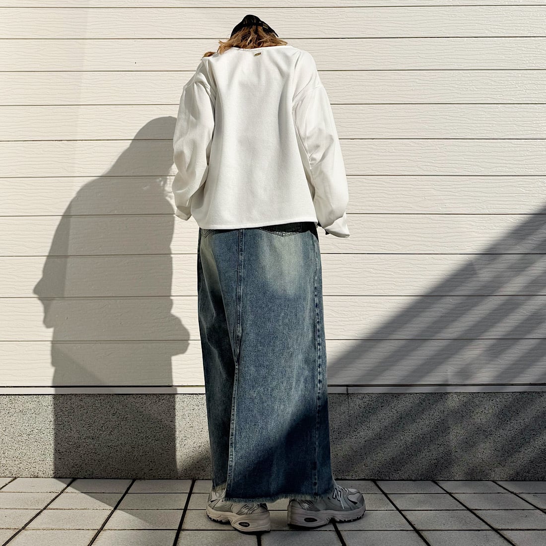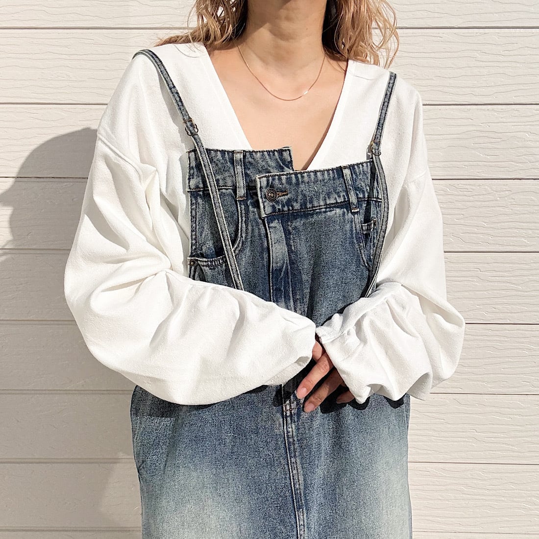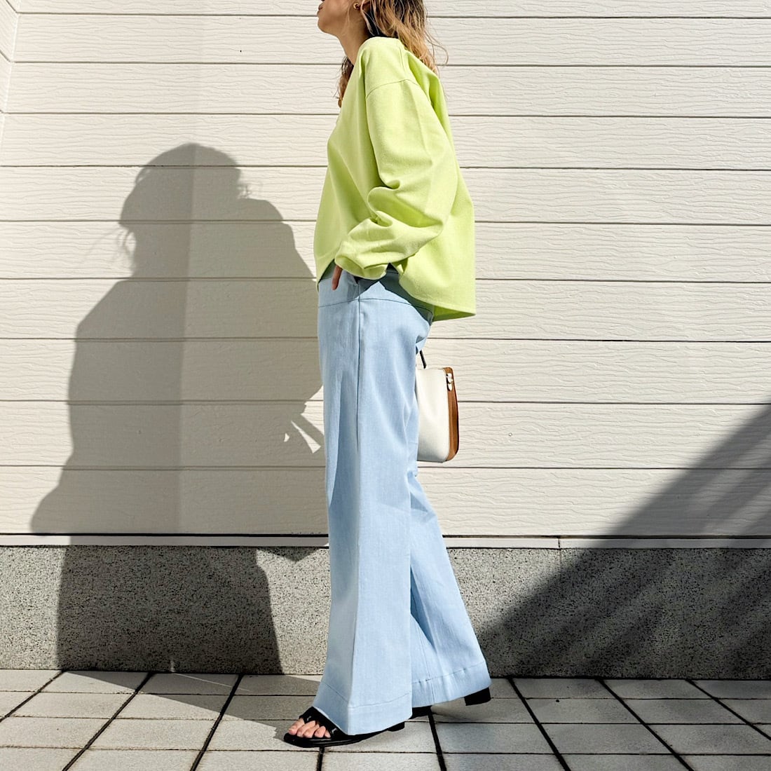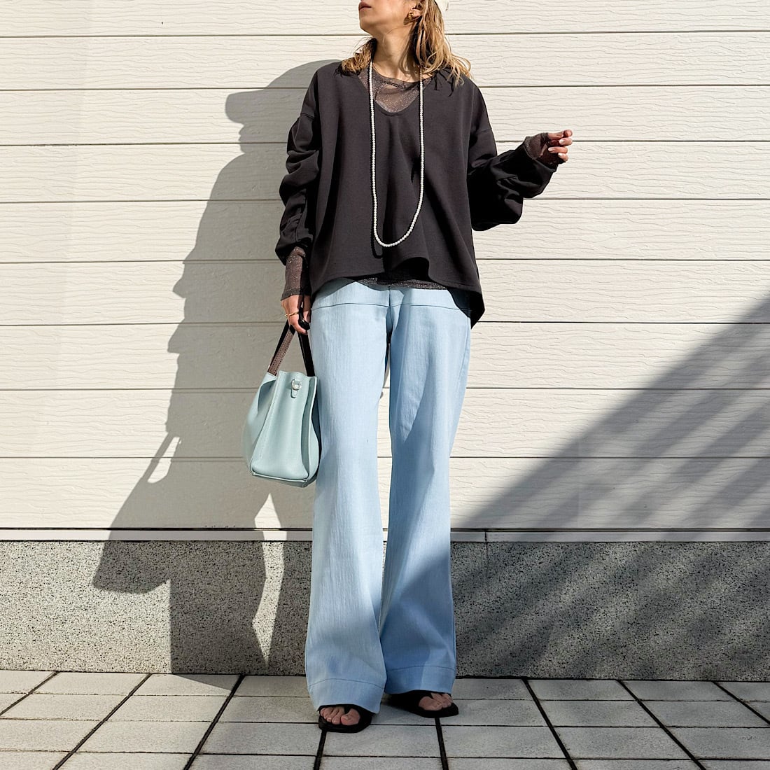 深めのVネックはシャツやインナーなどのレイヤードしていただいたりと様々な合わせをお楽しみください。