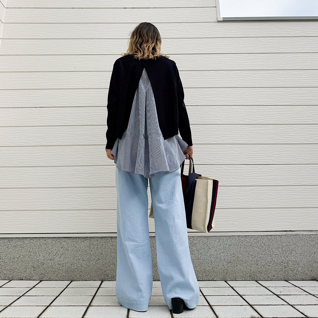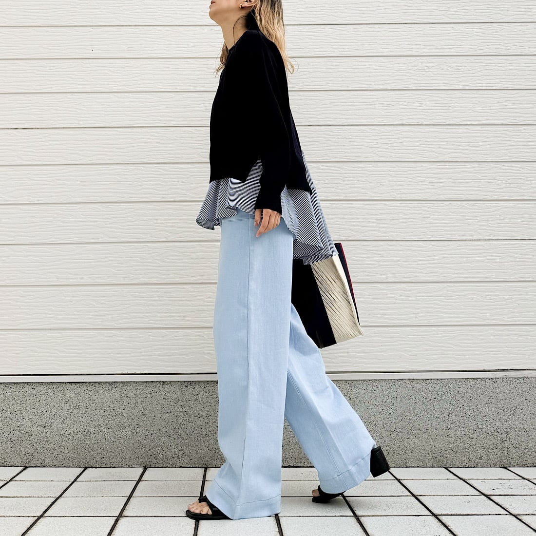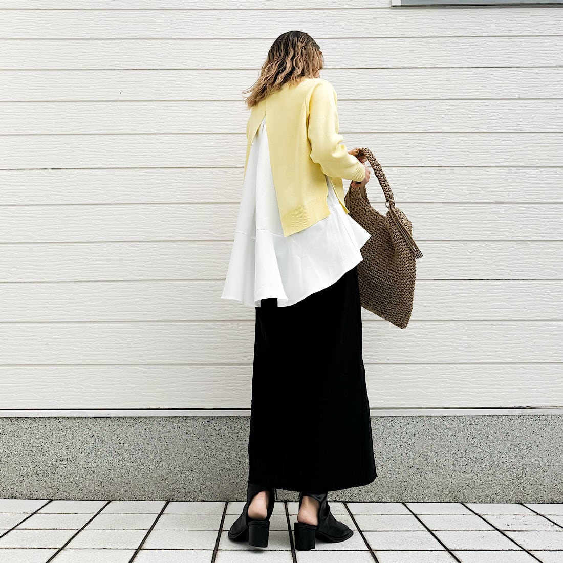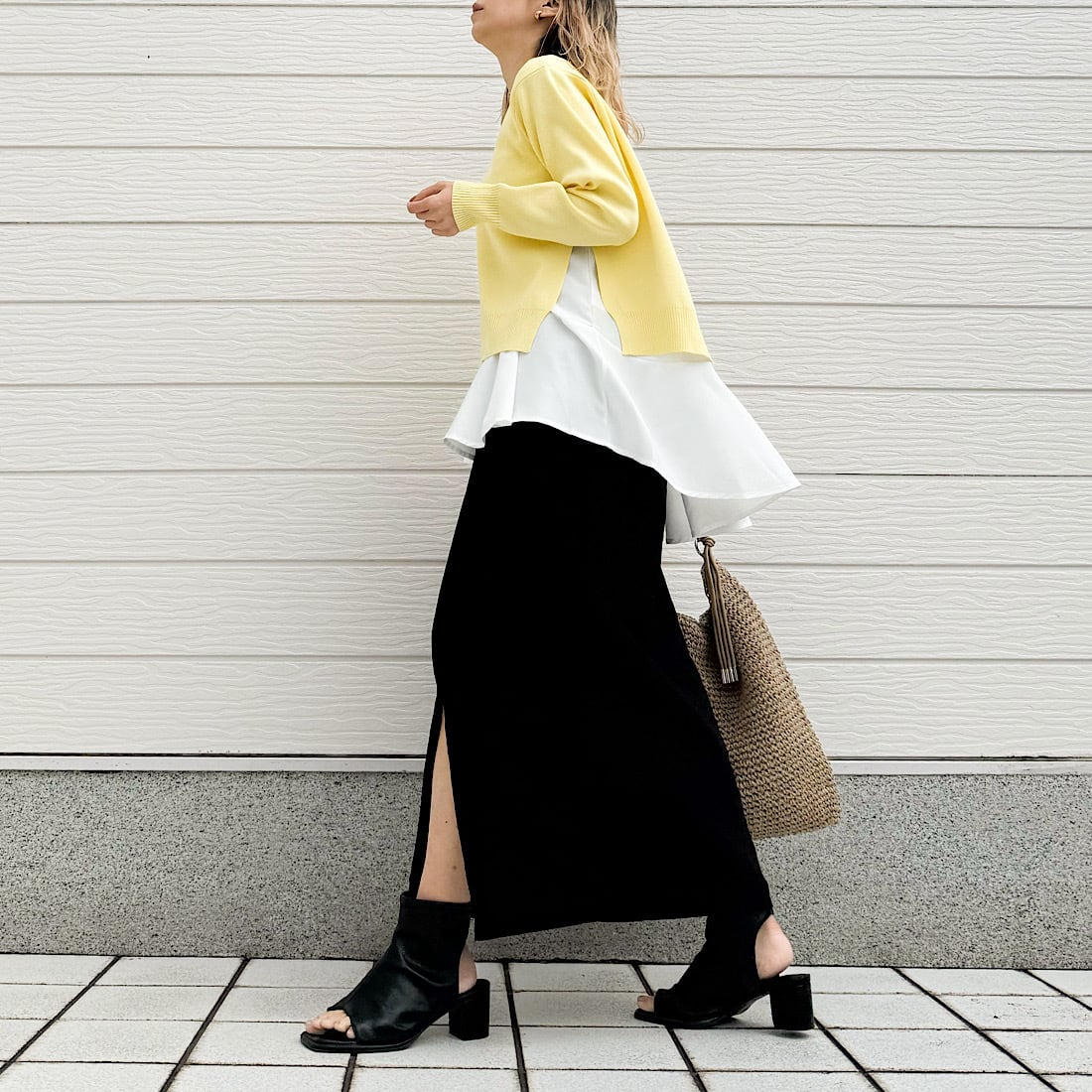 やわらかなニットに、裾が広がるフレアタンクをドッキング。