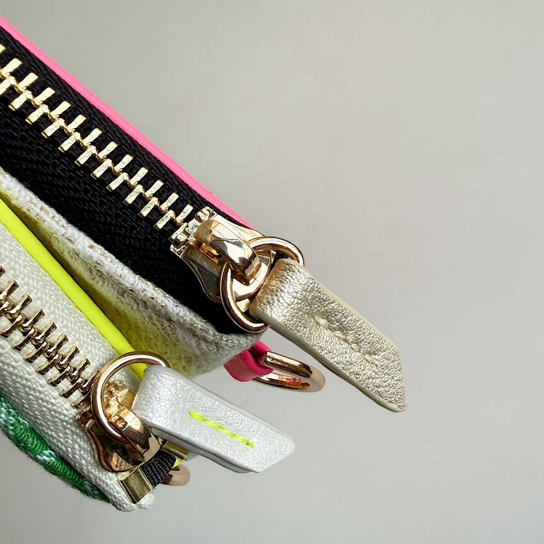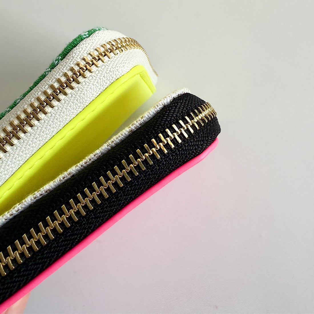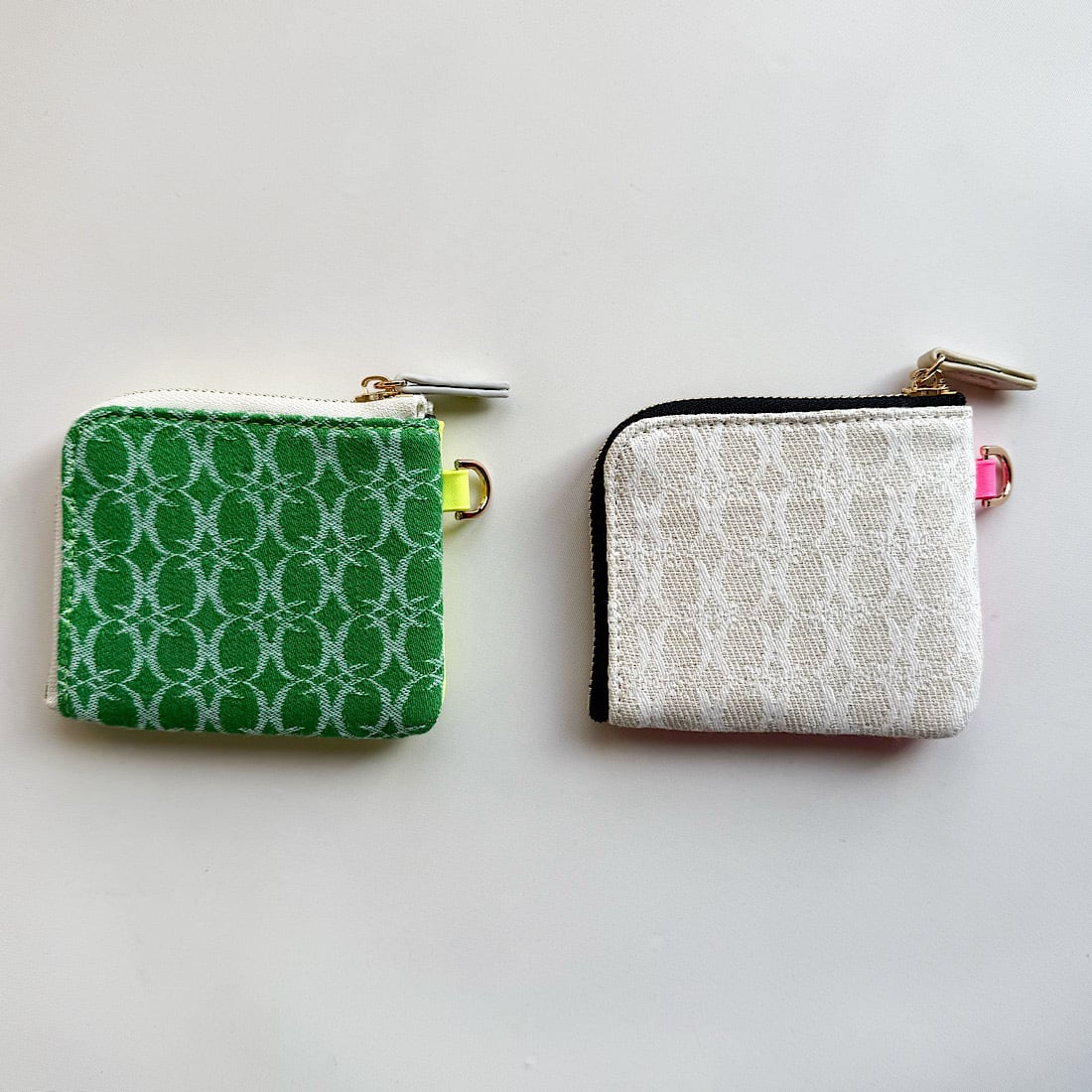 ベースには凹凸感のあるオリジナルジャガード生地を使用し、反対側にはネオンカラーのエコレザーをドッキングしました。