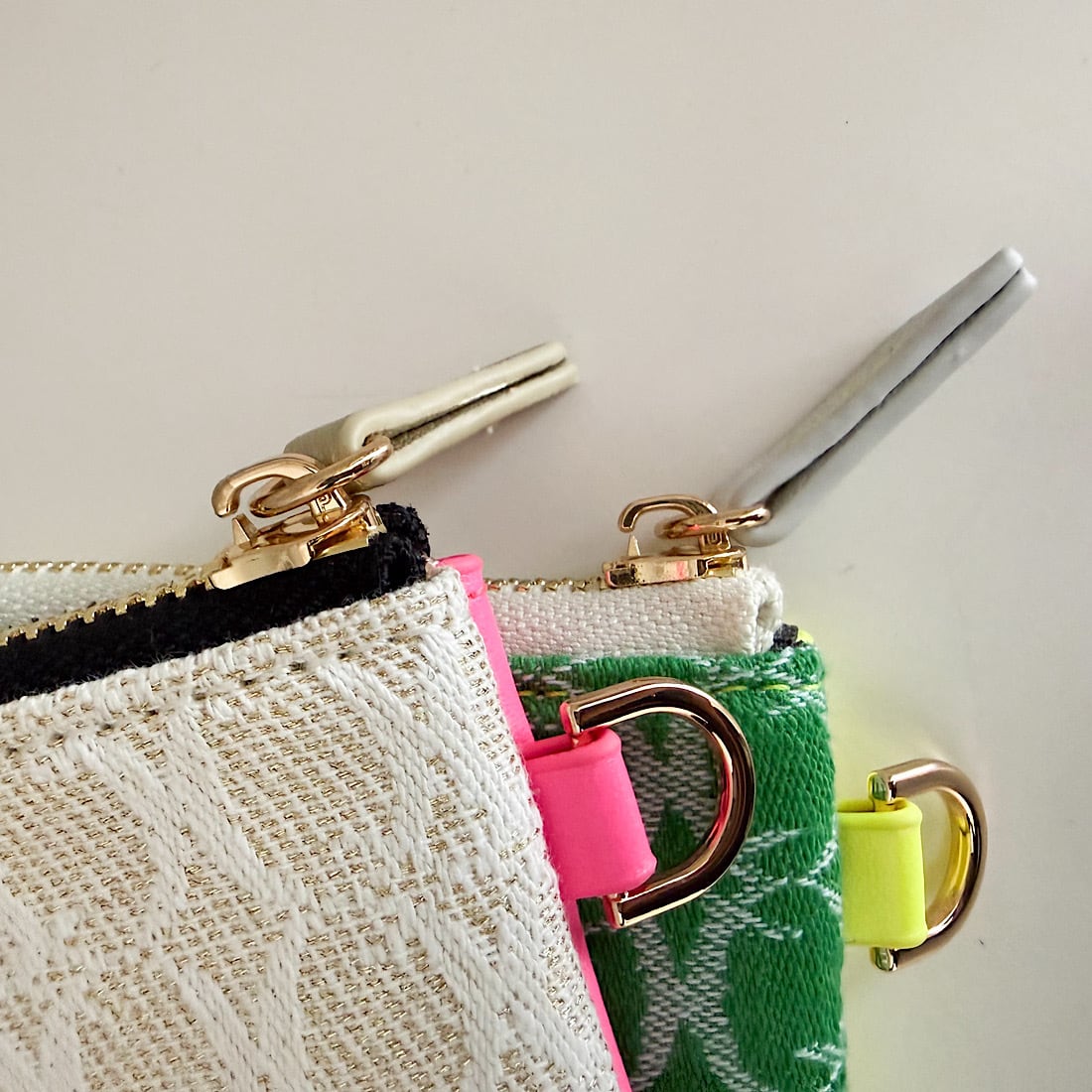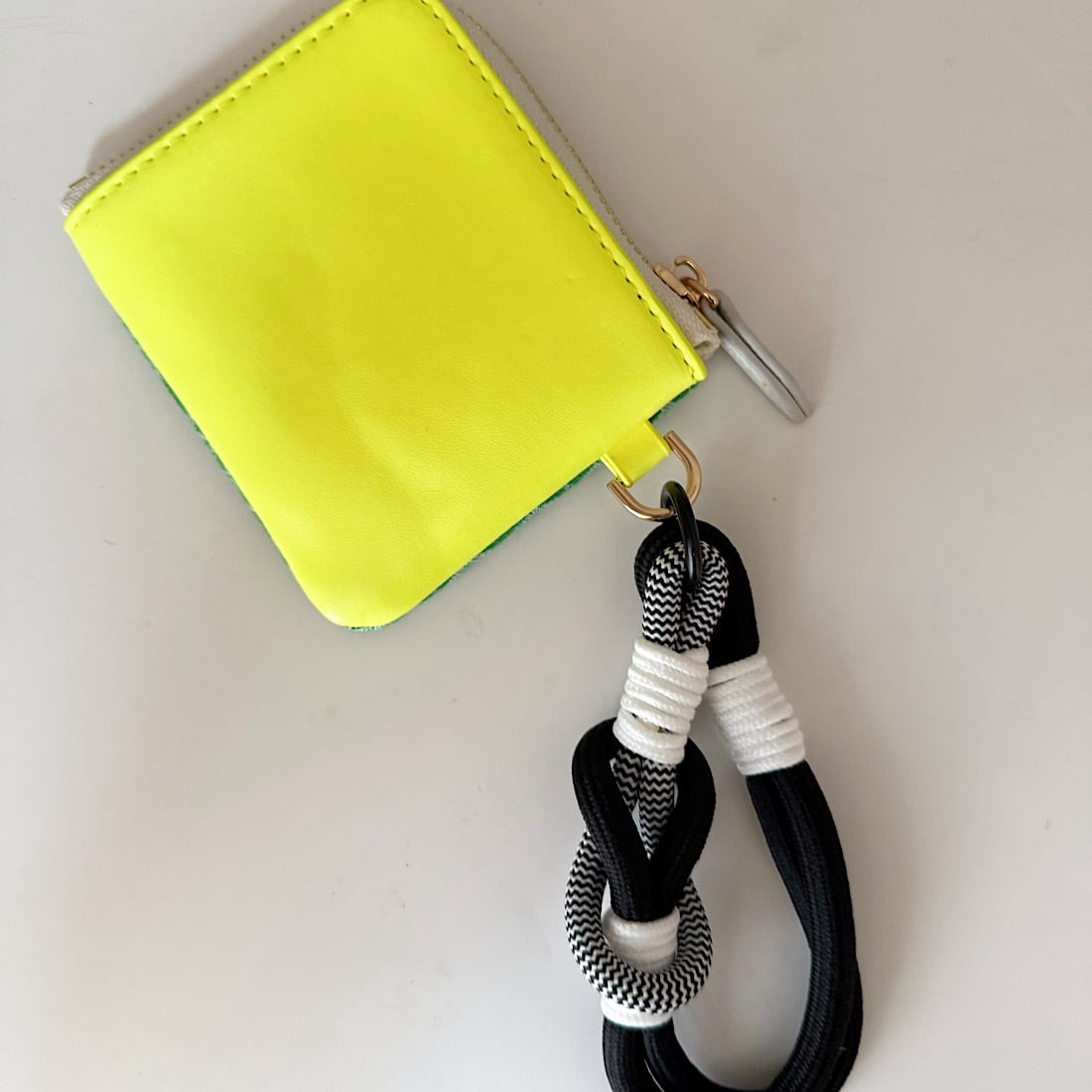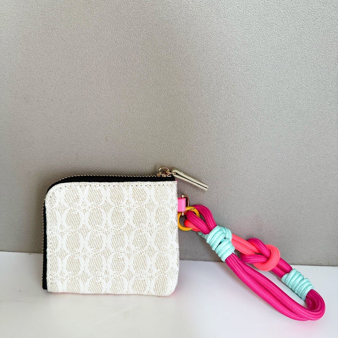 ベースには凹凸感のあるオリジナルジャガード生地を使用し、反対側にはネオンカラーのエコレザーをドッキングしました。