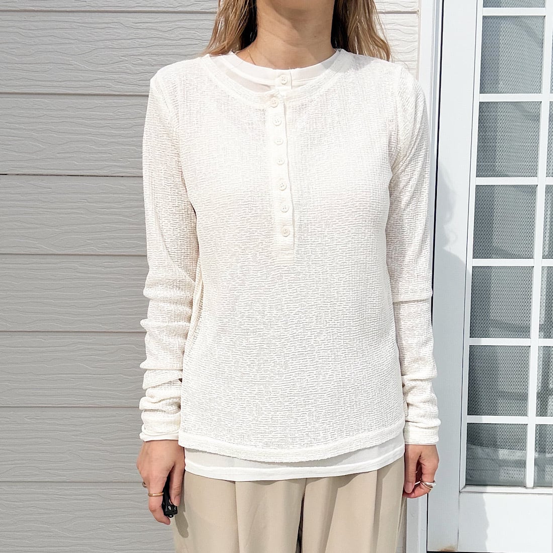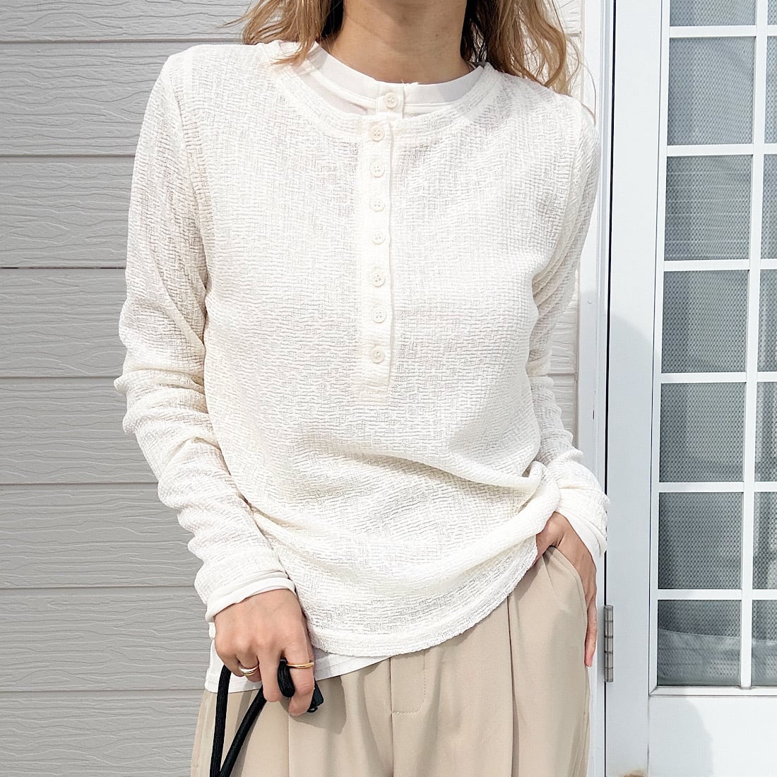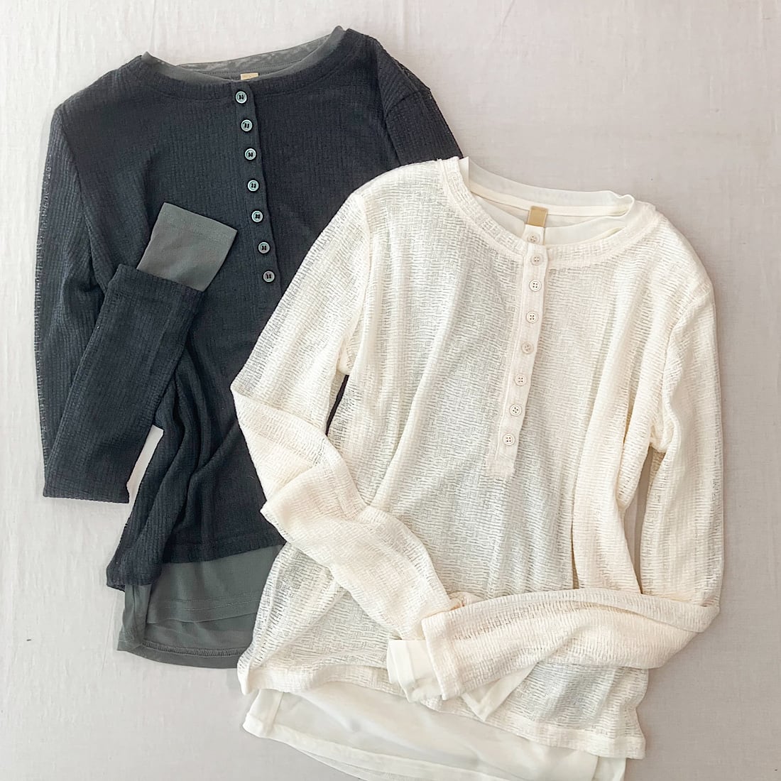 シアーヘンリーネックトップス