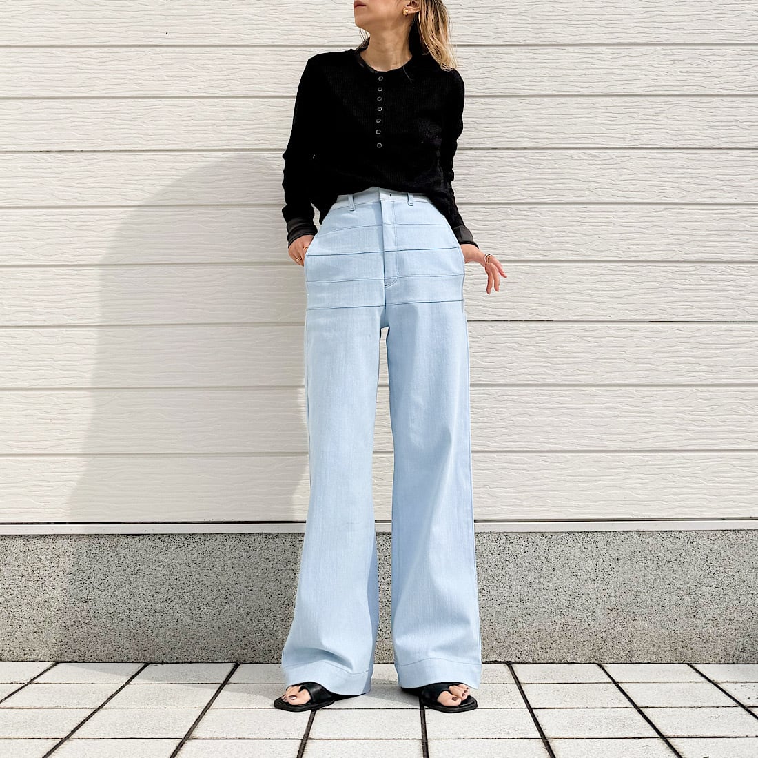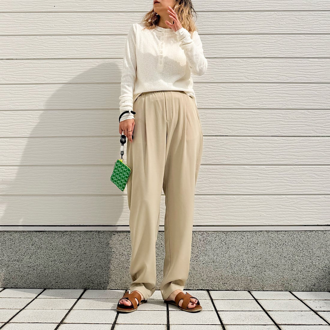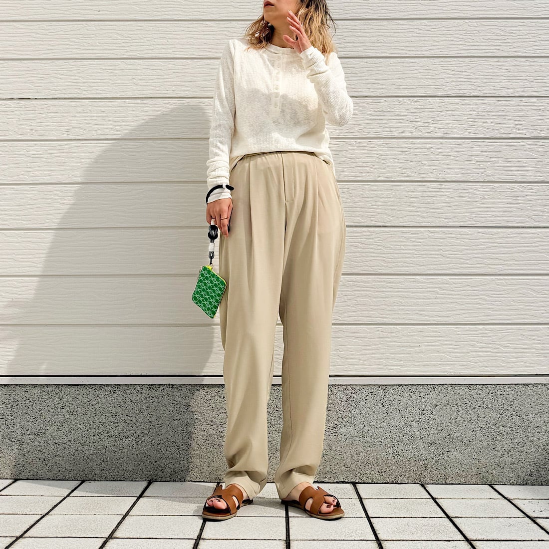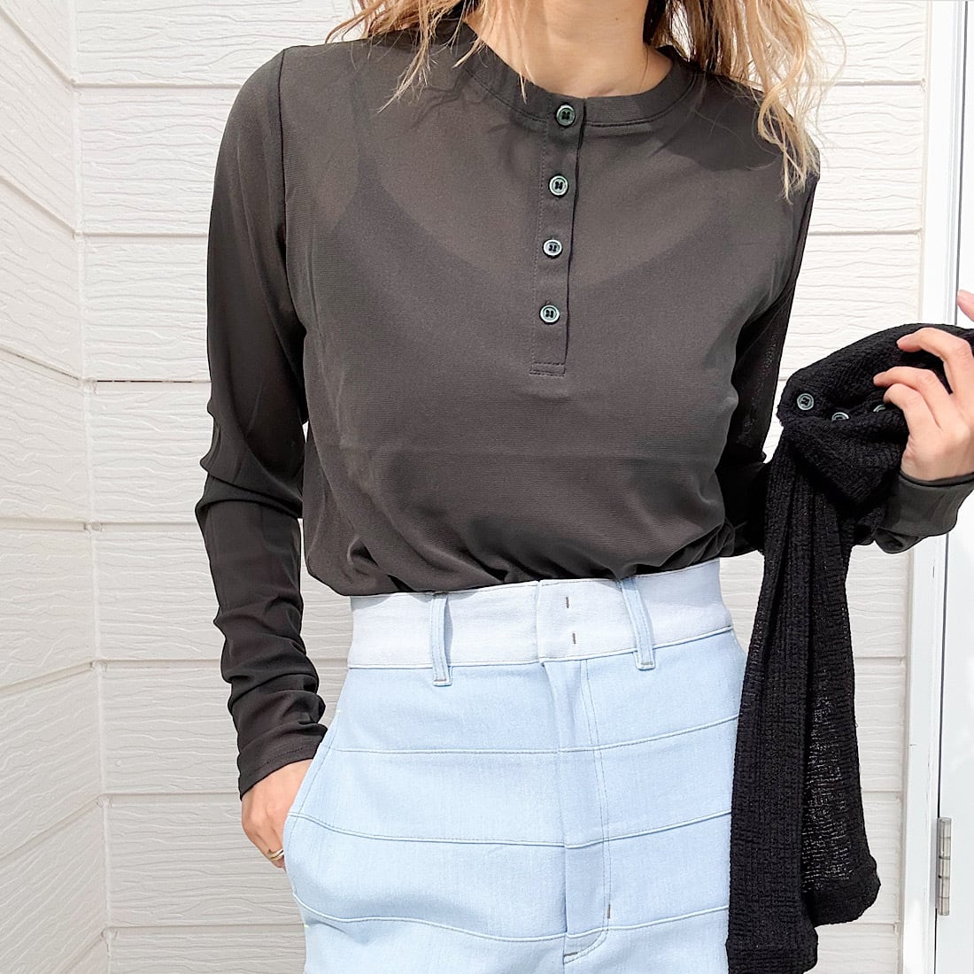 フロントのヘンリーボタンがさりげないアクセントに。