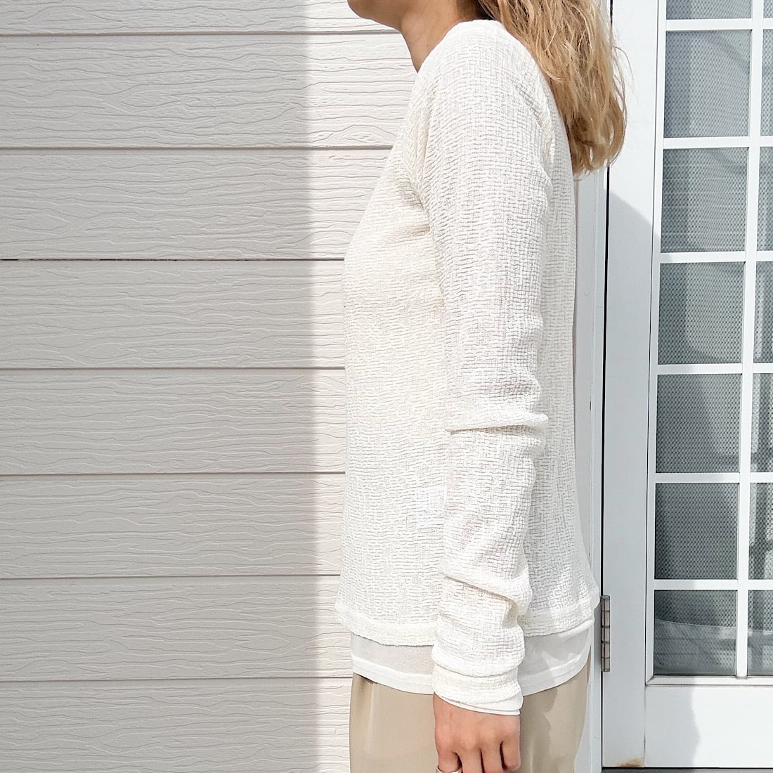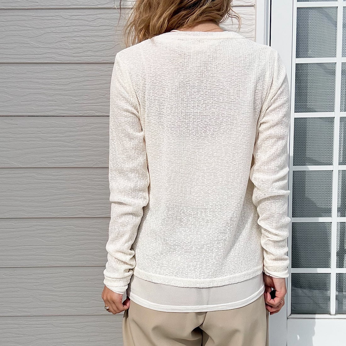 軽やかな素材感で、抜け感のあるレイヤードスタイルを楽しめます。