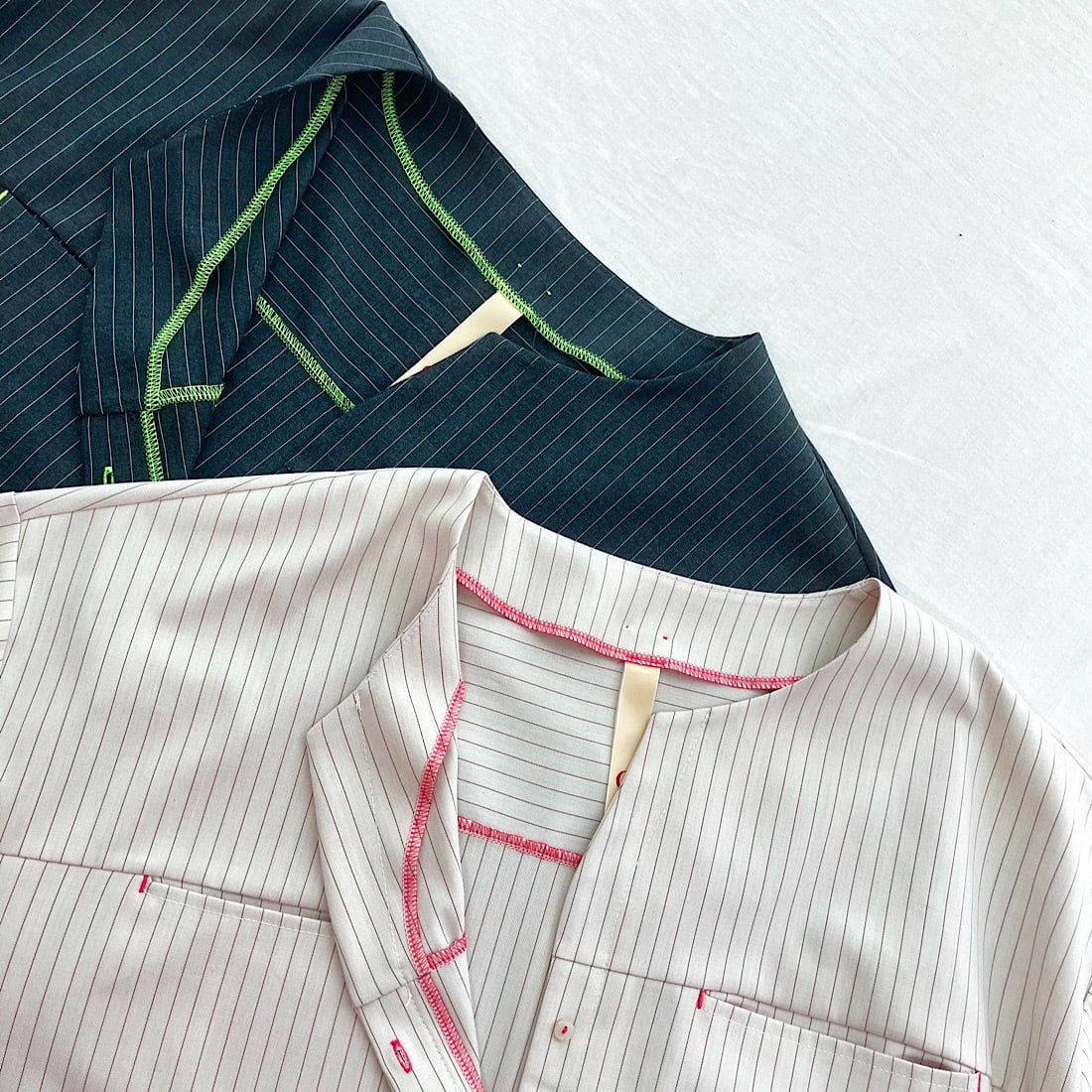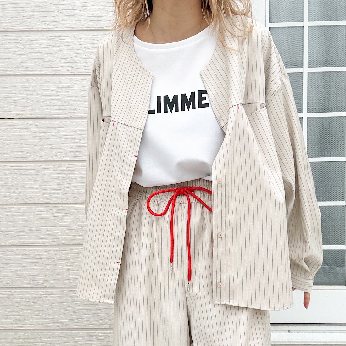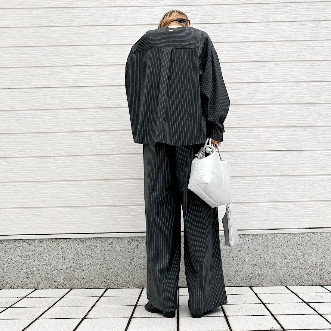 繊細なピンストライプをのせたデザインは、羽織るだけで顔周りをパッと明るく、洗練された印象になります。