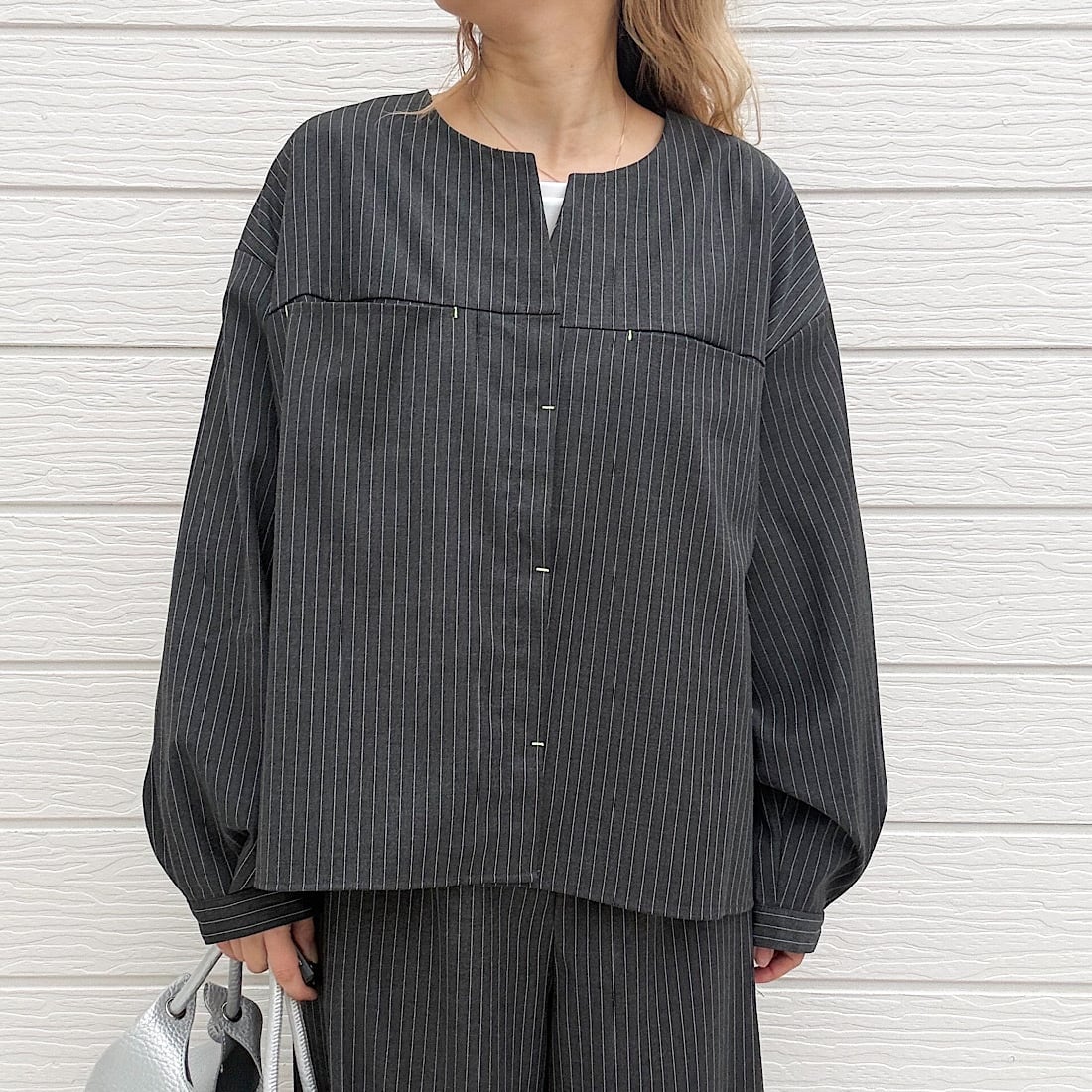 【セットアップ対応アイテム】ストライプシャツジャケット