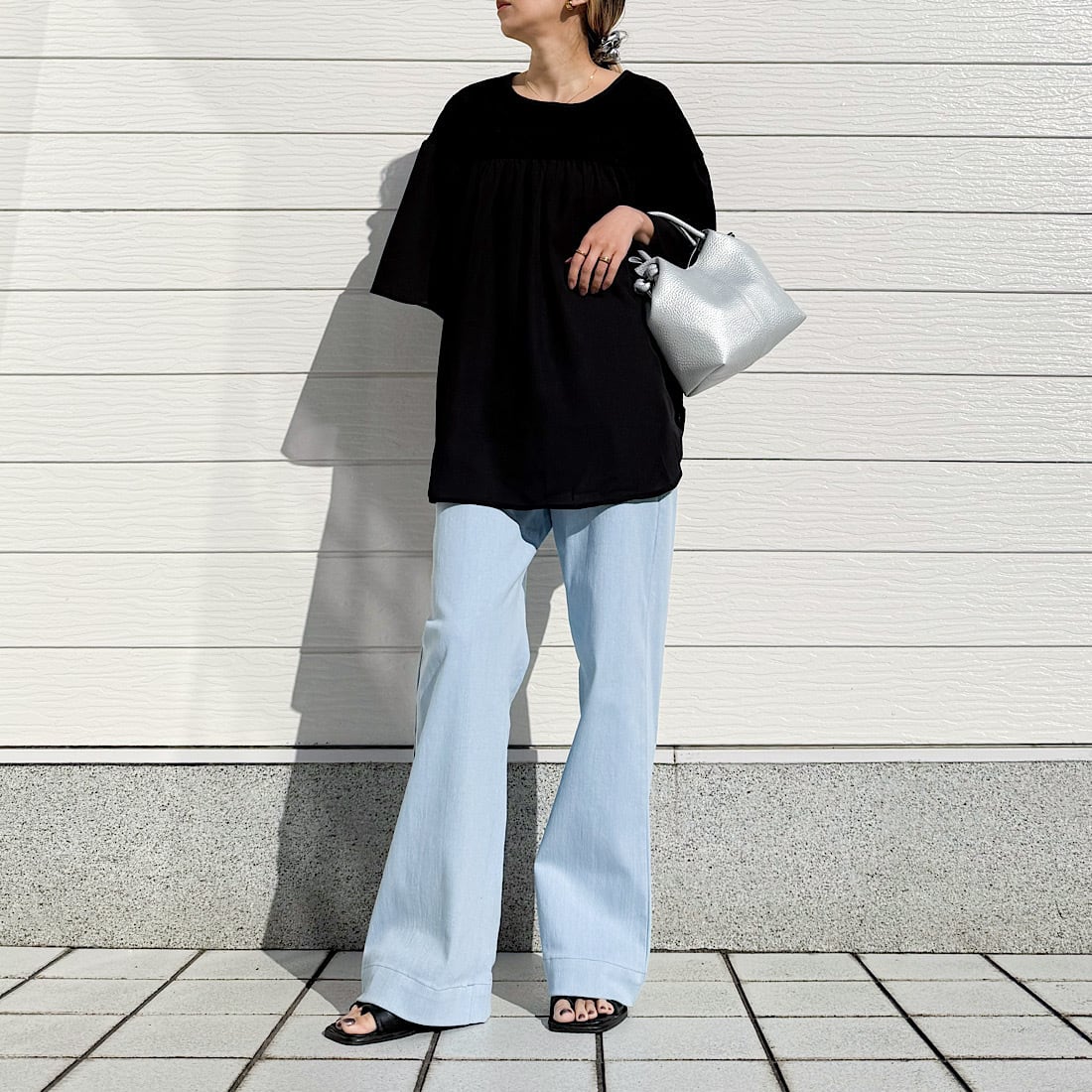 あえてデニムやカジュアルパンツと合わせて頂き、休日のキレイ目カジュアルとしても成り立つ1着です。