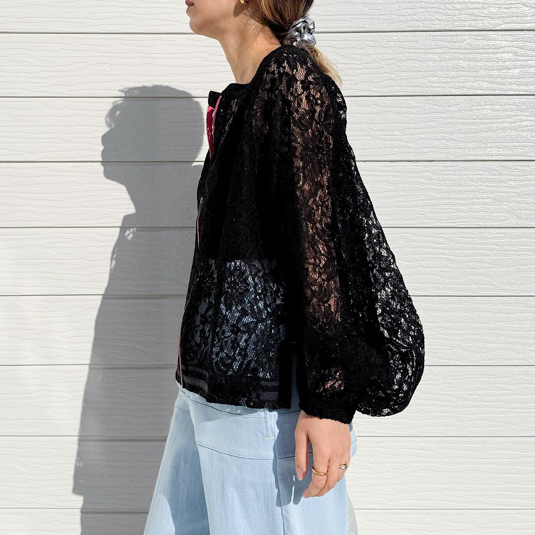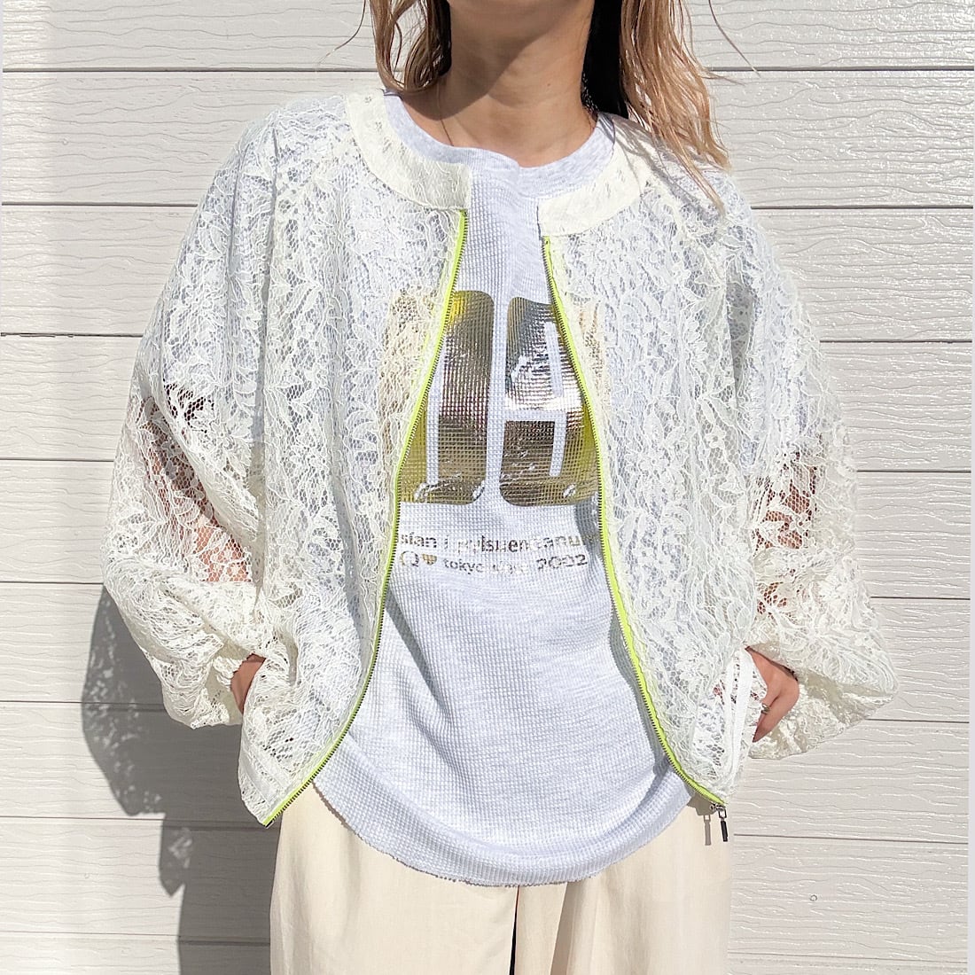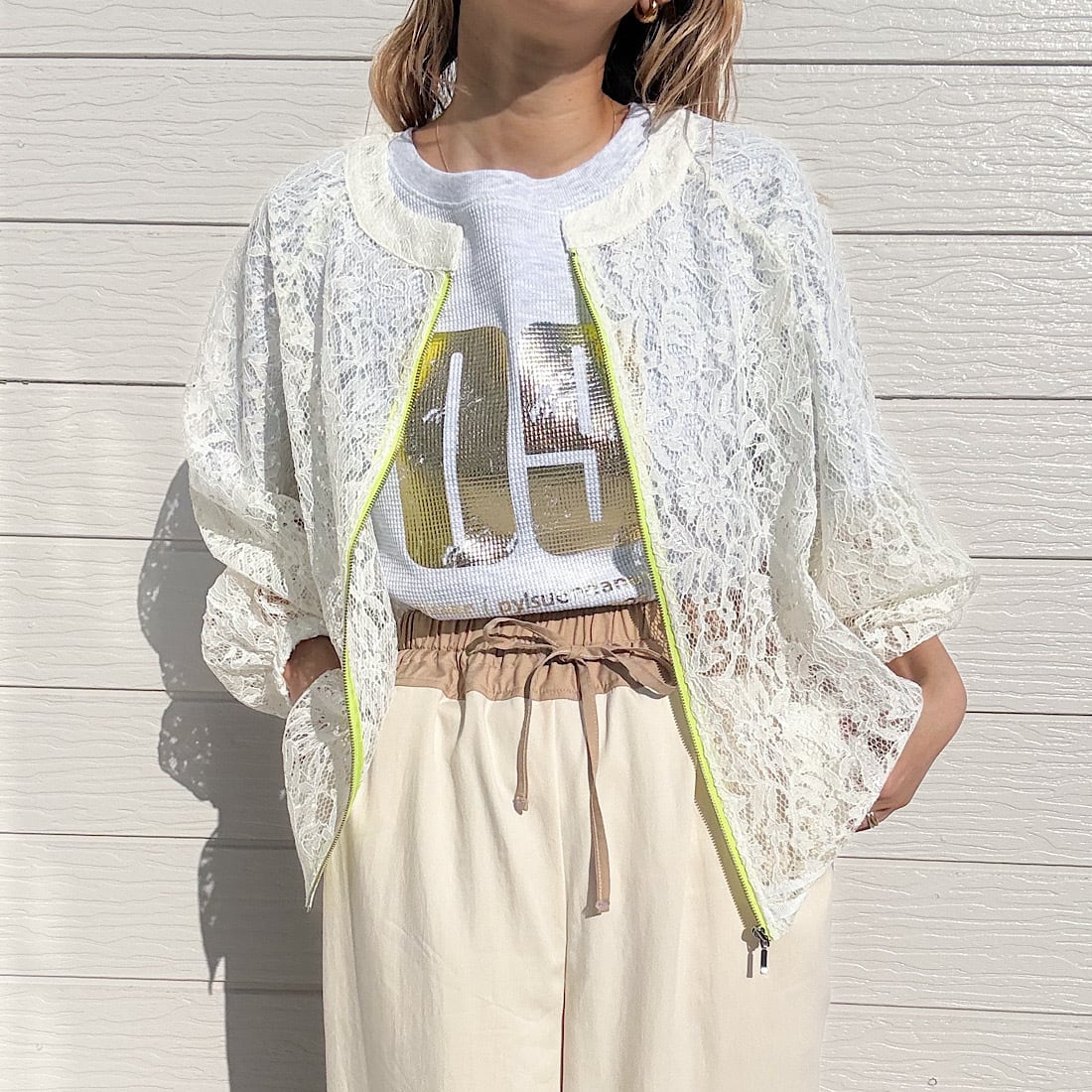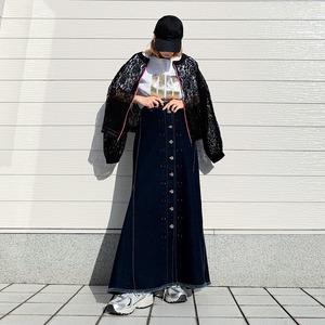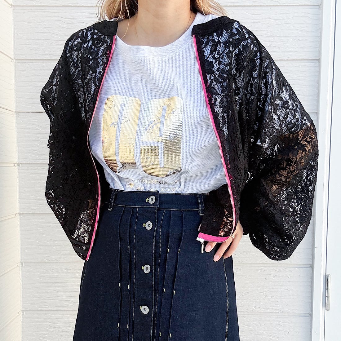 ジップアップのデザインが甘くなりすぎず甘辛ミックスな着こなしにぴったりと合い、キレイめなスカートと合わせてドレッシーに、デニムやワイドパンツと
