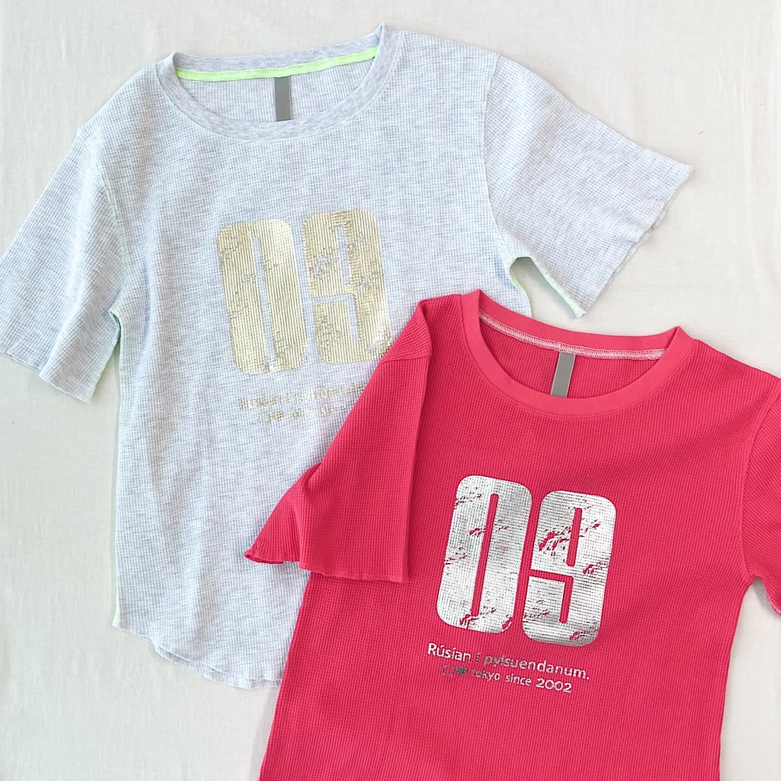 立体感のあるワッフル素材に、存在感のあるプリントのTシャツです。