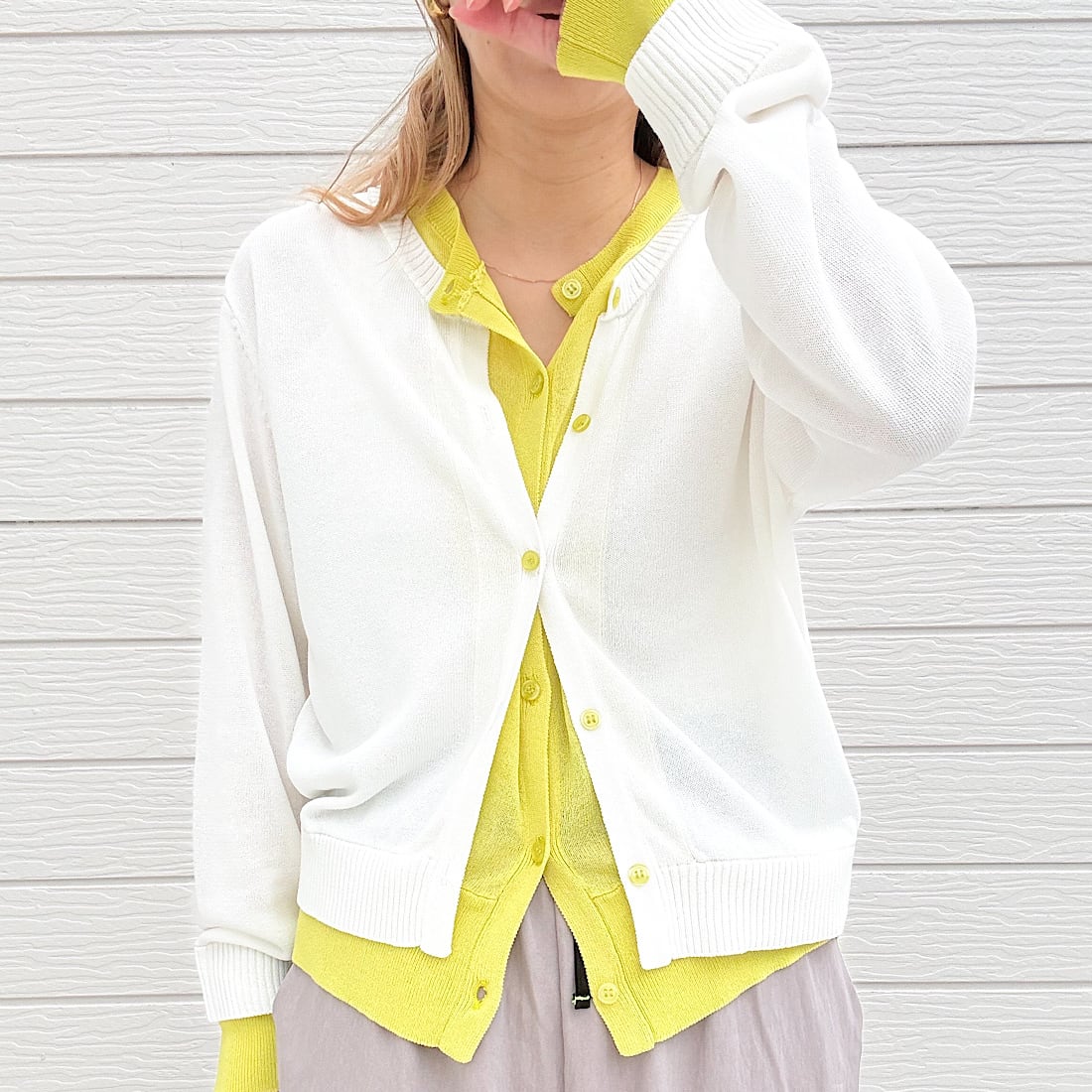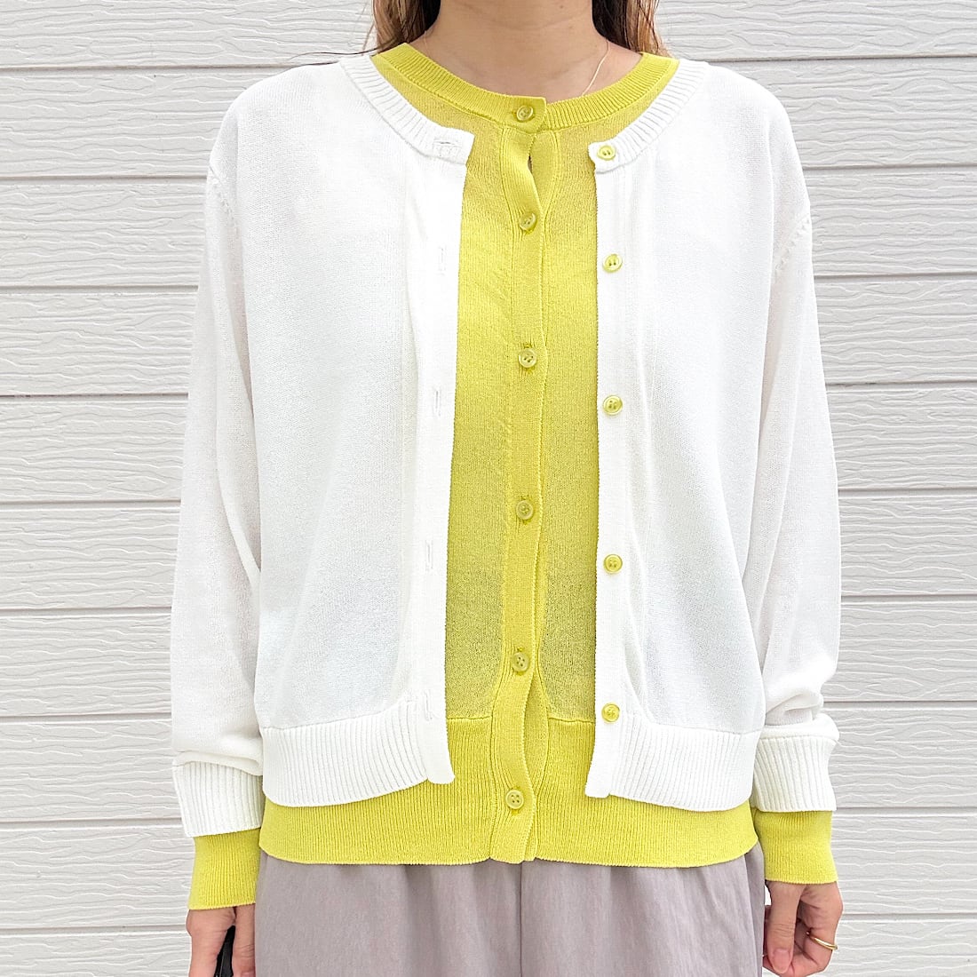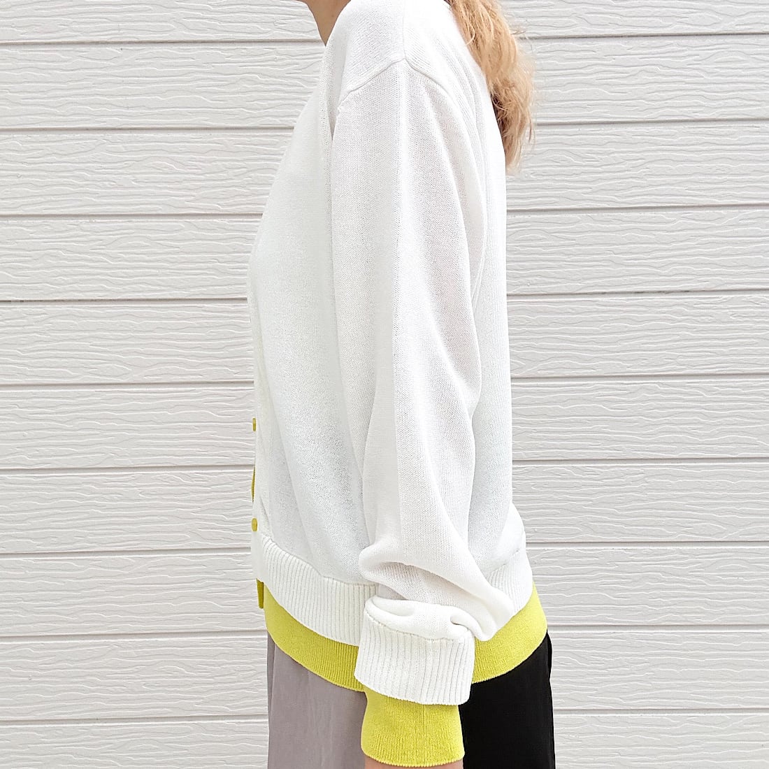 レイヤード風バイカラーカーデ