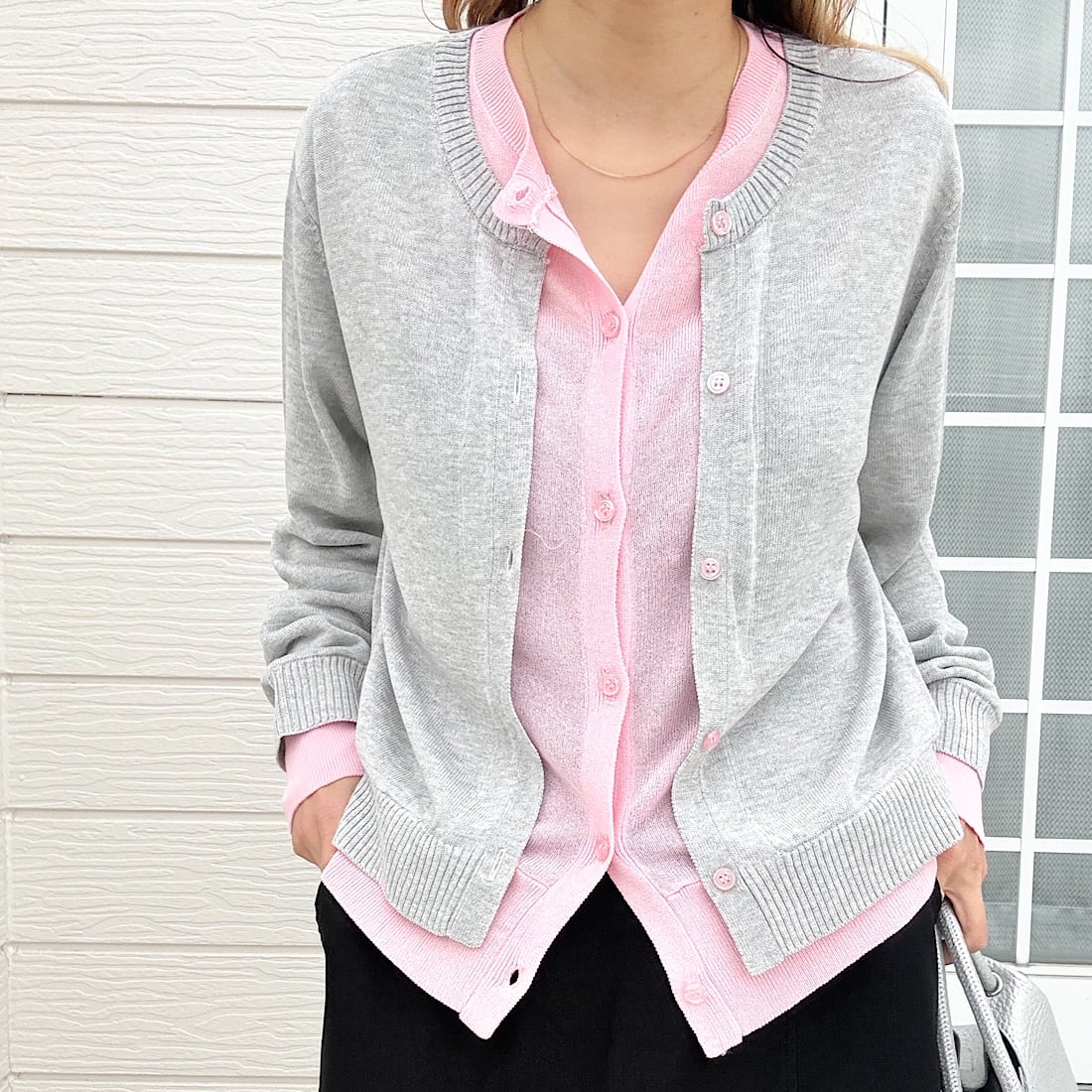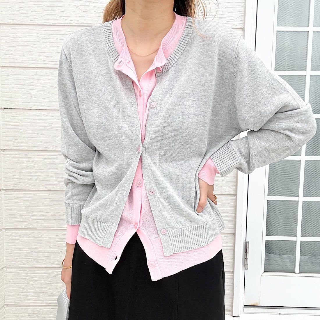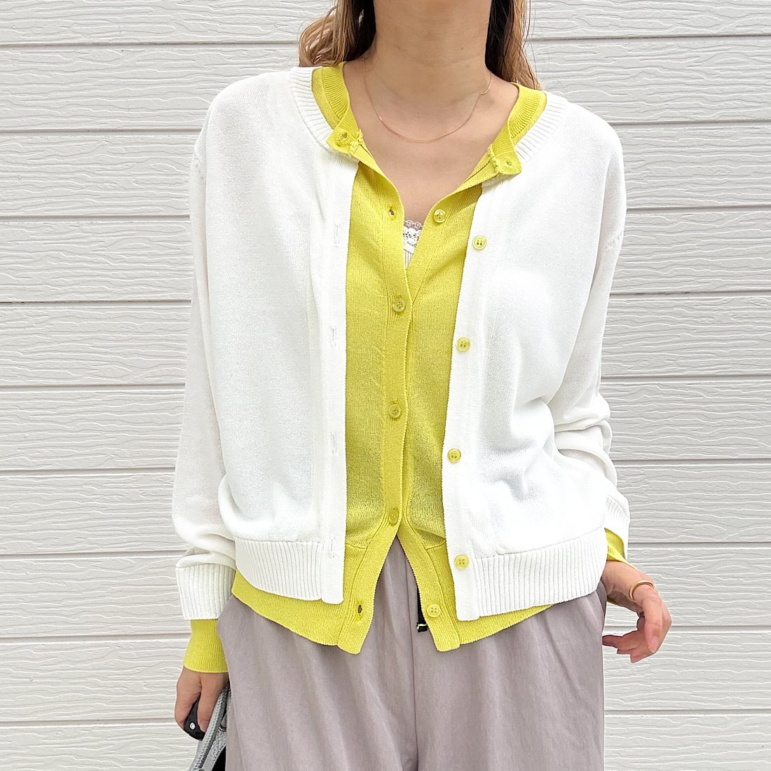 レイヤード風バイカラーカーデ