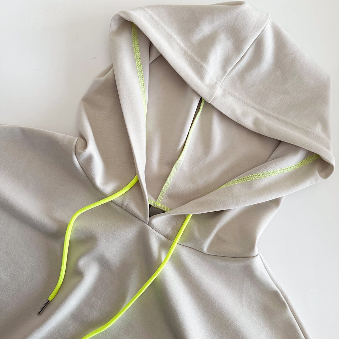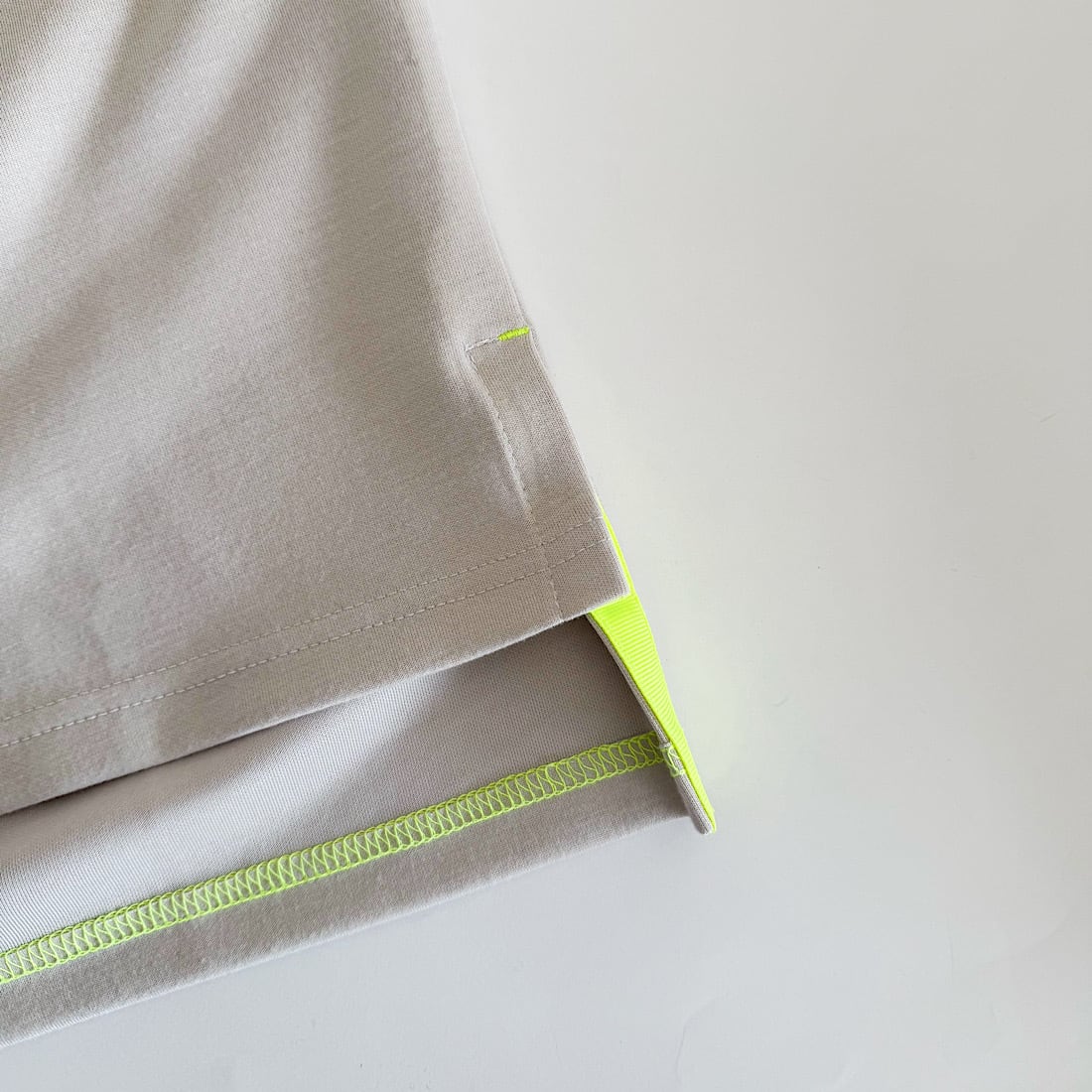 紐部分やサイドのスリット部分にアクセントカラーを入れアクセントに。