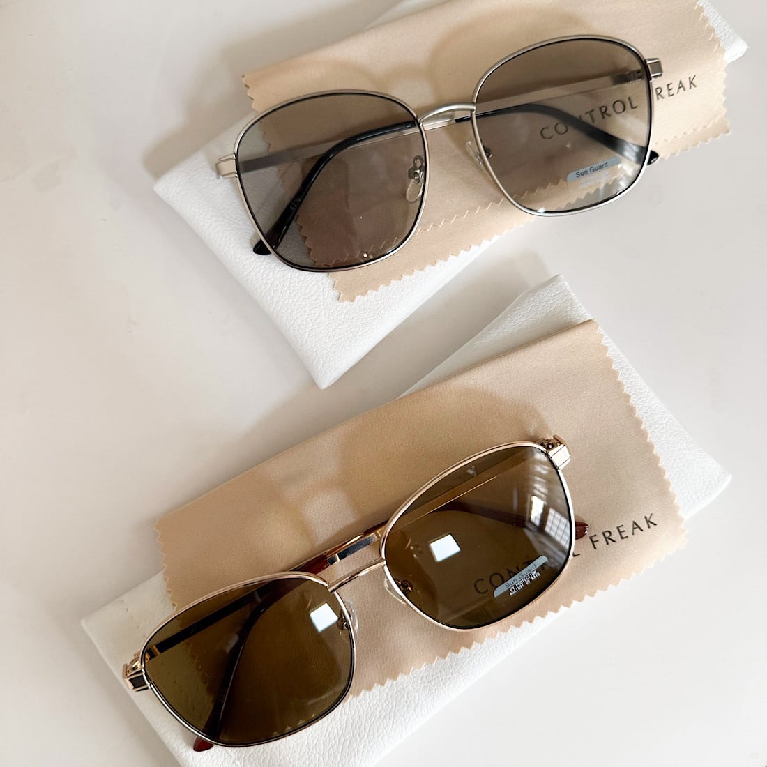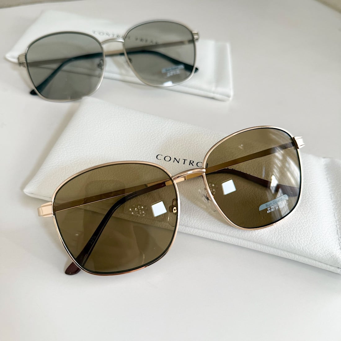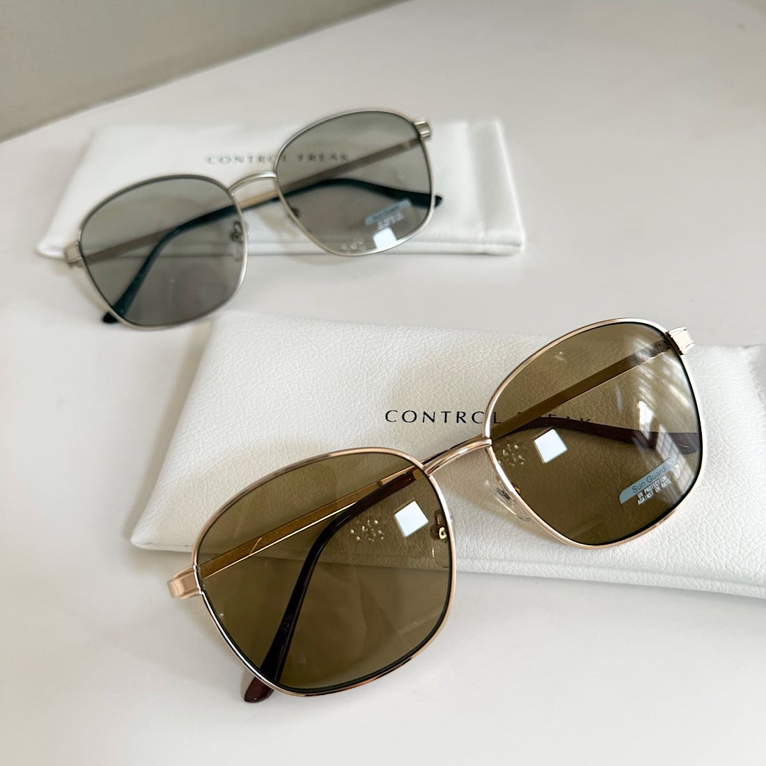 サングラスケースとベージュのクロスが付きます。