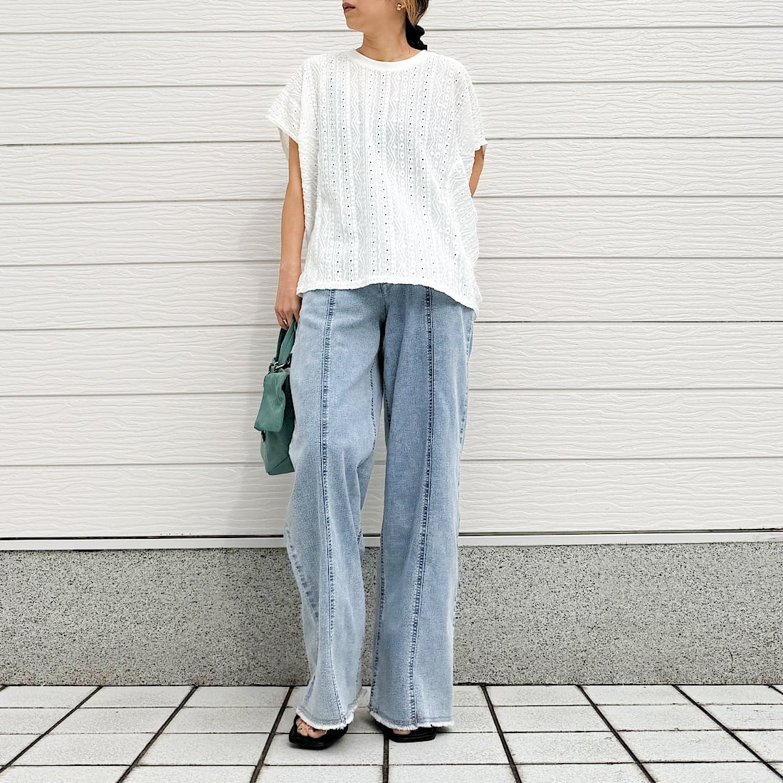 シンプルなカラーでのご用意なので春夏にデニムや柄スカート合わせでレジャーにも普段にも着用でき、ワイドパンツやタイトスカートでお仕事シーンにも
