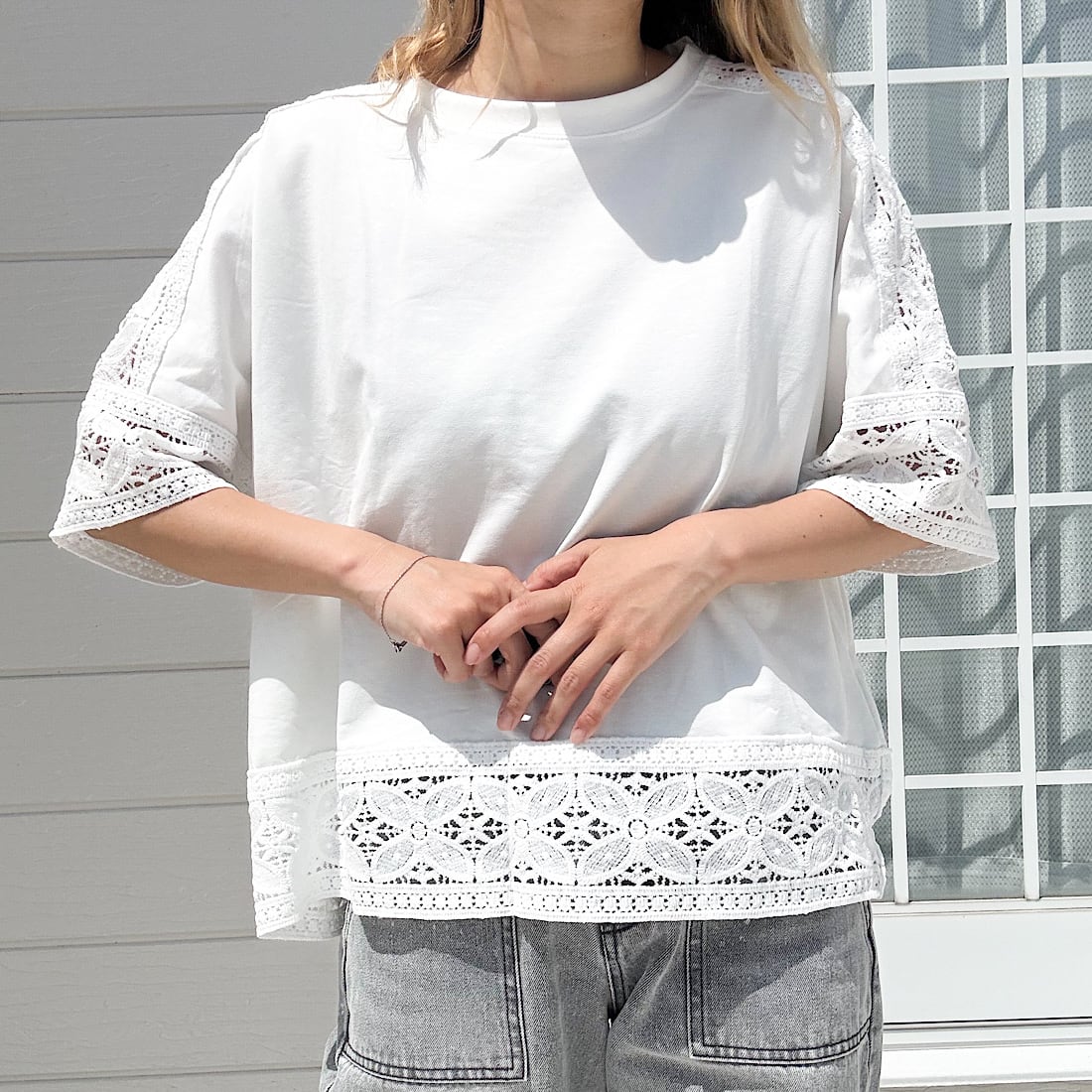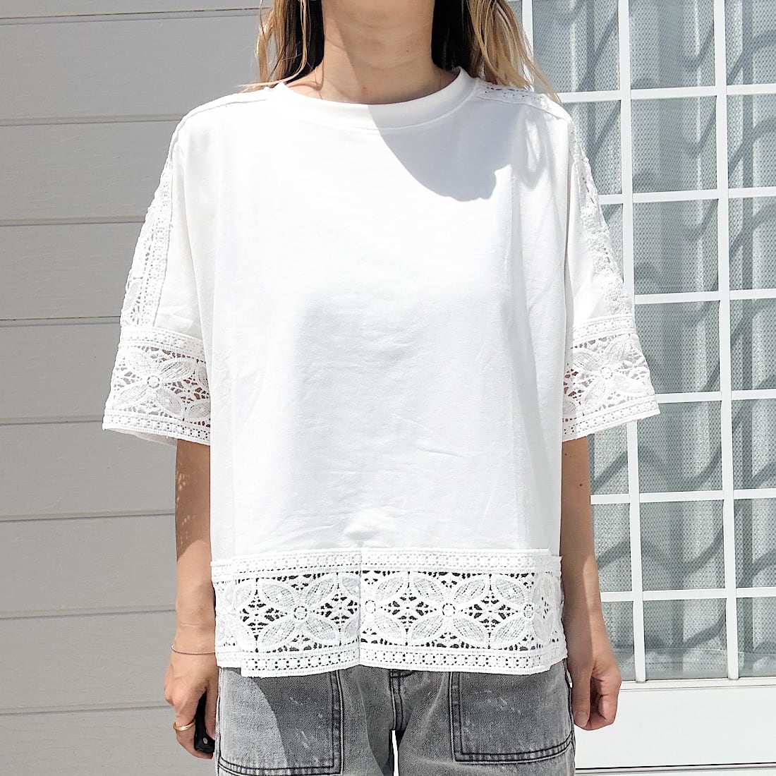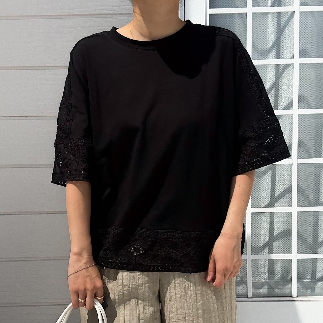刺繍レースで魅せる、大人カジュアルな上品Tシャツ。