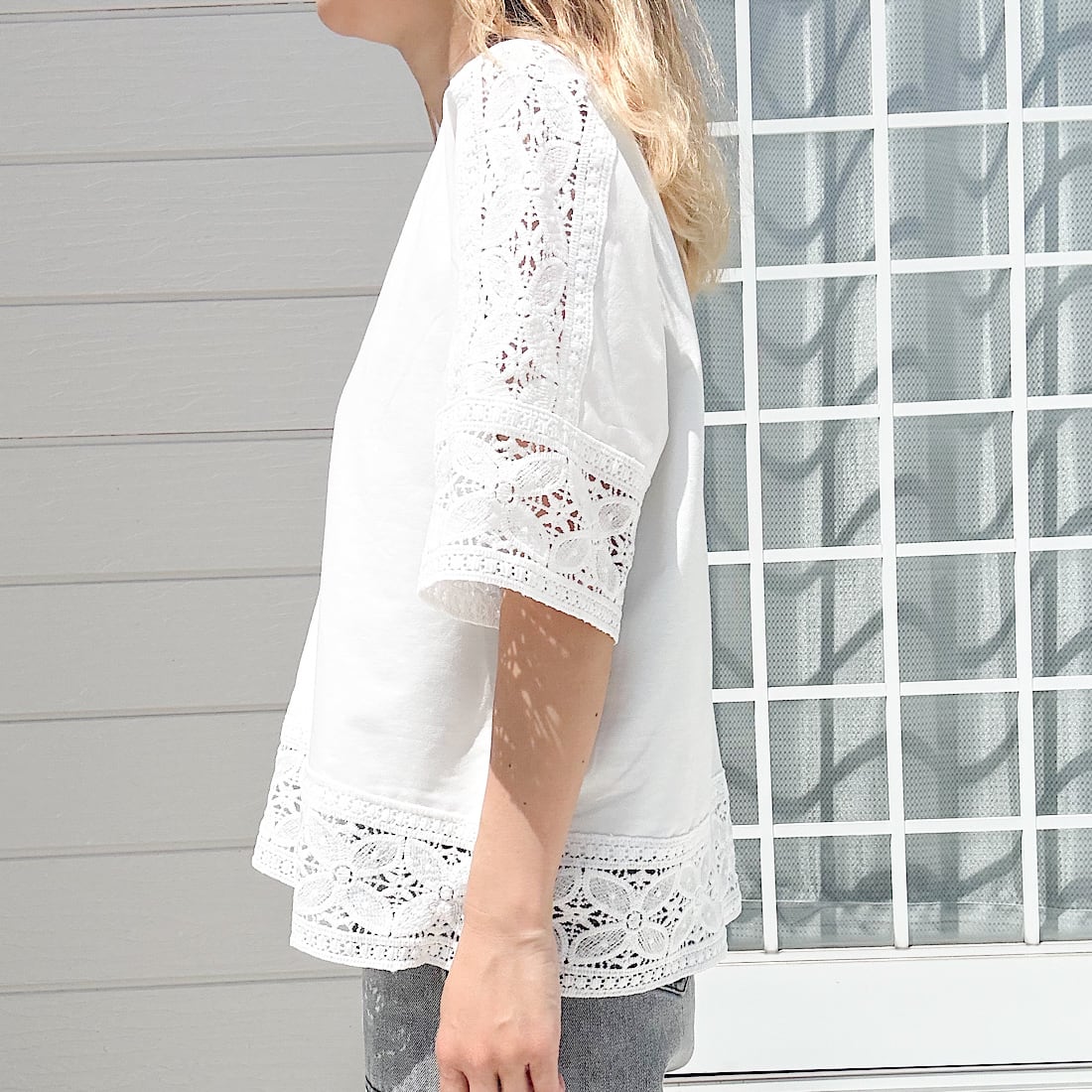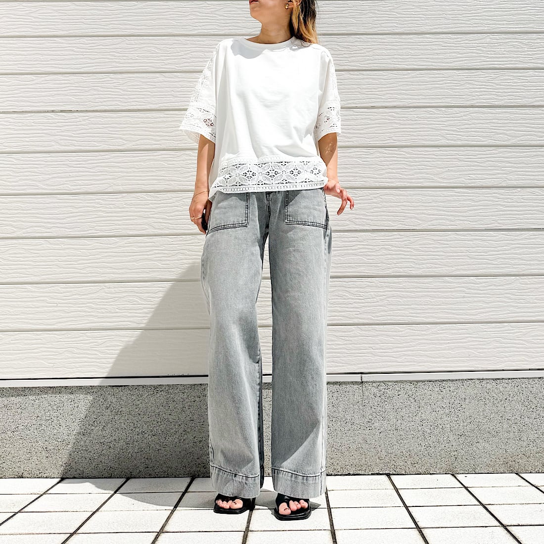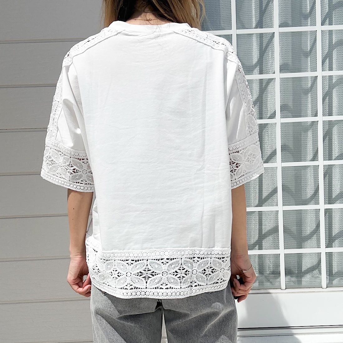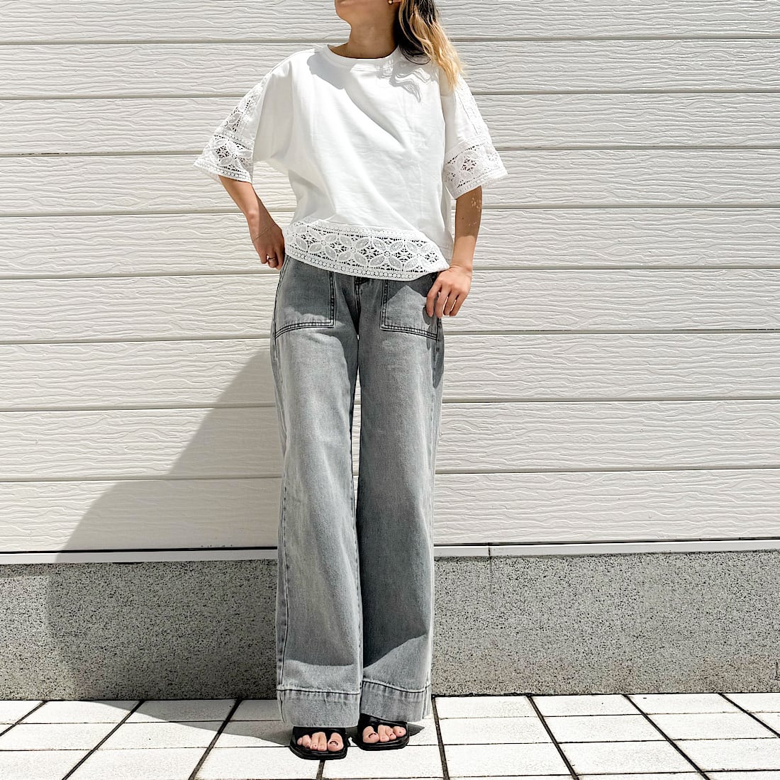 刺繍レースで魅せる、大人カジュアルな上品Tシャツ。