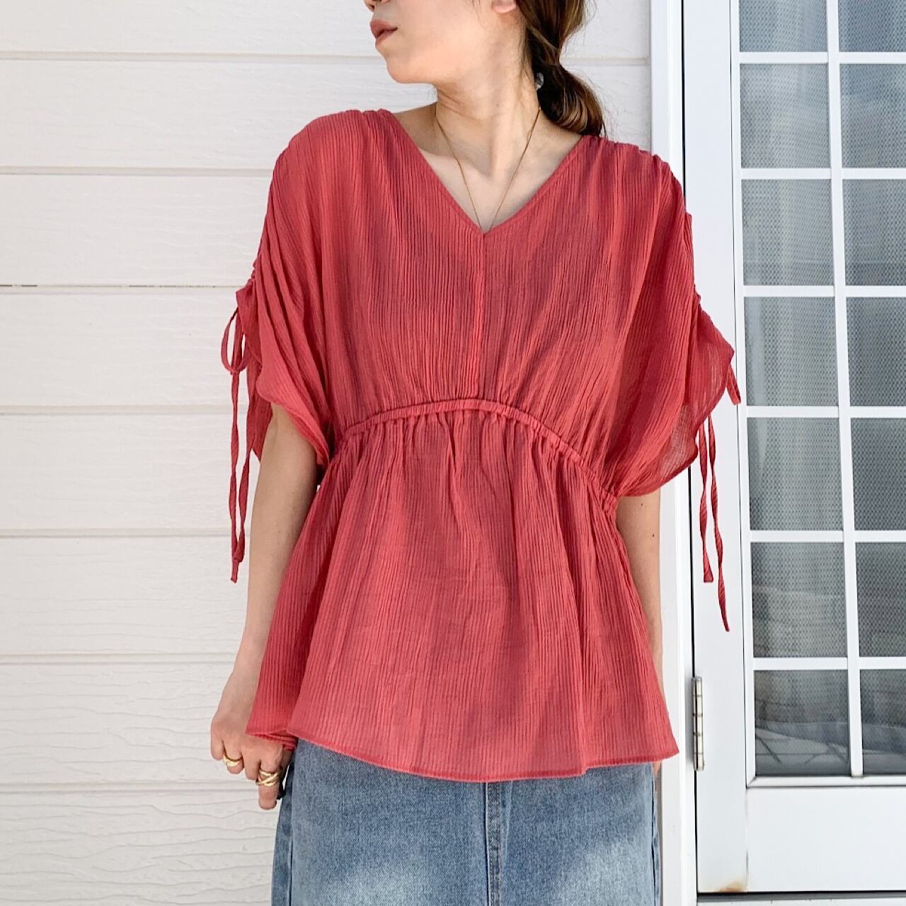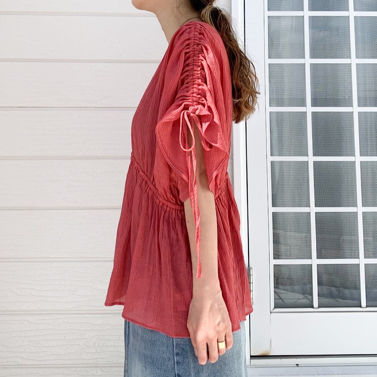 ショルダードロストギャザーブラウス