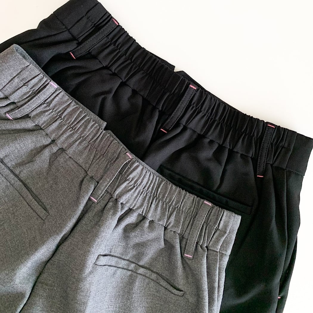 タックが入ったテーパードシルエットがほどよいゆとりと美しいシルエットを演出してくれます。