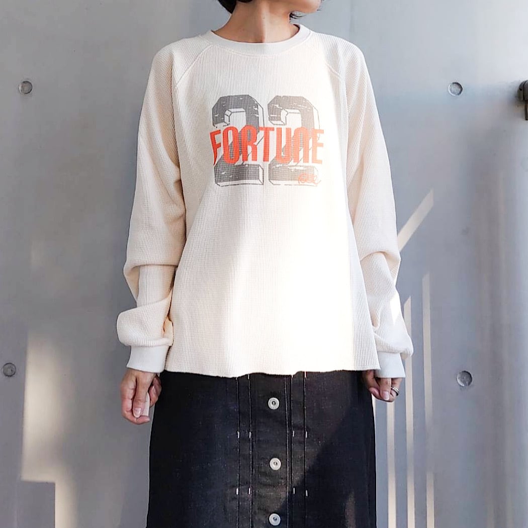 ワッフル素材で仕上げた長袖のプリントカットソーです。