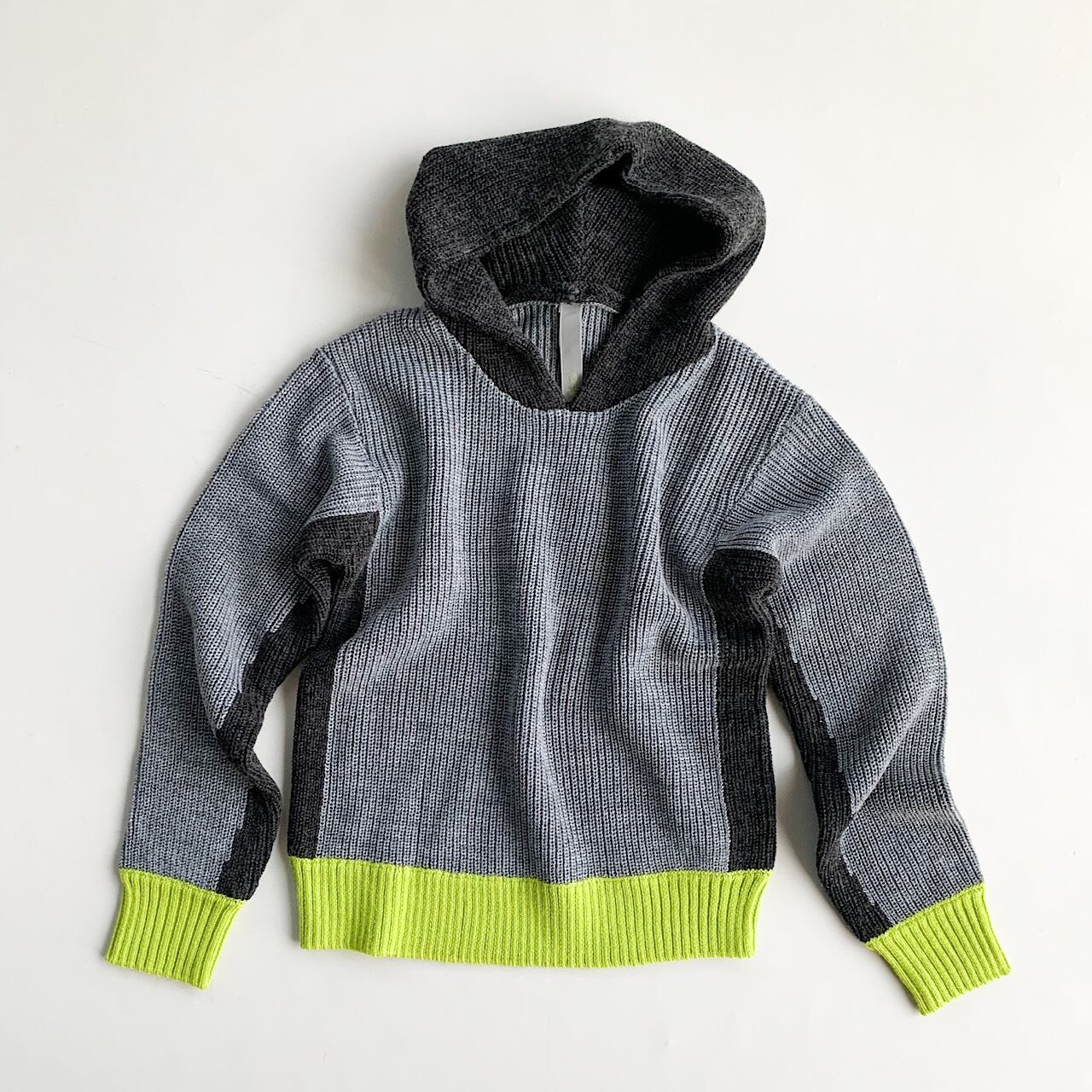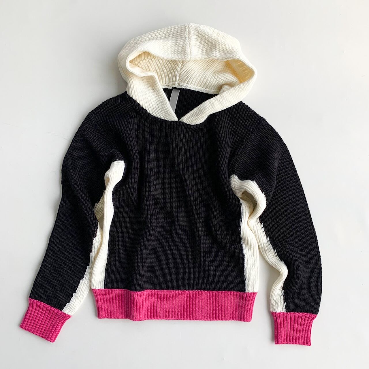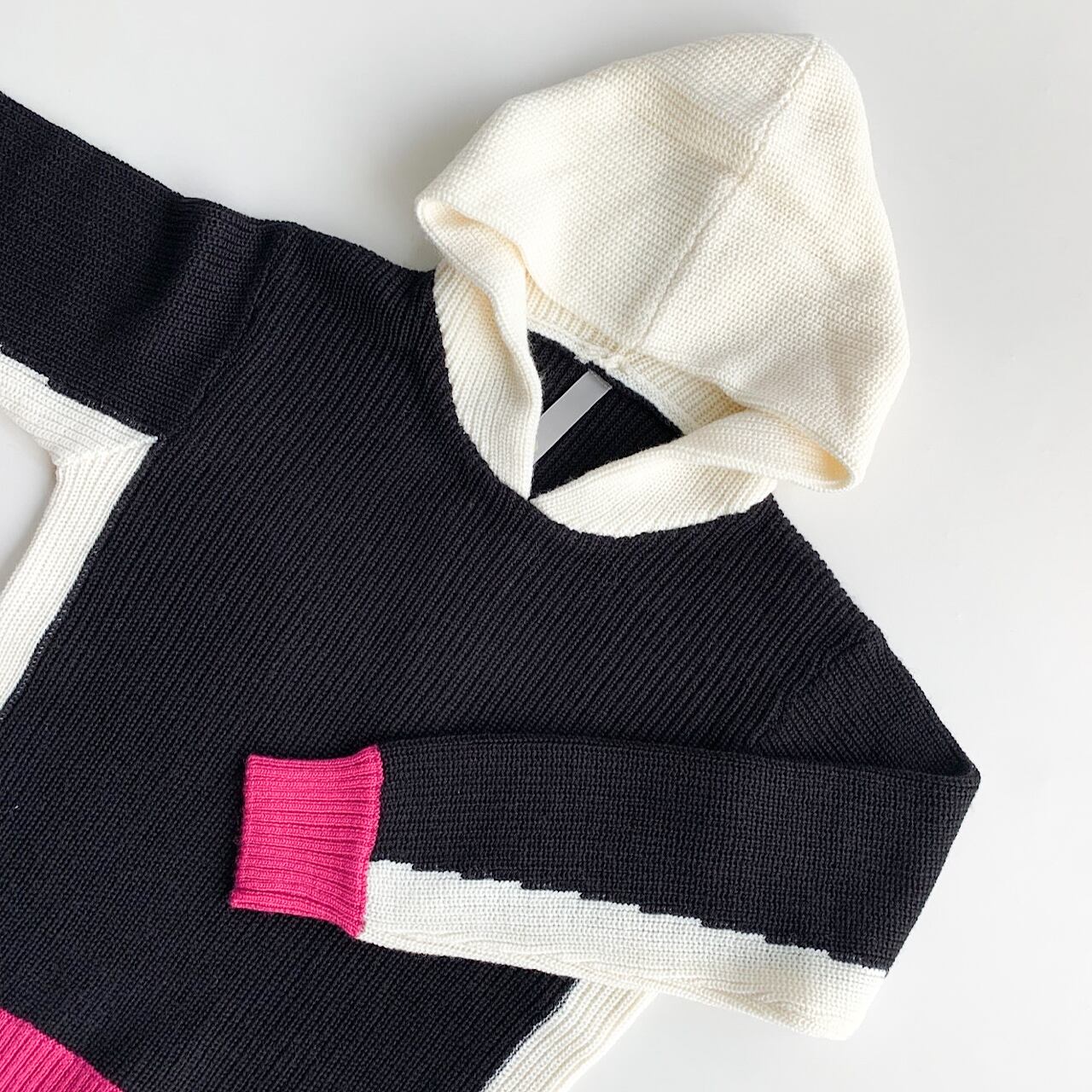 厚みのあるふっくらとしたニット素材を使用したこのフーディーパーカーは、バルキーヤーンによるざっくり感が魅力です。