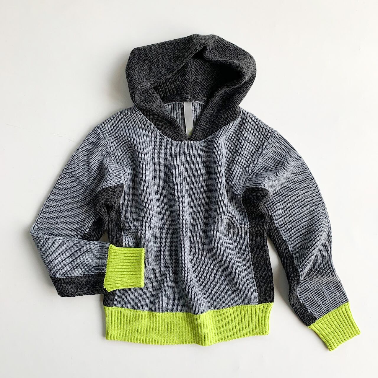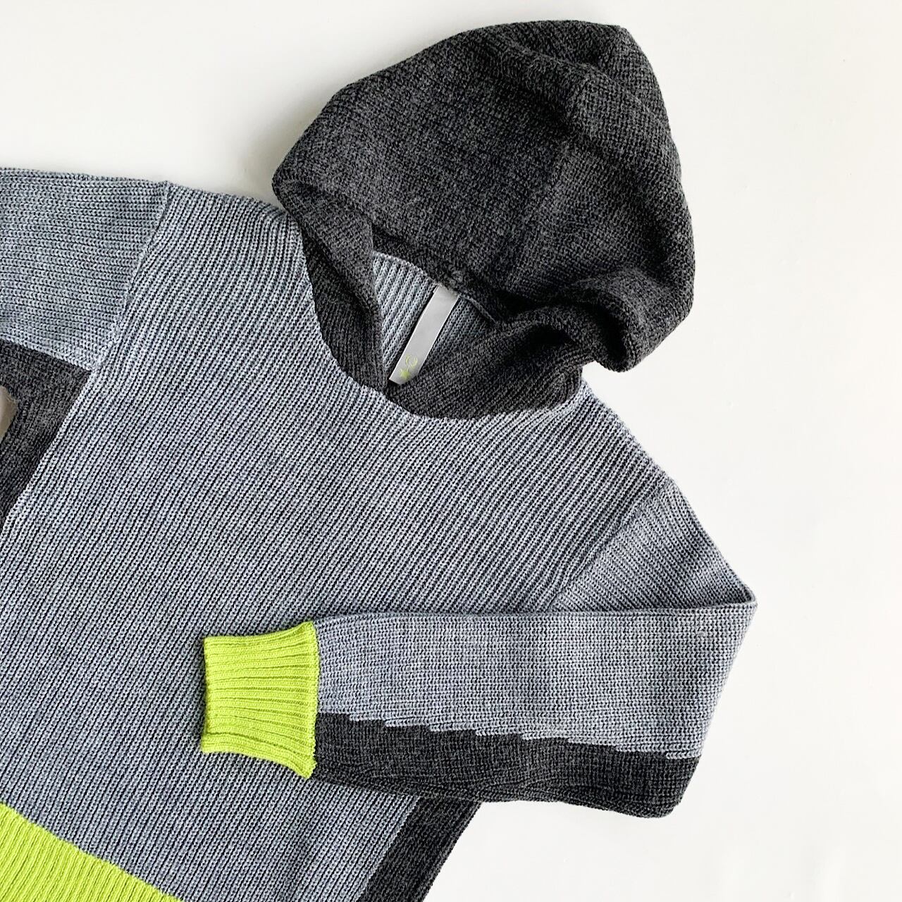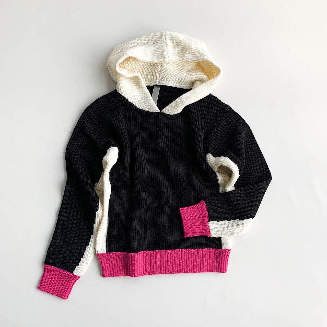 厚みのあるふっくらとしたニット素材を使用したこのフーディーパーカーは、バルキーヤーンによるざっくり感が魅力です。