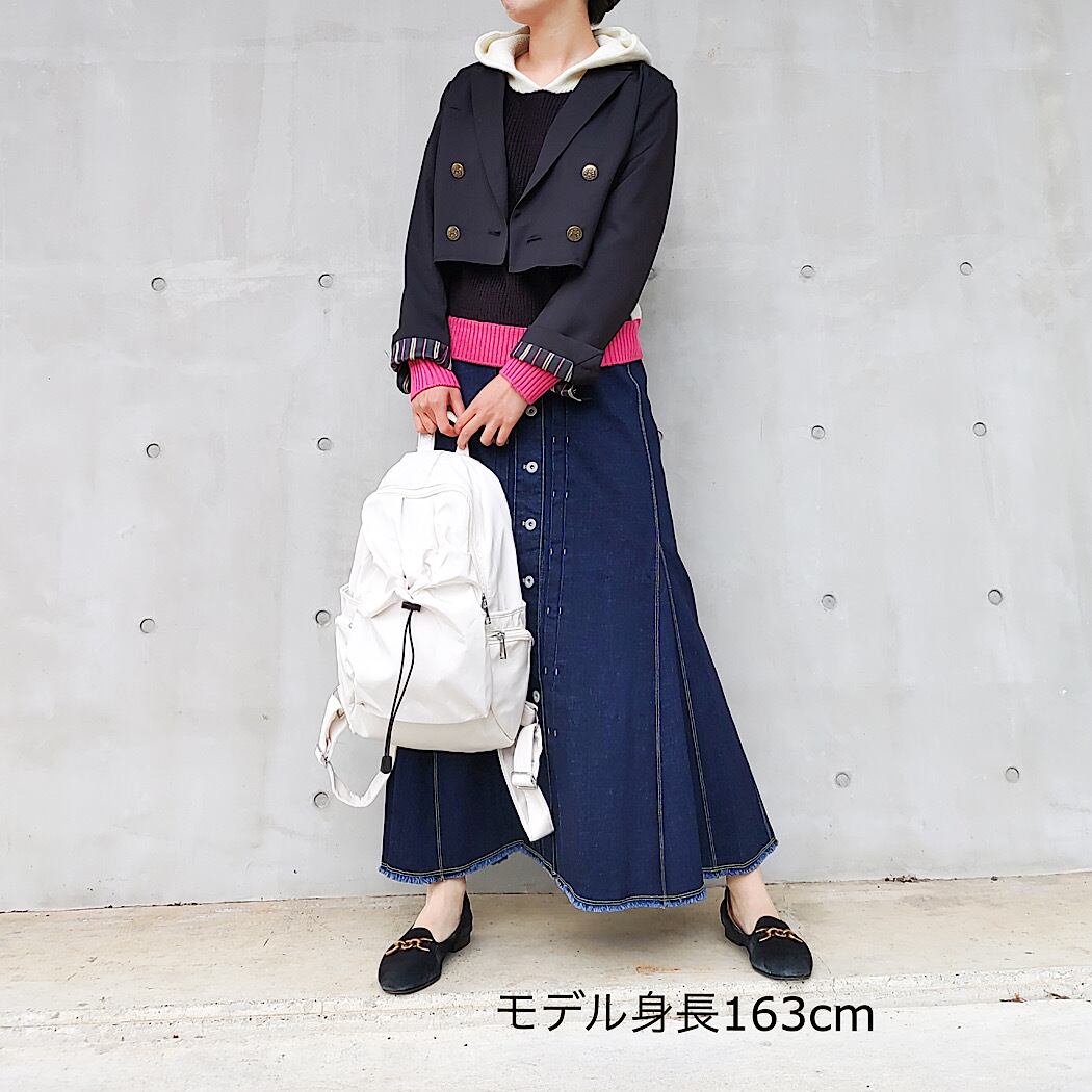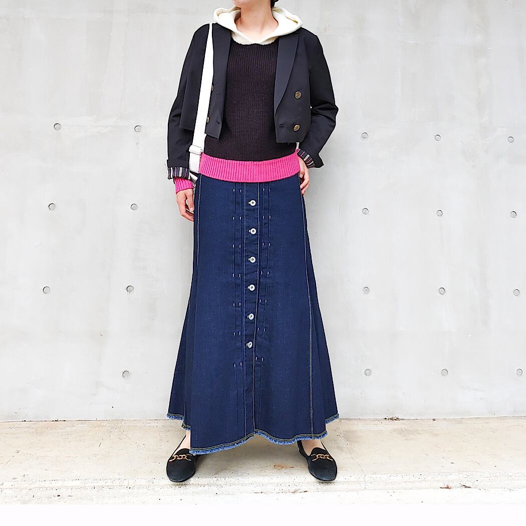 デニムやスカートなど、ベーシックなボトムスとの組み合わせでも日常のコーディネートに活躍すること間違いなしです。