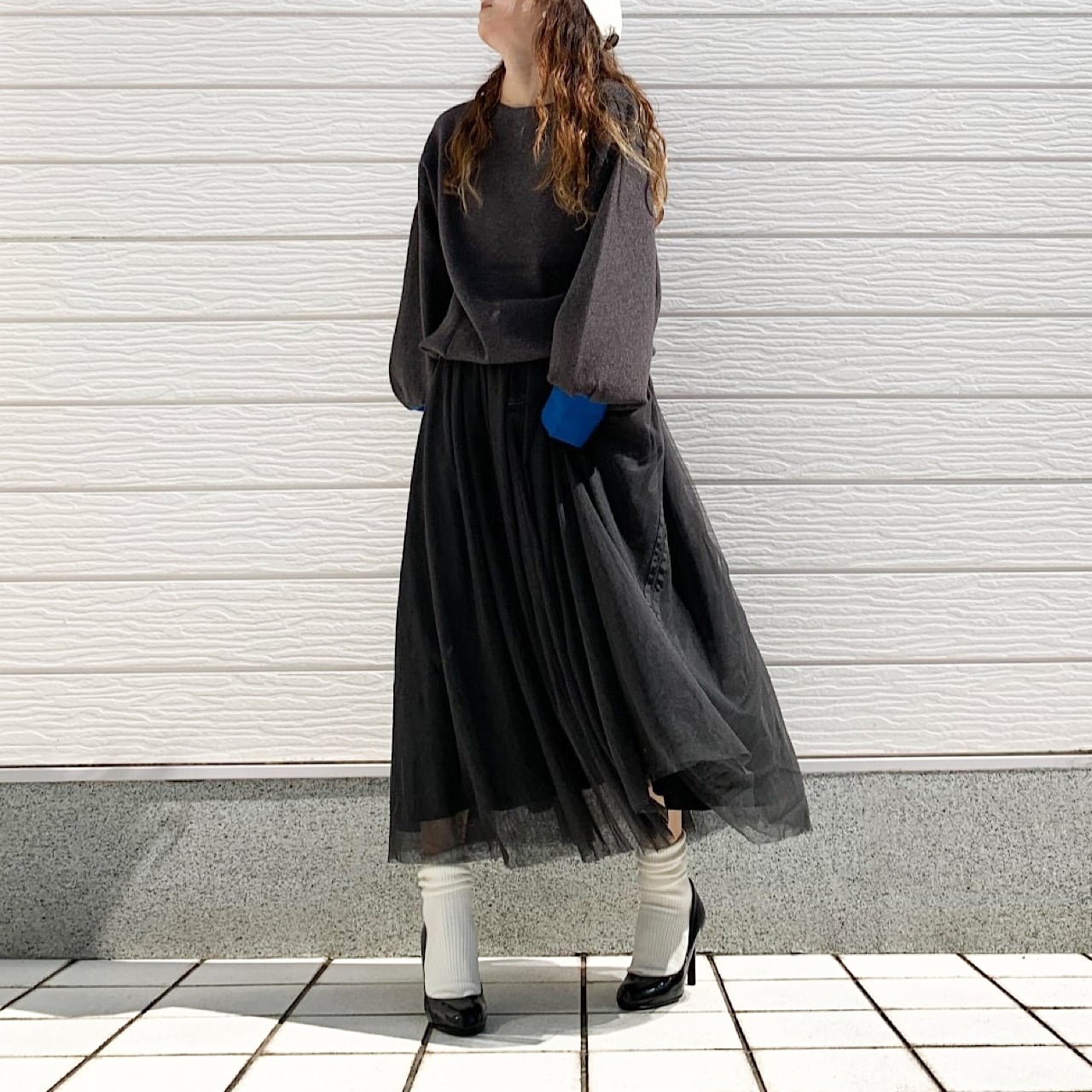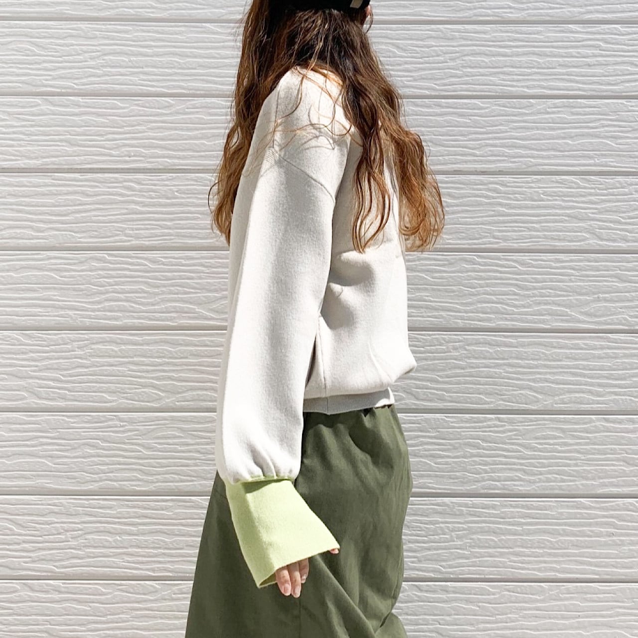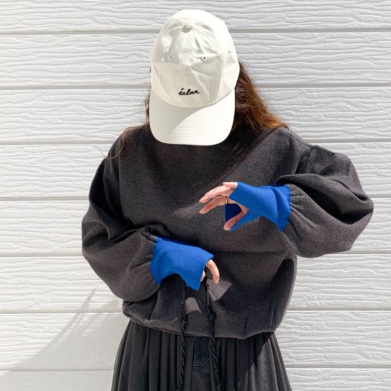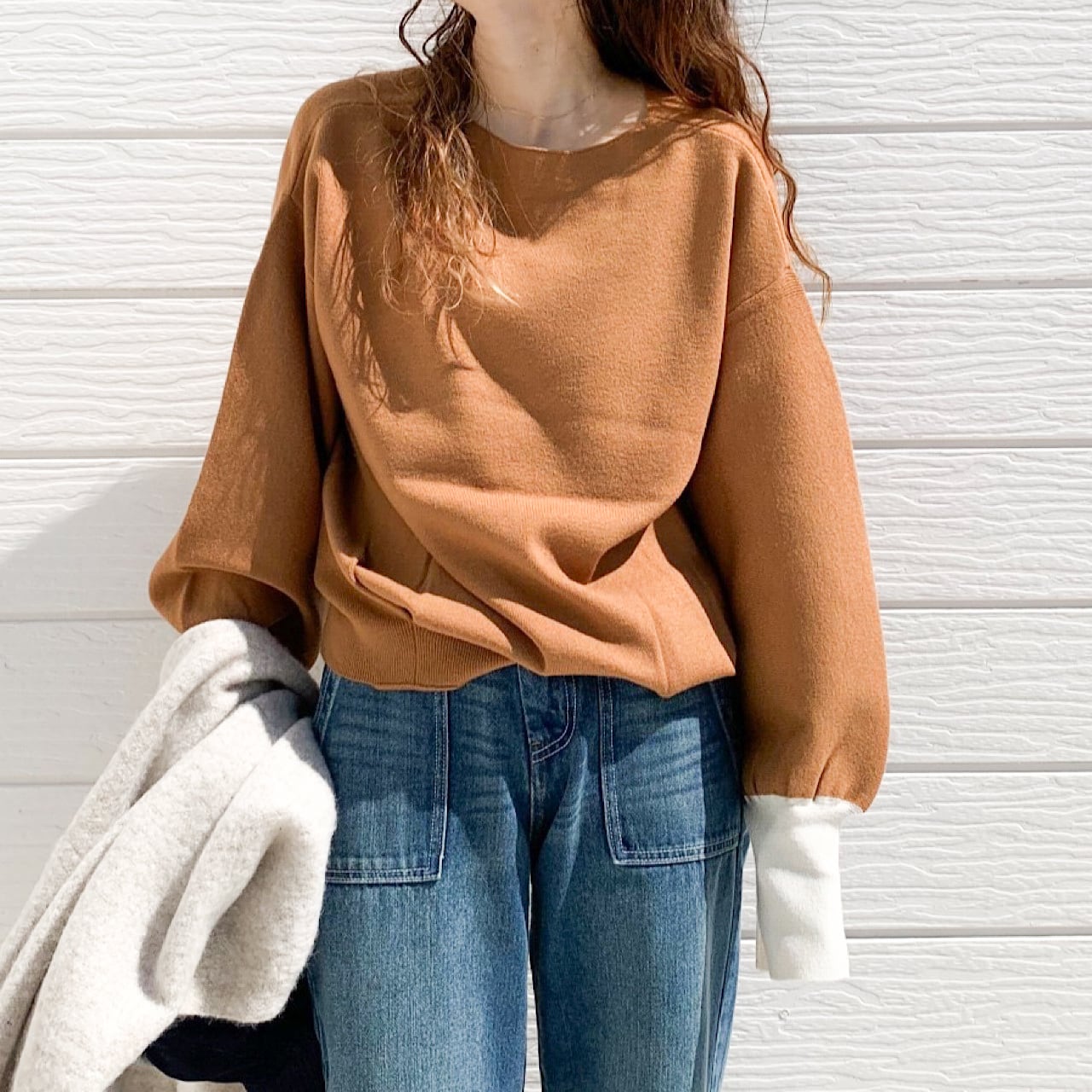 ボリュームのあるバルーン袖に袖先をバイカラーにしたデザインが、シンプルながらもおしゃれに。