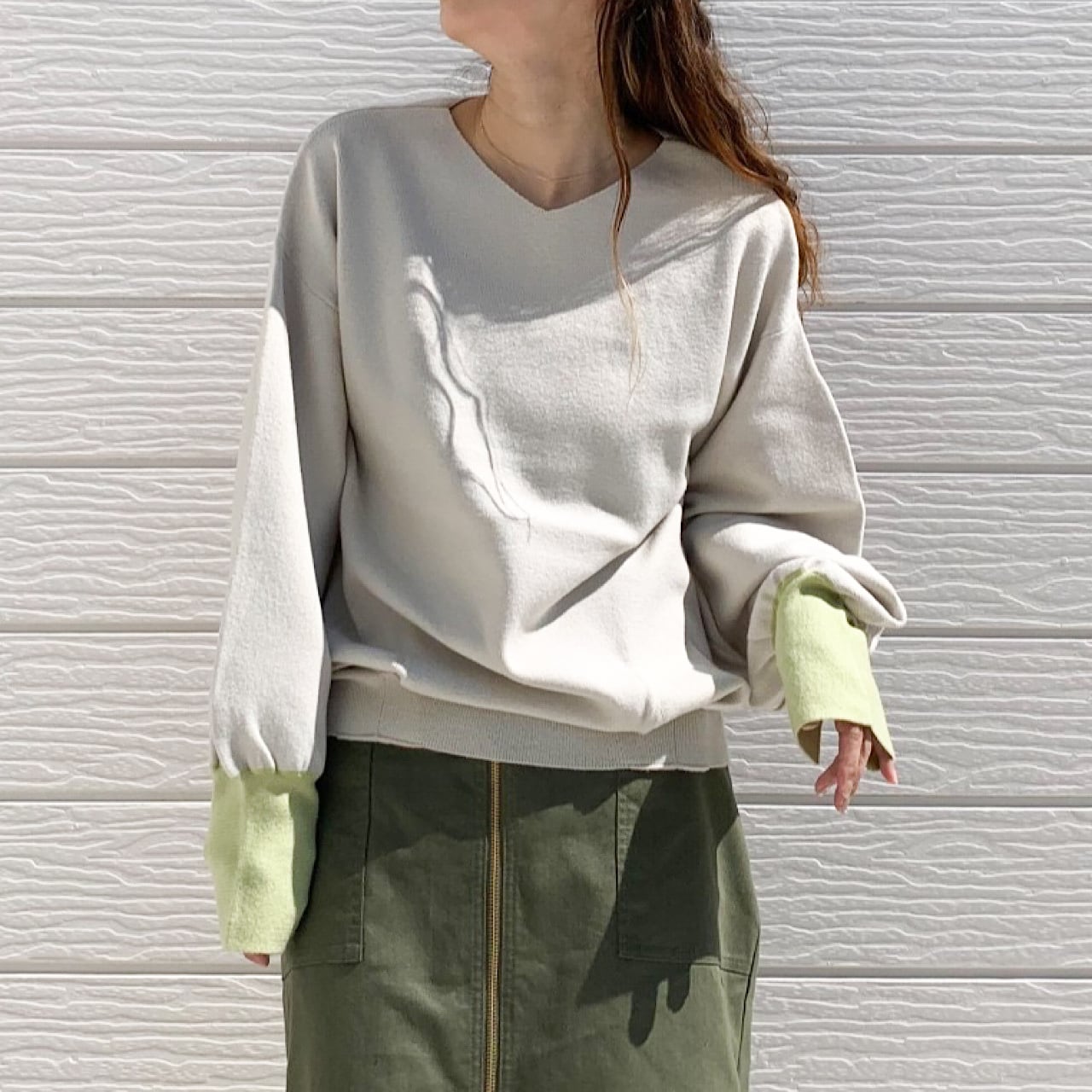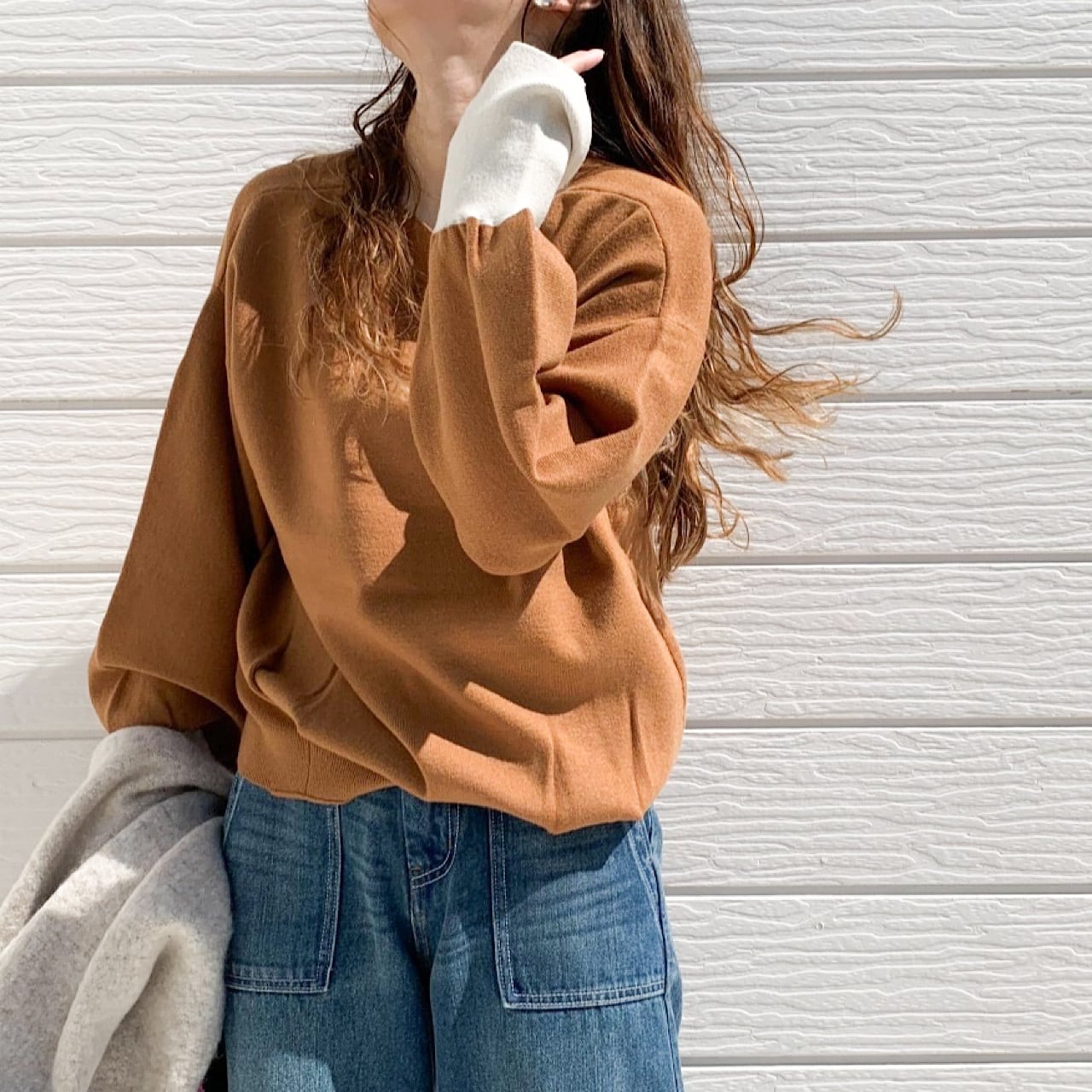 ベーシックなニットなので、様々なコーディネートに合わせていただけるヘビロテアイテムです。