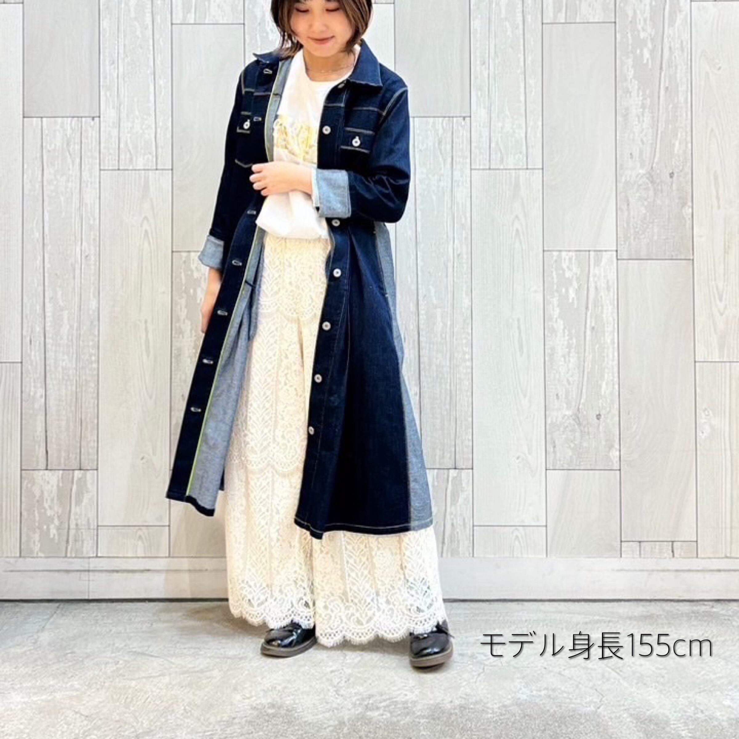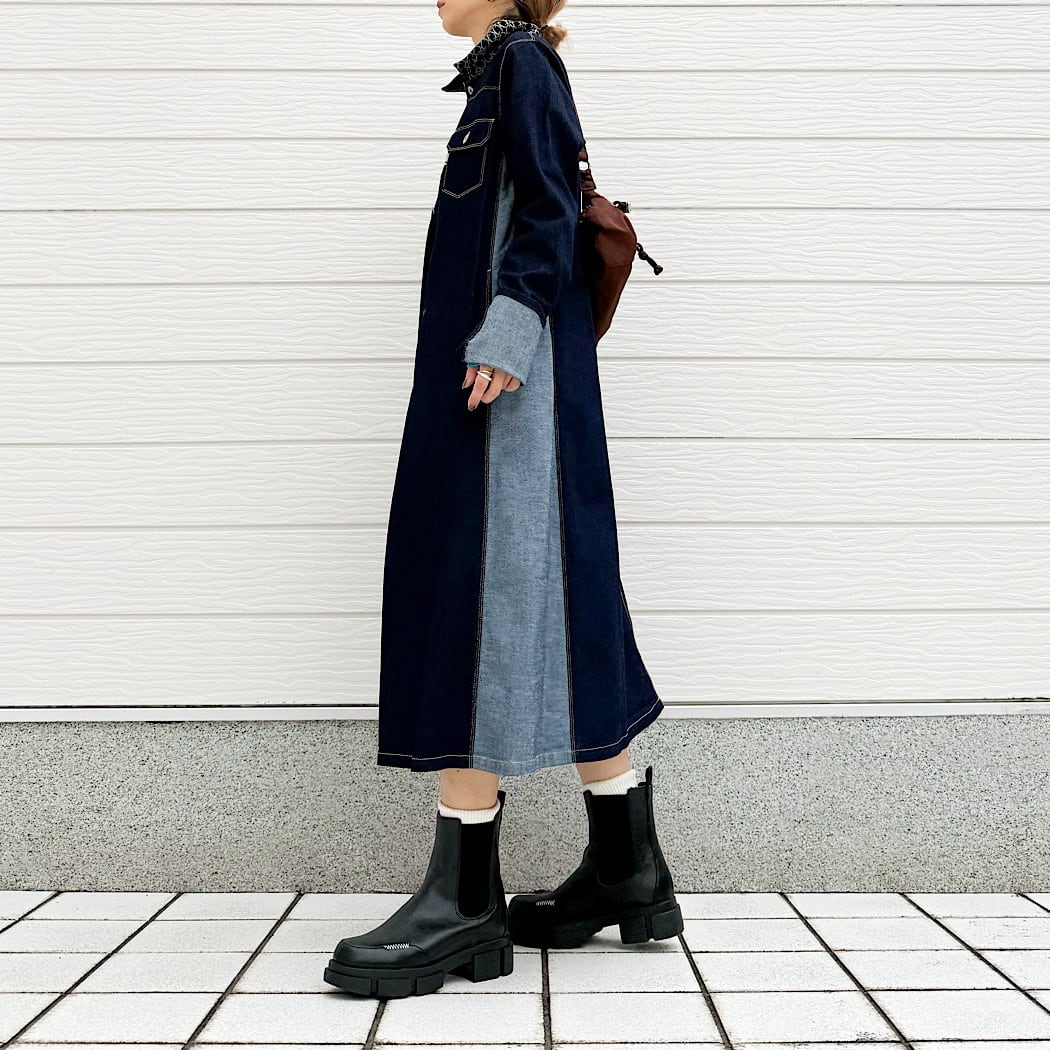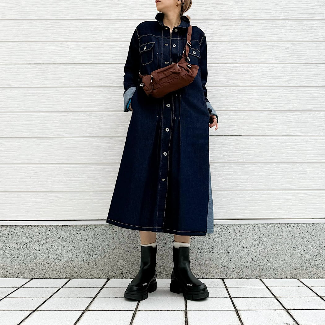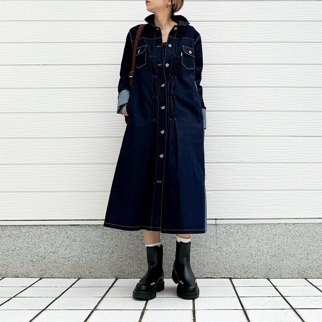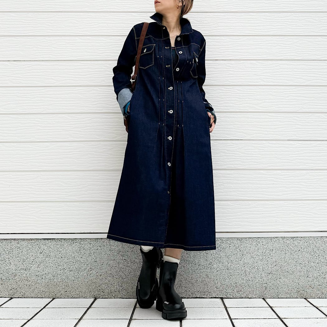 ボタンを全て閉めれば、ワンピースとしても楽しめます。