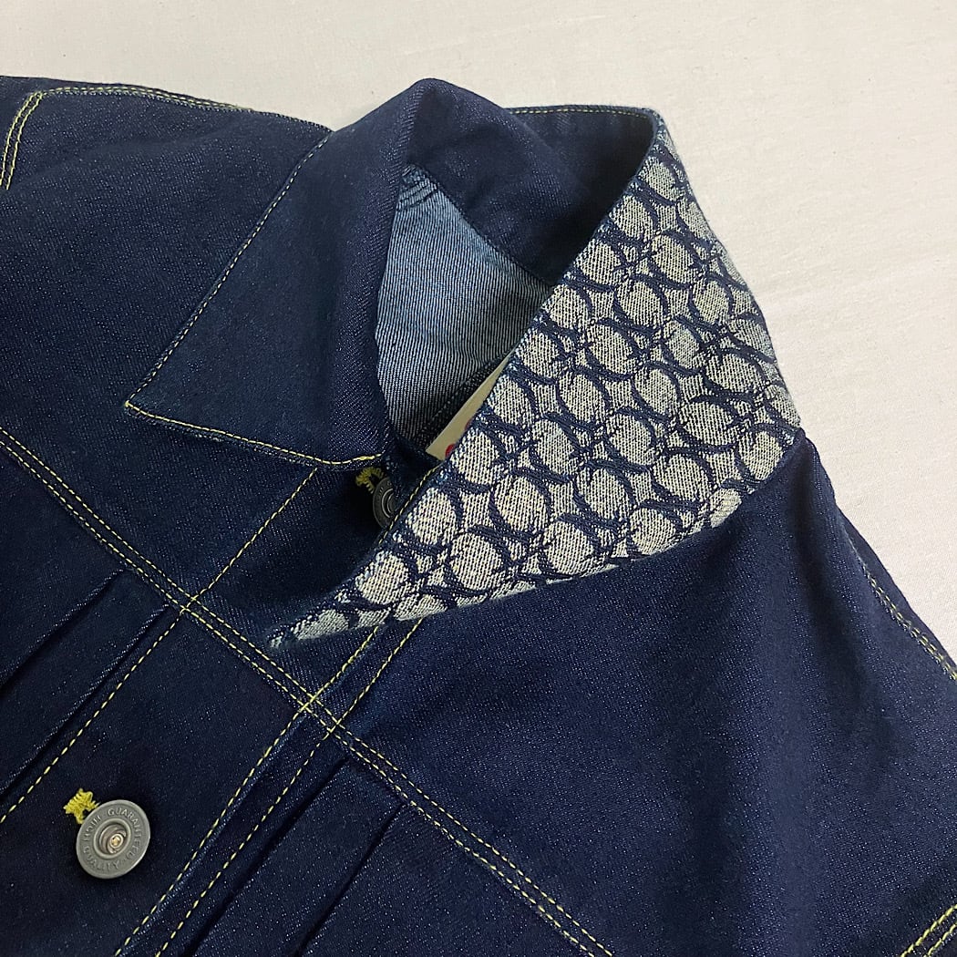 襟裏はQモノグラム柄になっているので、立てて着ると見えるようになります。
