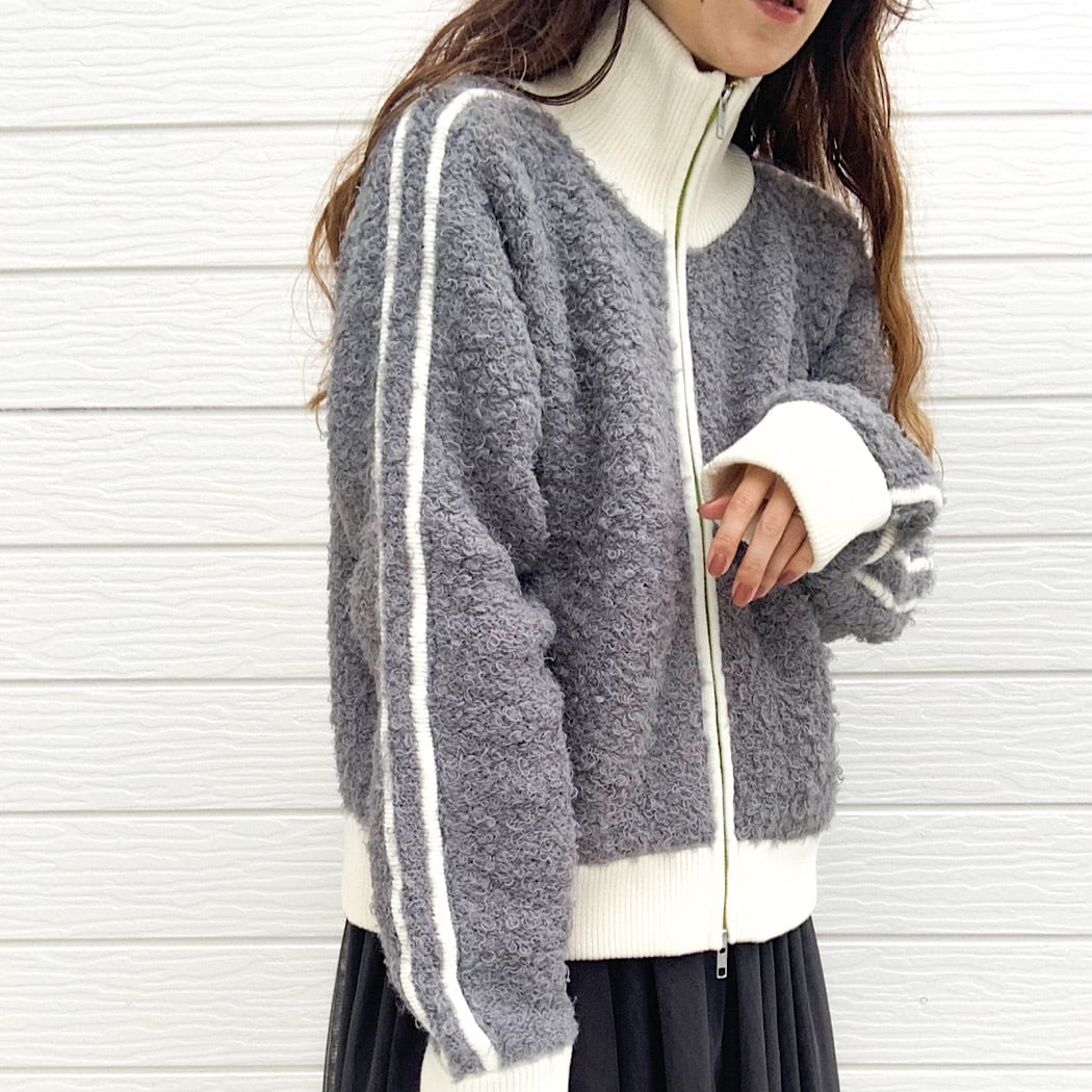 くるくるの毛足が大人かわいいニットトラックジャケットです。