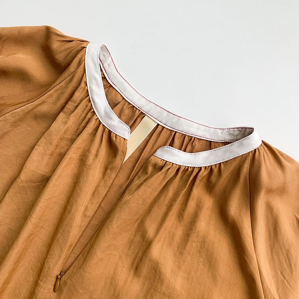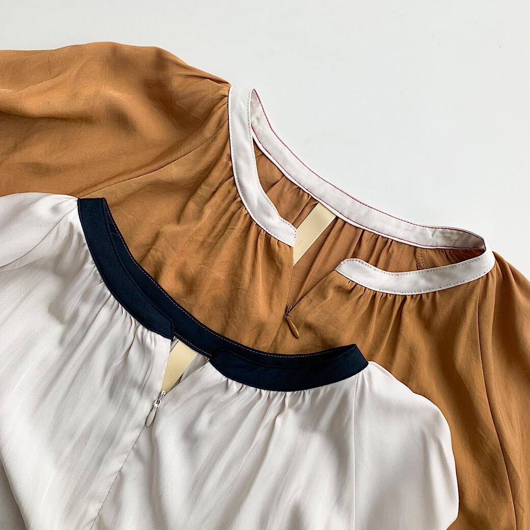 バイカラーが可愛いスキッパ—タイプのブラウスです。