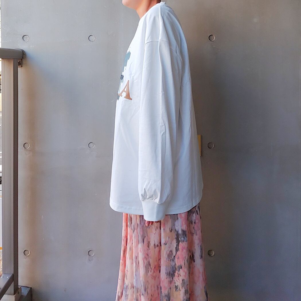 大きく入れたフォトプリントが印象的なロングスリーブTシャツです。