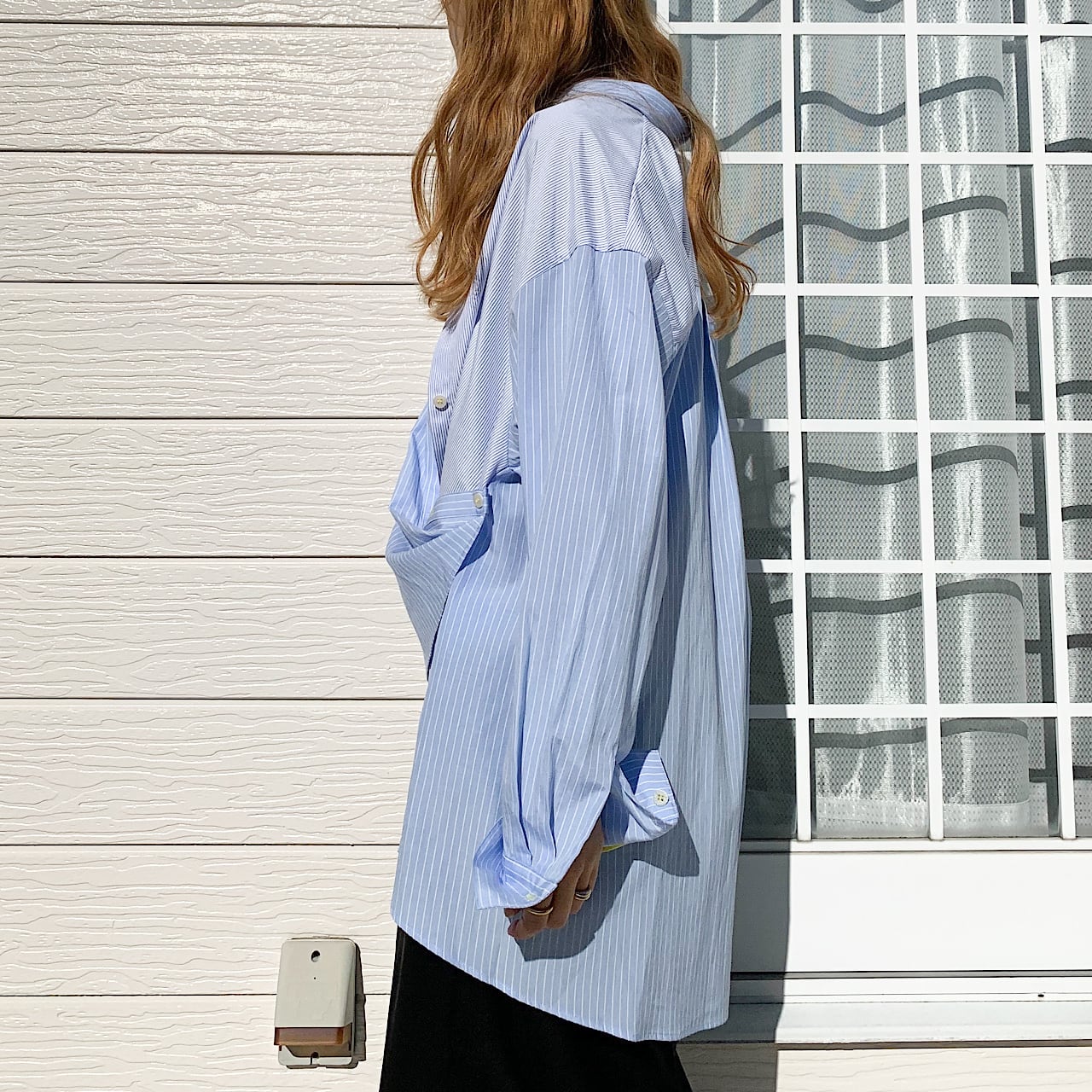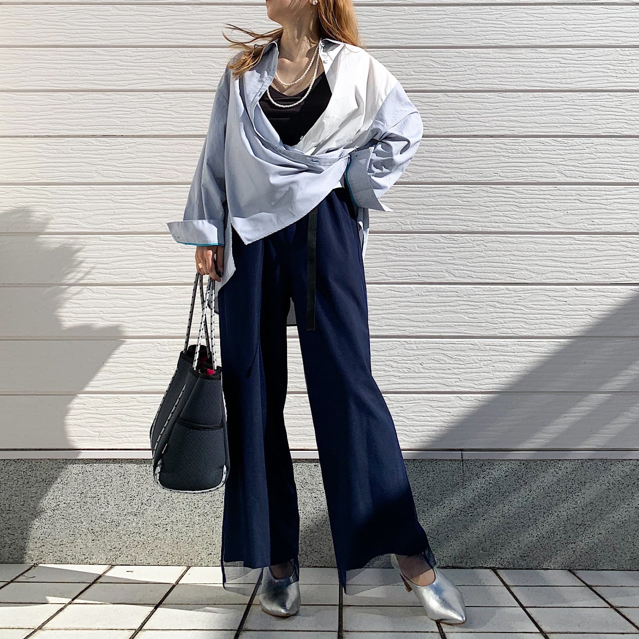 ストライプ柄ですがカジュアルすぎず、軽めな素材感と華奢なストライプで女性らしさもある一枚です。