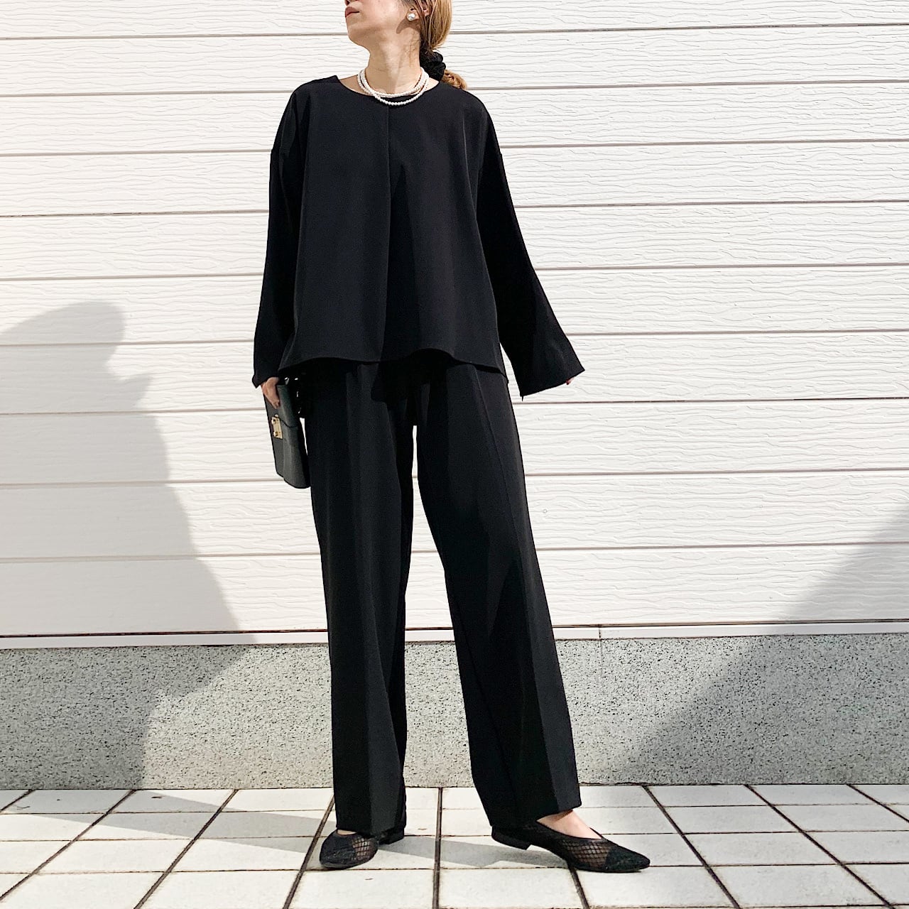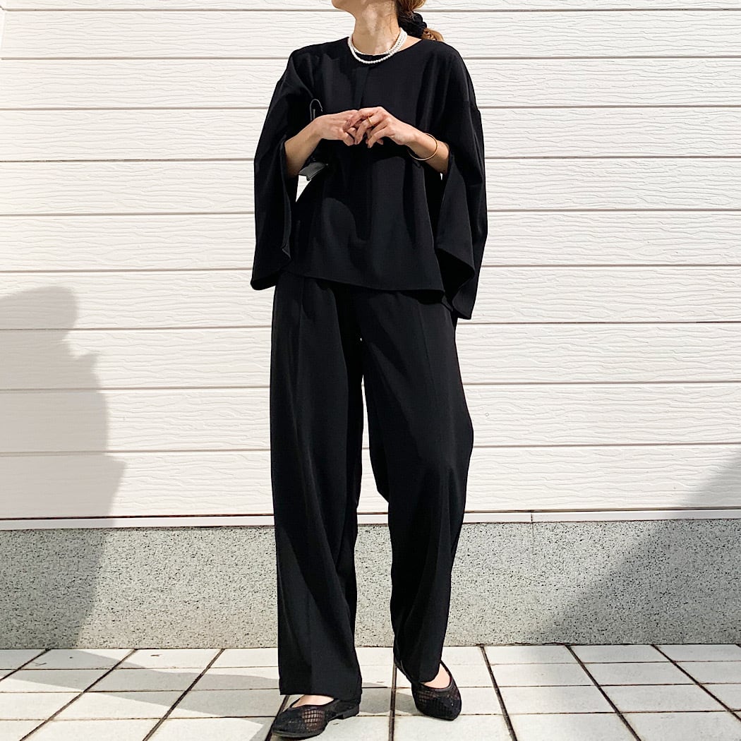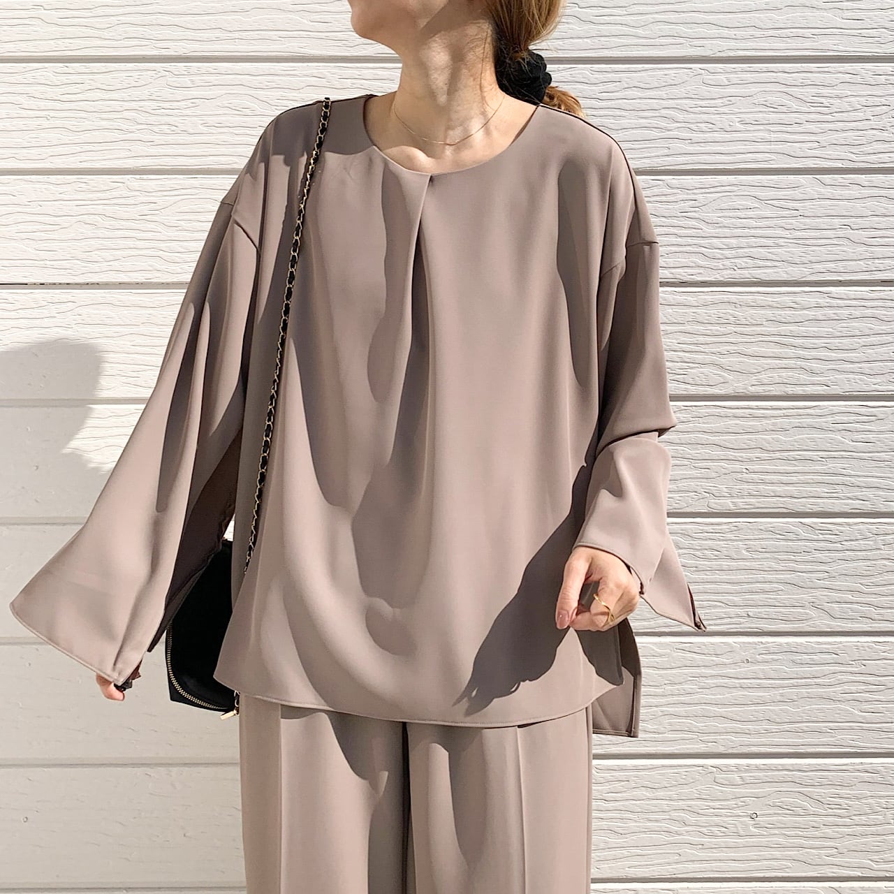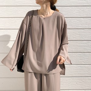 【セットアップ対応アイテム】クルーネック袖スリットブラウス